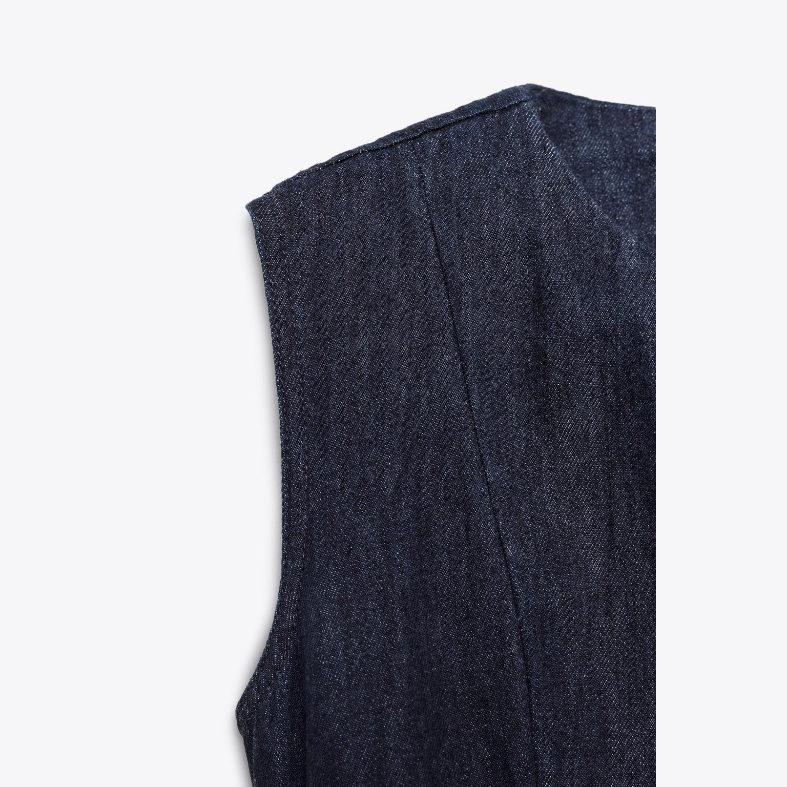 فستان ميدي دنيم – لون طبيعي (أزرق) – Blue (ZW Collection Denim Midi Dress) فستان أنيق بلون أزرق طبيعي، مصنوع من خامة دنيم قطنية 100% تمنح ملمسًا عمليًا وراحة يومية. يتميز بياقة مستديرة بلا أكمام، مع حافة واسعة متدفقة تمنح حركة أنثوية عصرية. الإغلاق خلفي بزر صغير عند العنق. قطعة مثالية للتنسيقات اليومية الكاجوال الأنيقة أو كإطلالة عصرية في المناسبات النهارية.