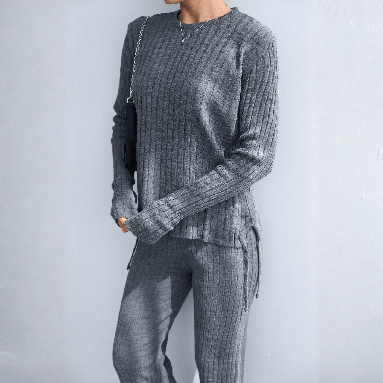 طقم أنيق وعصري بتصميم مريح يجمع بين البساطة والجاذبية، يتميز بنسيج مضلع يمنح القوام مظهراً متناسقاً وانسيابياً. يتكوّن من كنزة بأكمام طويلة مع بنطال بقصة واسعة وخصر مطاطي قابل للتعديل، ليكون خياراً مثالياً للإطلالات اليومية المريحة أو للمشاوير والسفر مع لمسة أنيقة وسهلة التنسيق.