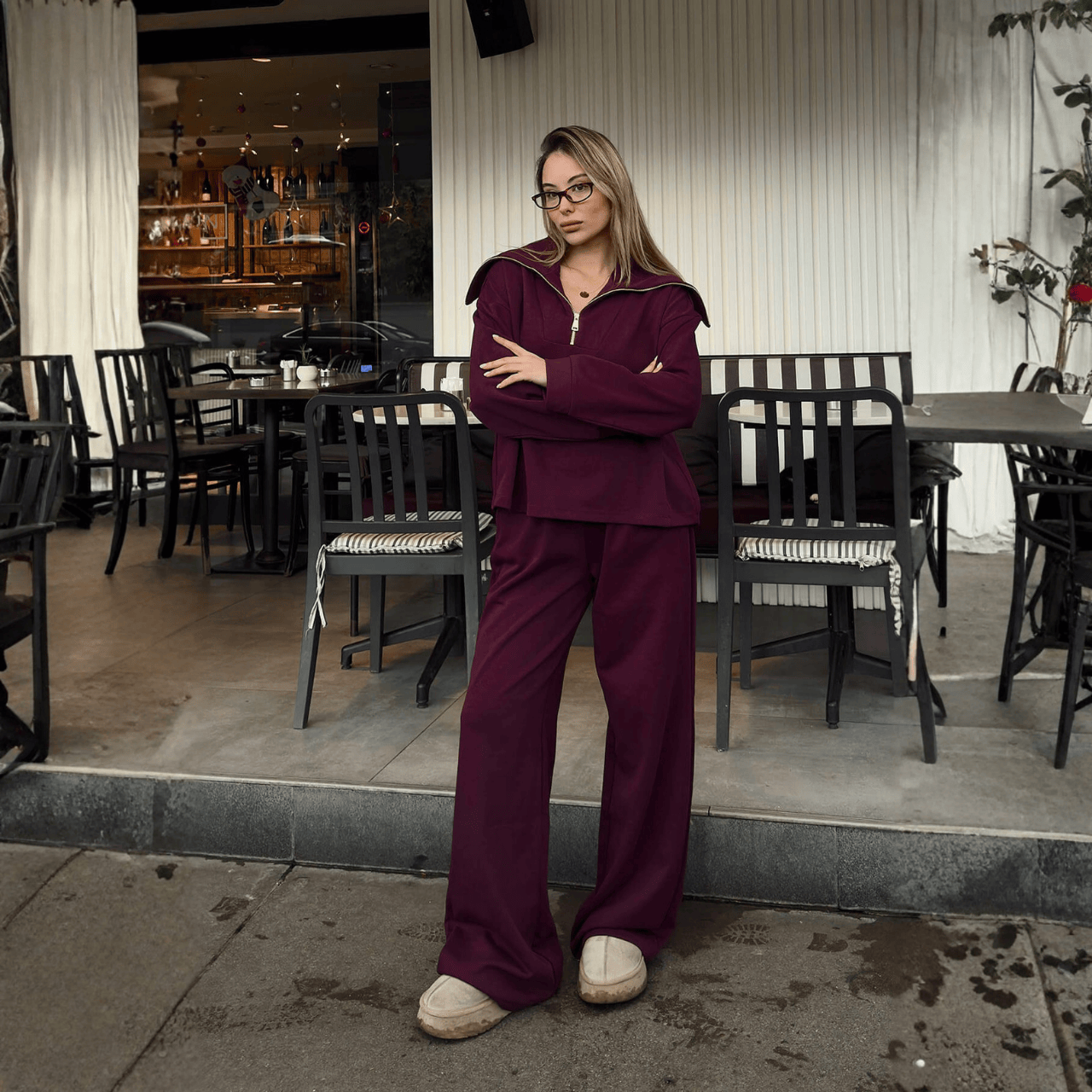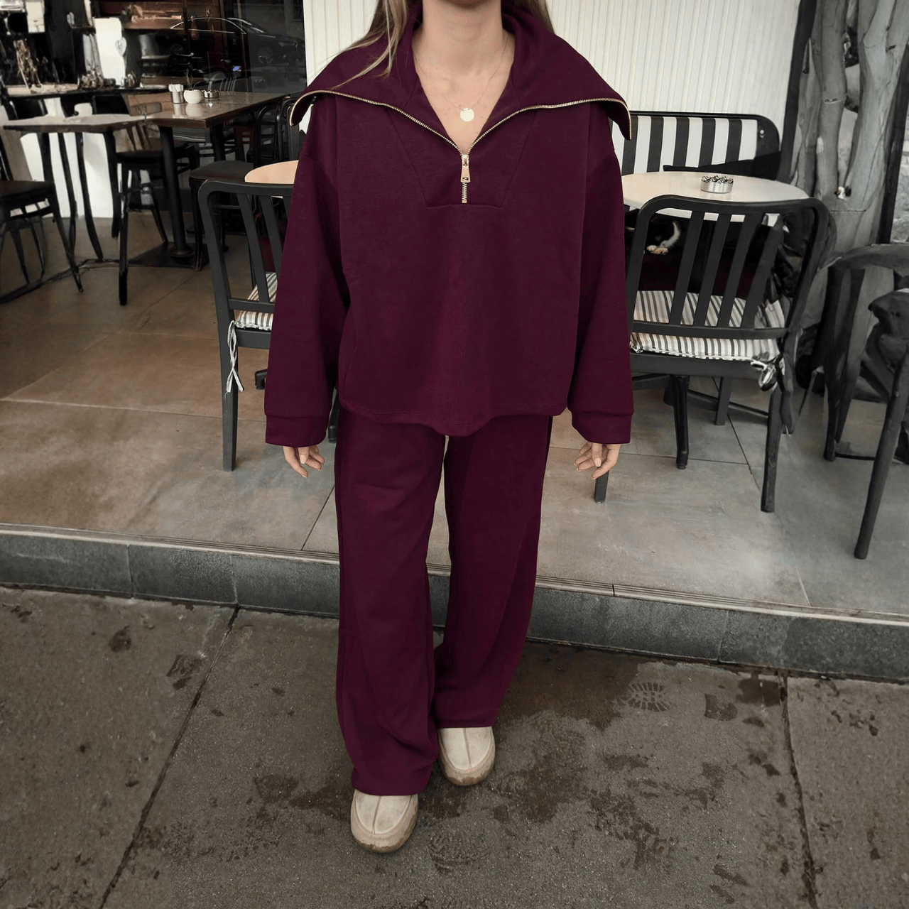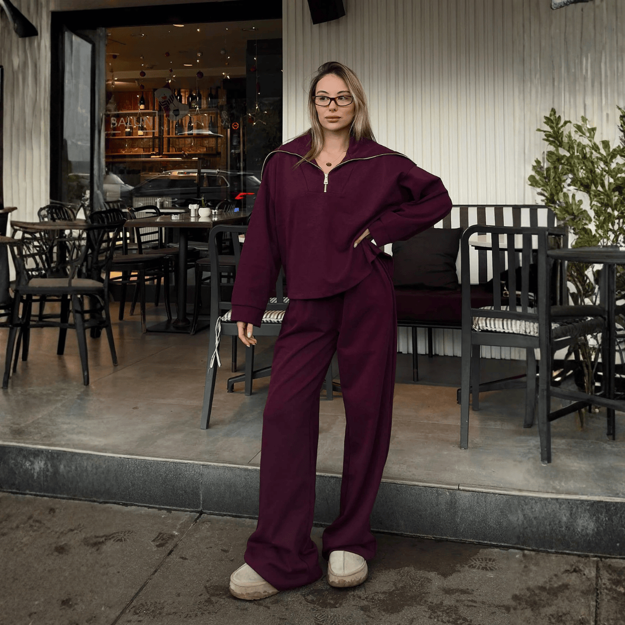 طقم رياضي أنيق يمنحك إطلالة عصرية ومريحة في آنٍ واحد، مثالي للإطلالات اليومية، السفر أو الأنشطة الخفيفة. يتميز بتصميم بسيط وعملي يتكوّن من سويت شيرت بسحاب أمامي مع قبعة، وبنطال مريح بقصة واسعة وخصر مطاطي مع رباط قابل للتعديل، ليمنحك حرية حركة ومظهراً أنيقاً طوال اليوم.