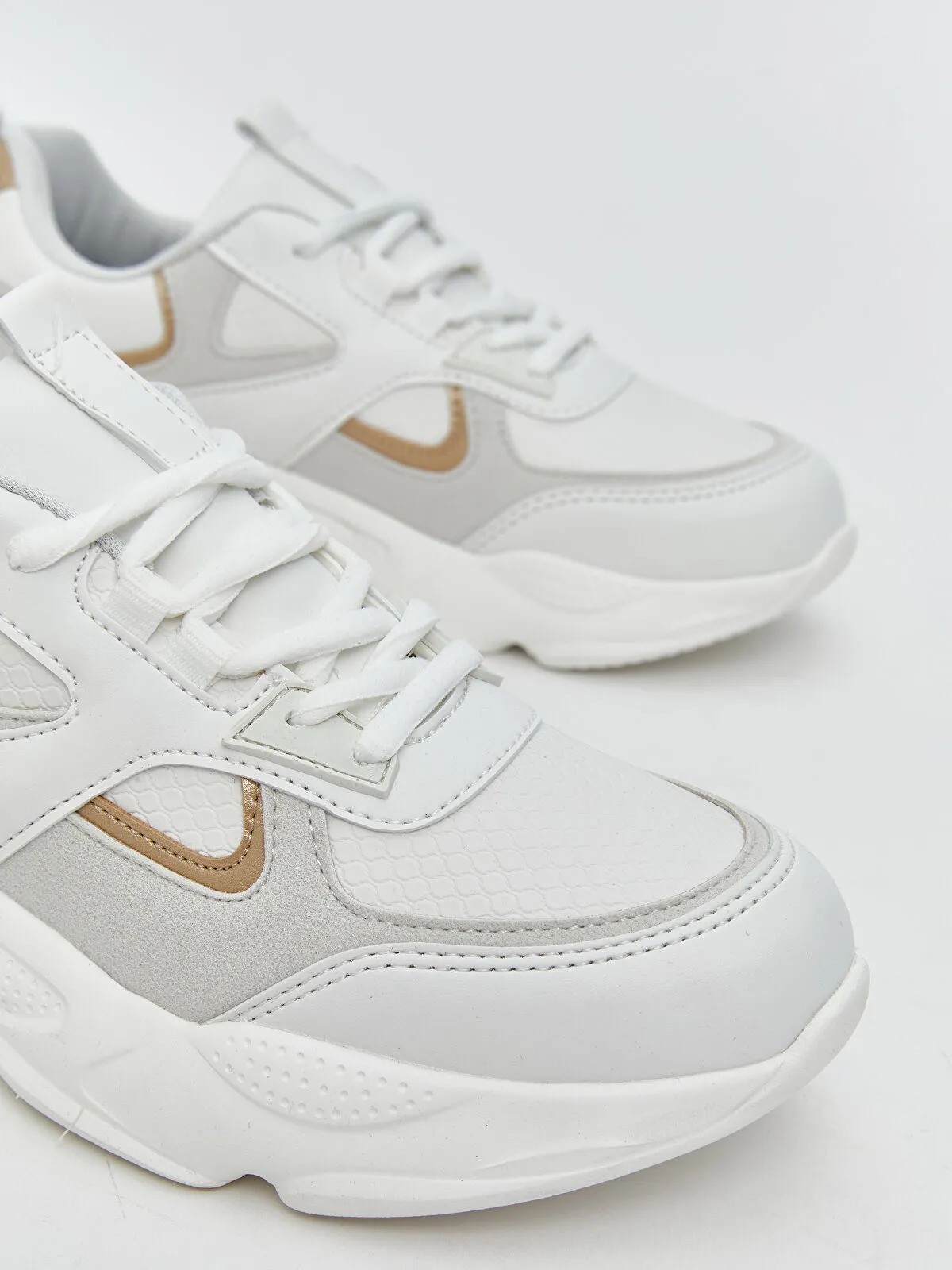 حذاء رياضي نسائي بلون كريمي هادئ (Ekru)، بتصميم كلاسيكي مع أربطة (lace‑up) يوفر توازنًا بين الراحة والأناقة للارتداء اليومي أو نشاطات خفيفة.