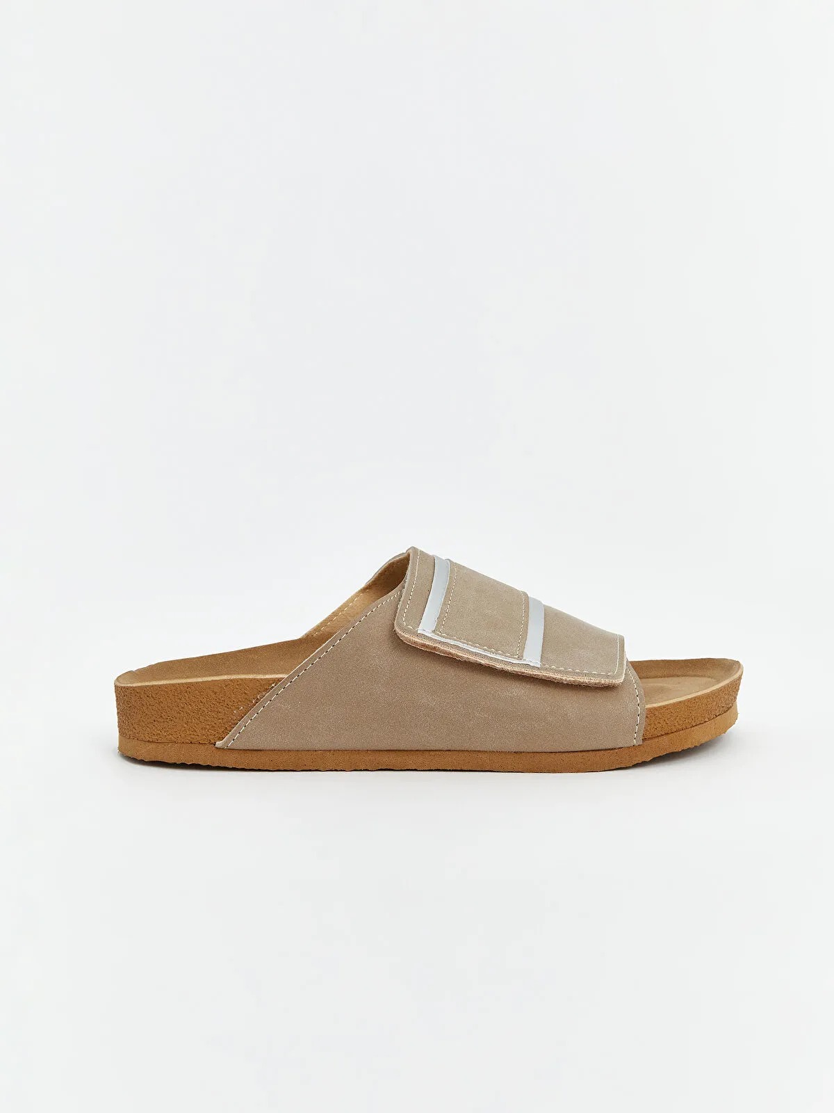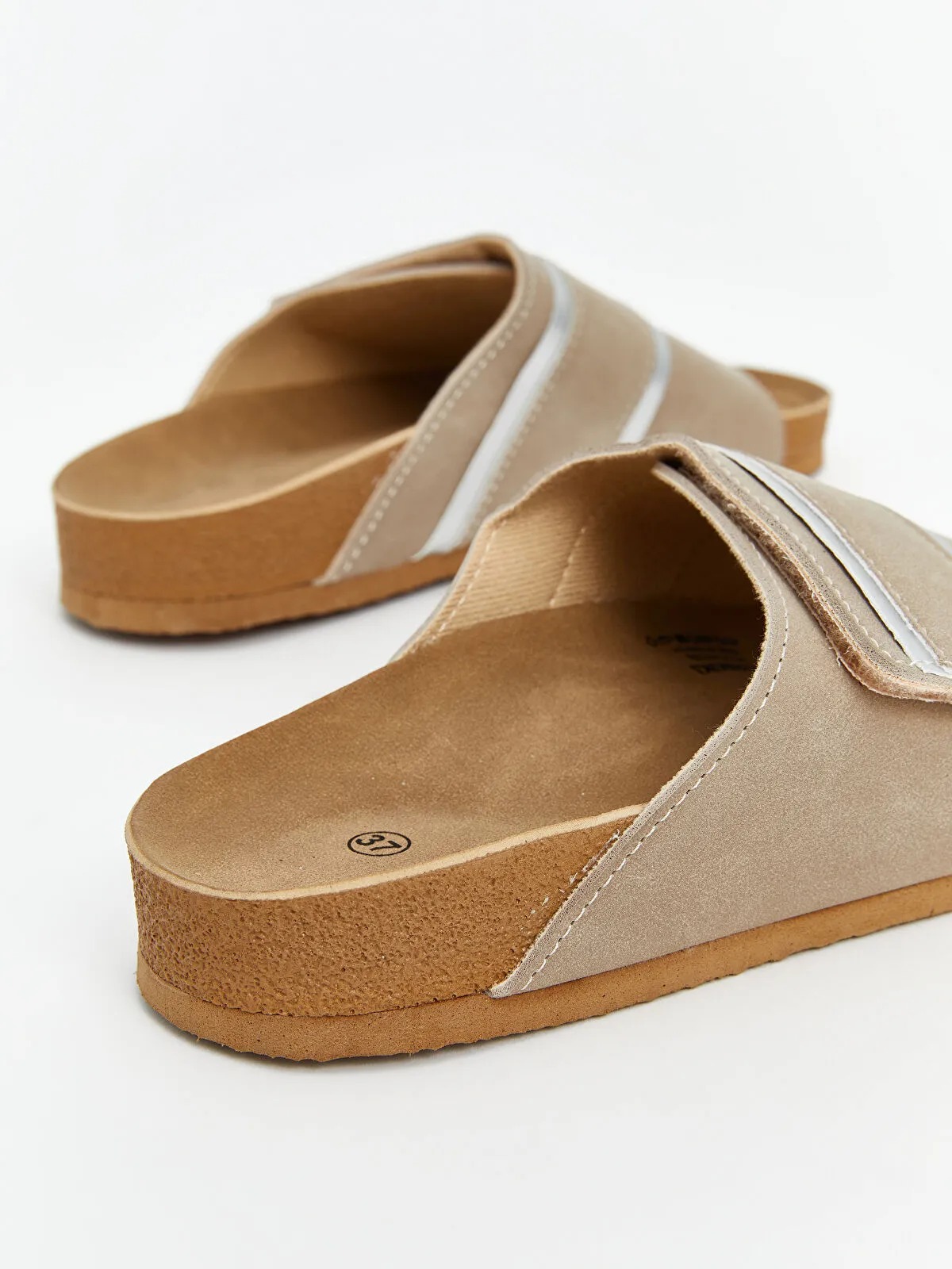تصميم مفتوح من الجزأين العلوي والسفلي (Open–Toe)، شريط عريض قابل للتعديل عبر Velcro على الجزء العلوي. النعل مسطح مع دعم خفيف، مثالي للارتداء اليومي دون مجهود.