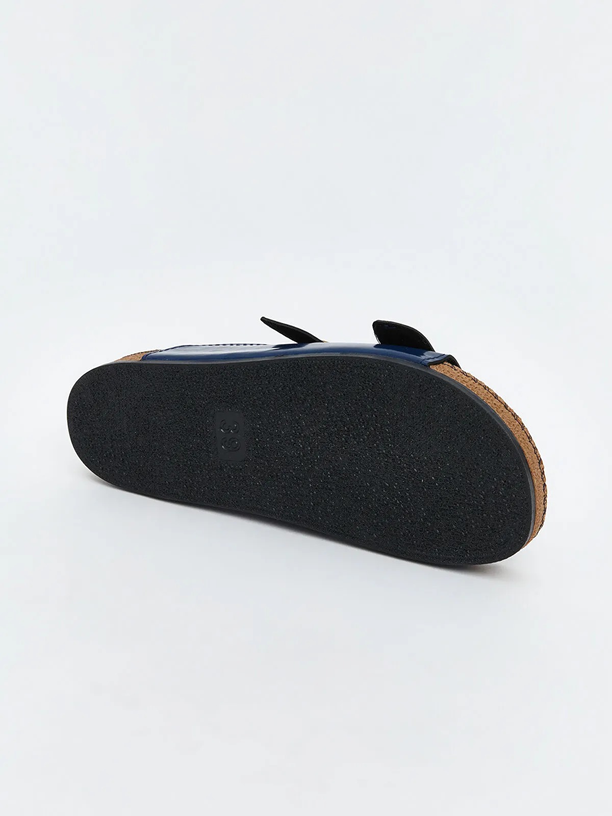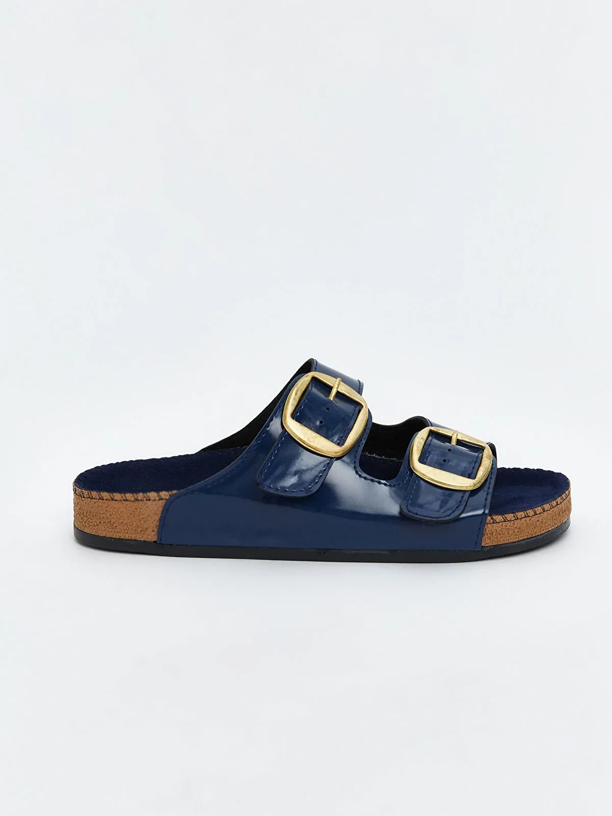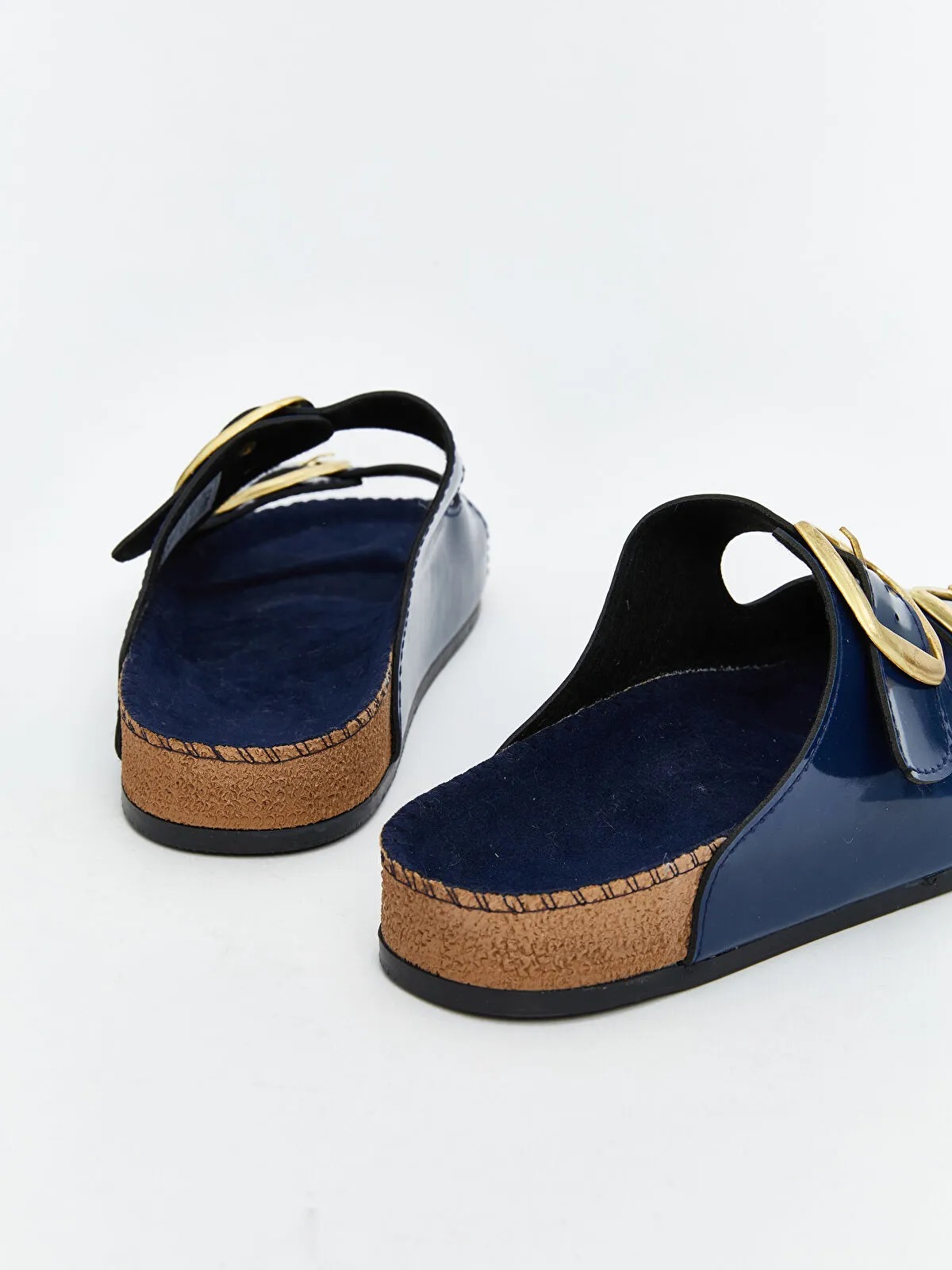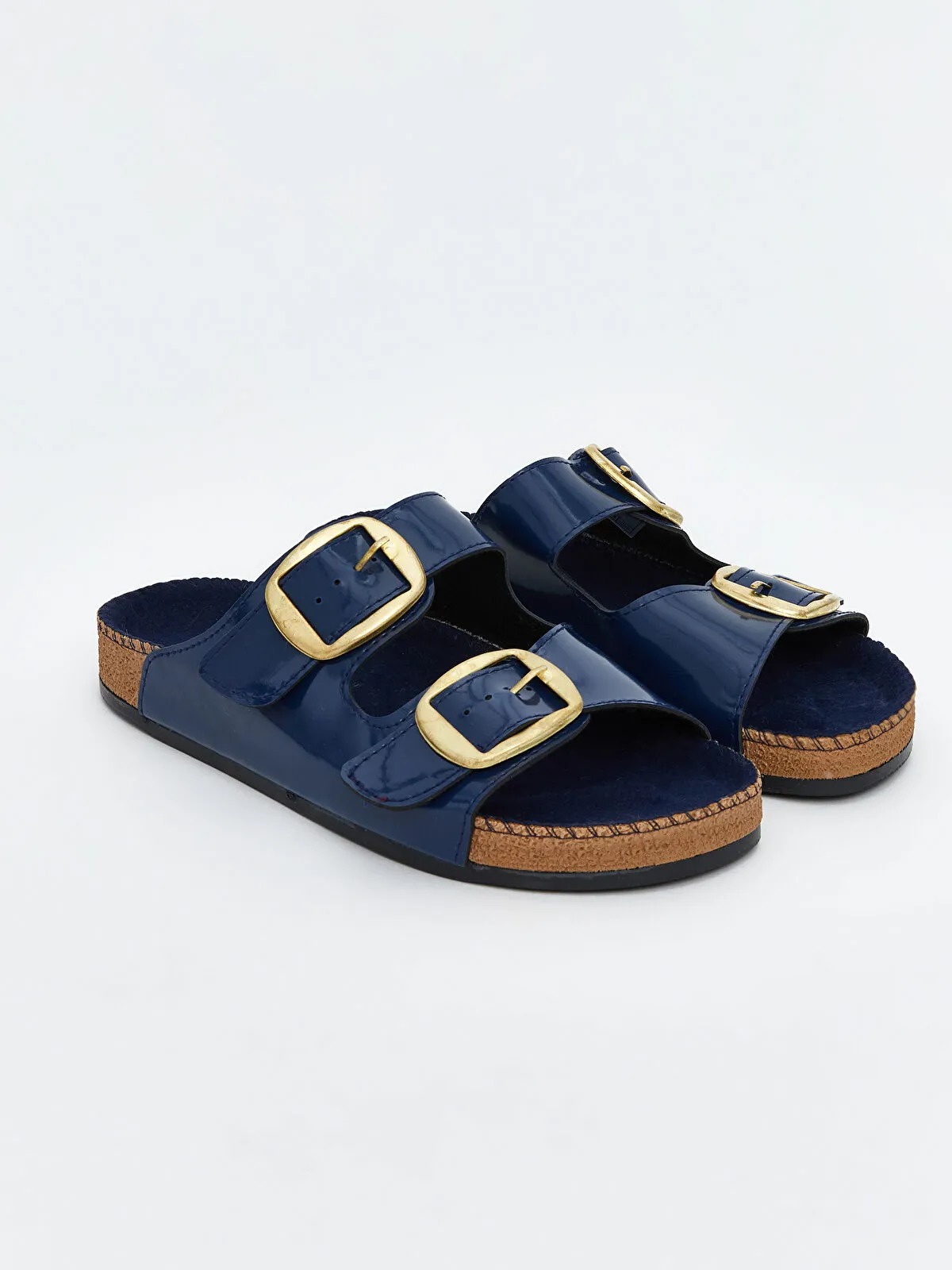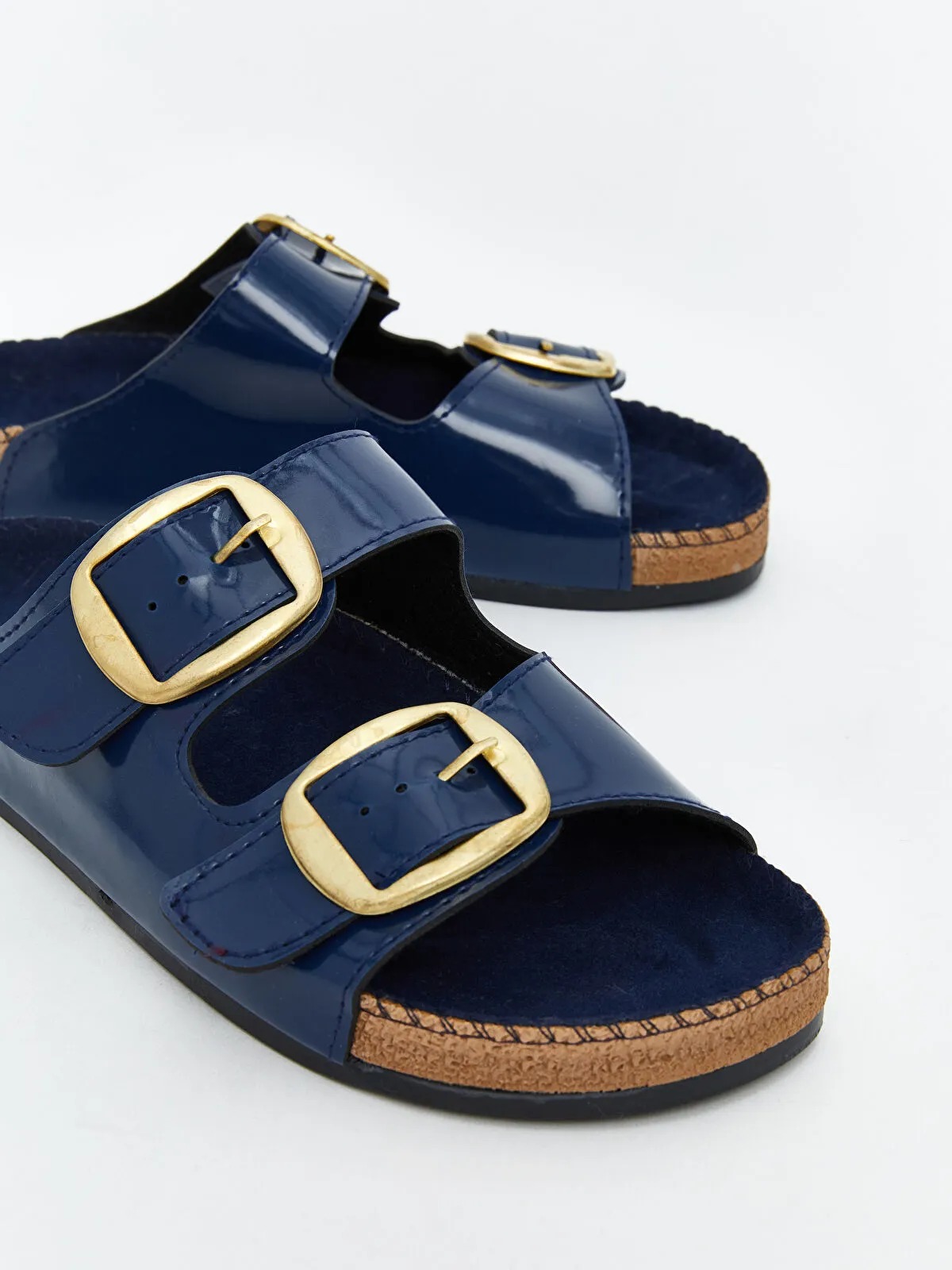 شِحّاطة نسائية أنيقة باللون الأنيق الأزرق الداكن، مصمّمة بشريطين علويين مع إمكانية تعديل مريحة بواسطة الحلقات المعدنية (توكة)، توفّر تثبيتًا جيدًا للقدم مع مظهر راقٍ يناسب الاستخدام اليومي.
