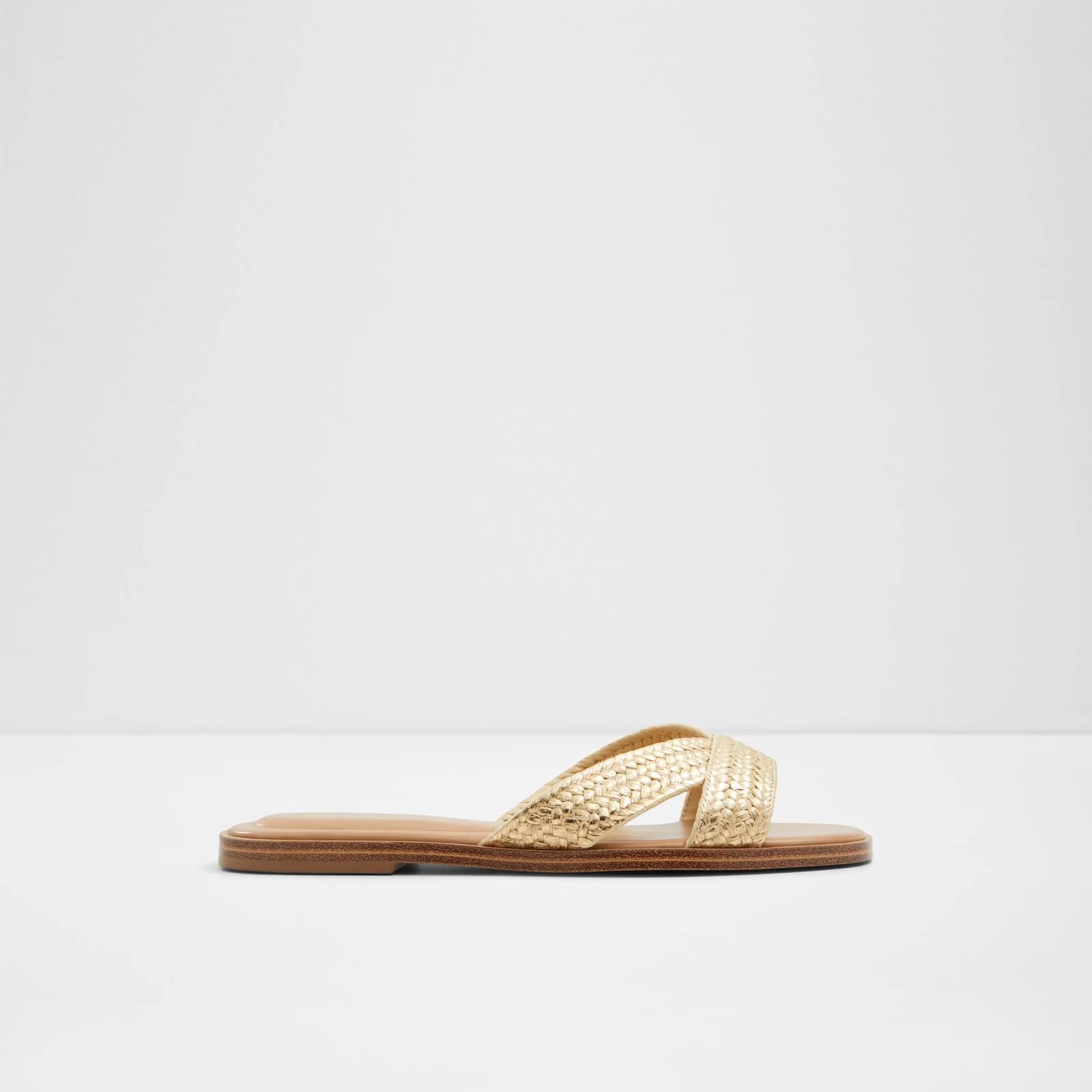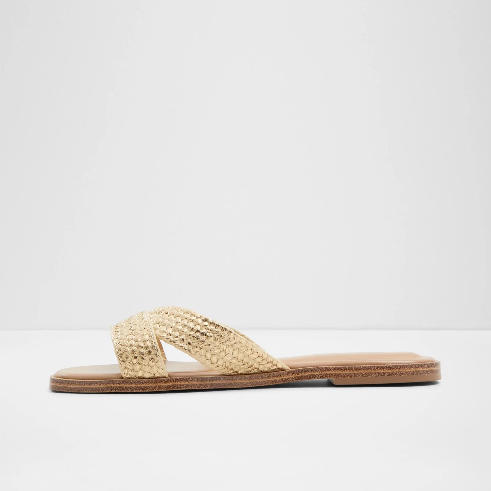 سليبر ذهبية راقية تجمع بين الأناقة والراحة، مثالية لإطلالة لامعة في المناسبات أو للخروج اليومي.