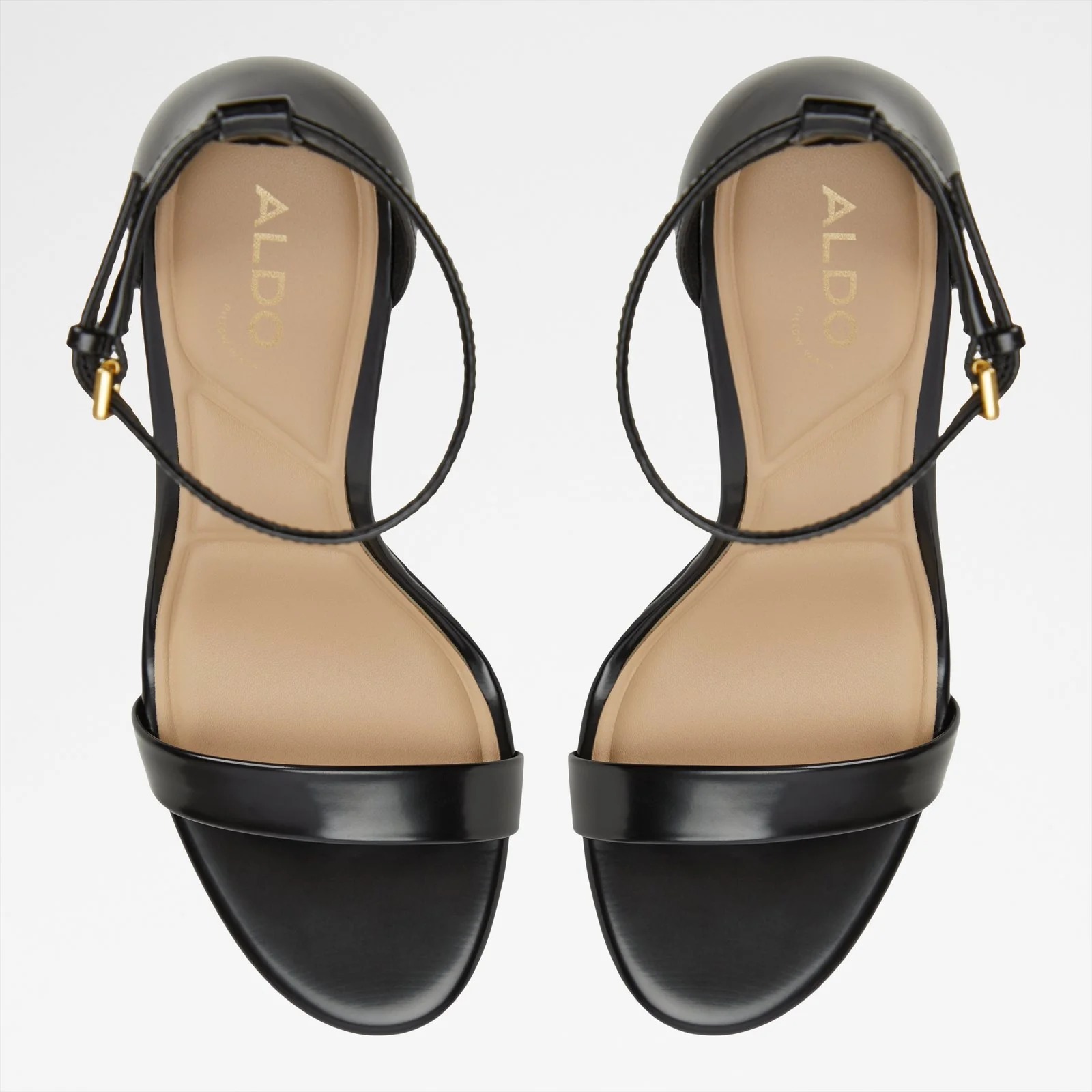 القصة: تصميم ثنائي القطع مع إبزيم، مقدمة مستديرة مفتوحة، كعب رفيع بارتفاع يقارب 10.16 سم، قالب مريح للثبات.