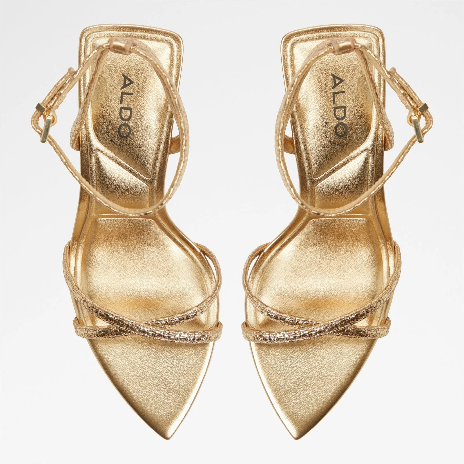 صندل معدني لامع ثنائي القطعة يمنحك أناقة أنثوية ملفتة ولمعانًا مناسبًا للمناسبات.