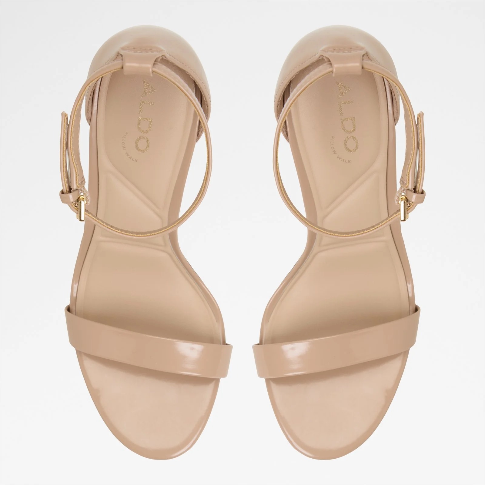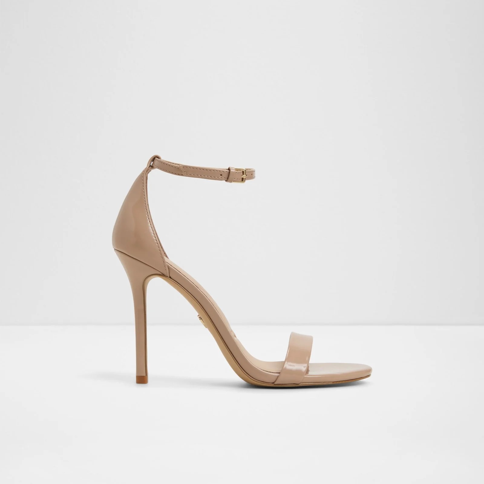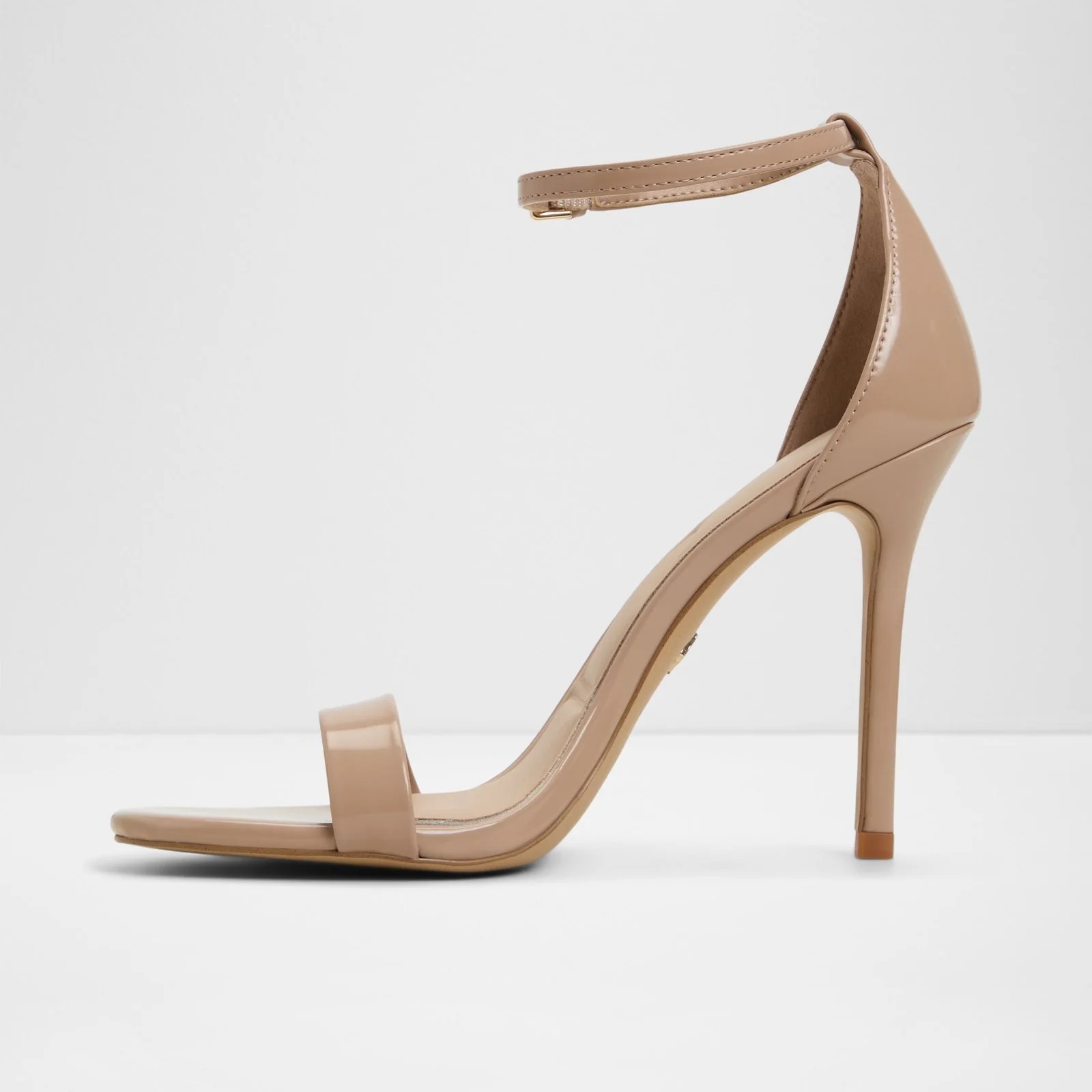 صندل بكعب رفيع بتصميم أنثوي جذّاب مع لمعان أنيق يكمّل إطلالات السهرات.