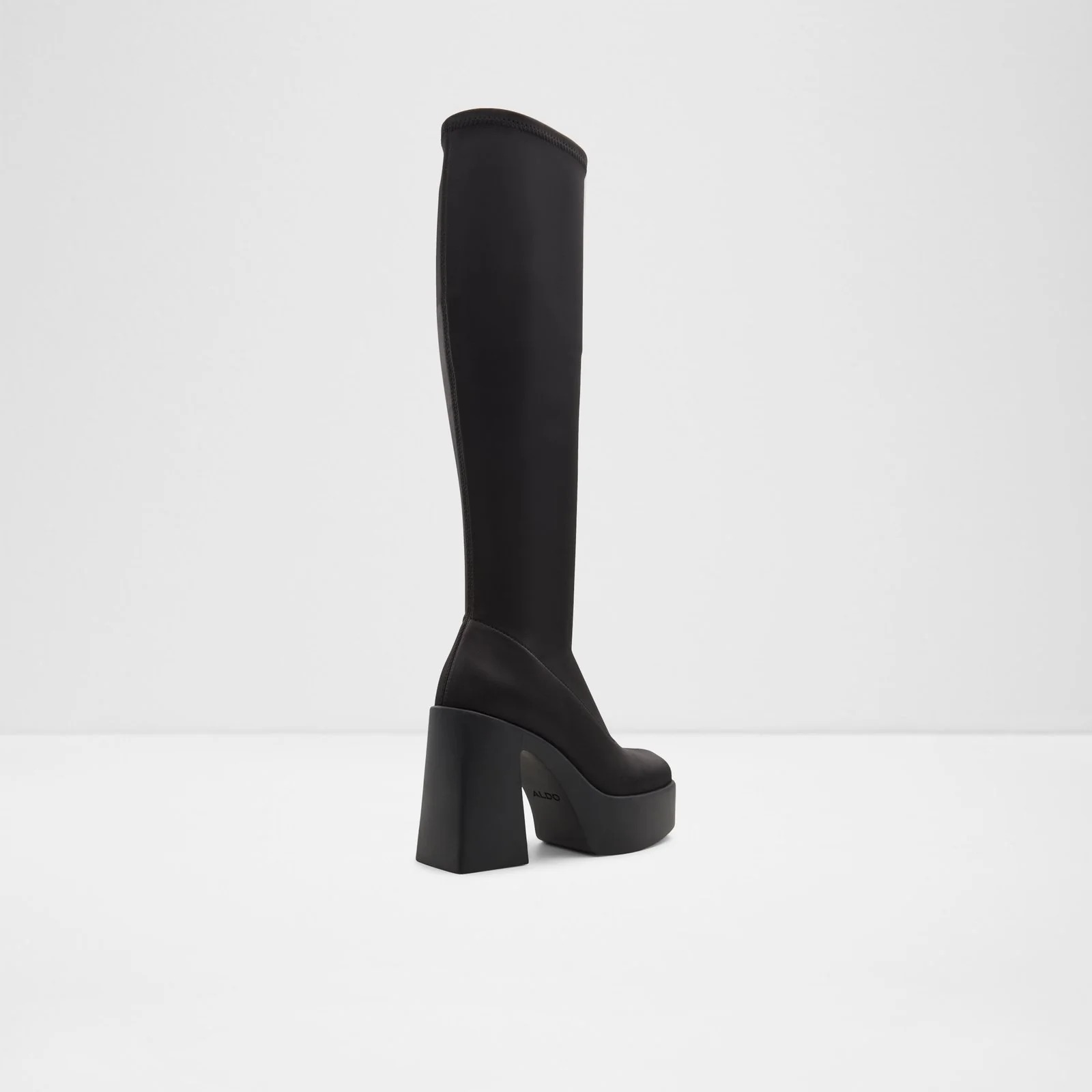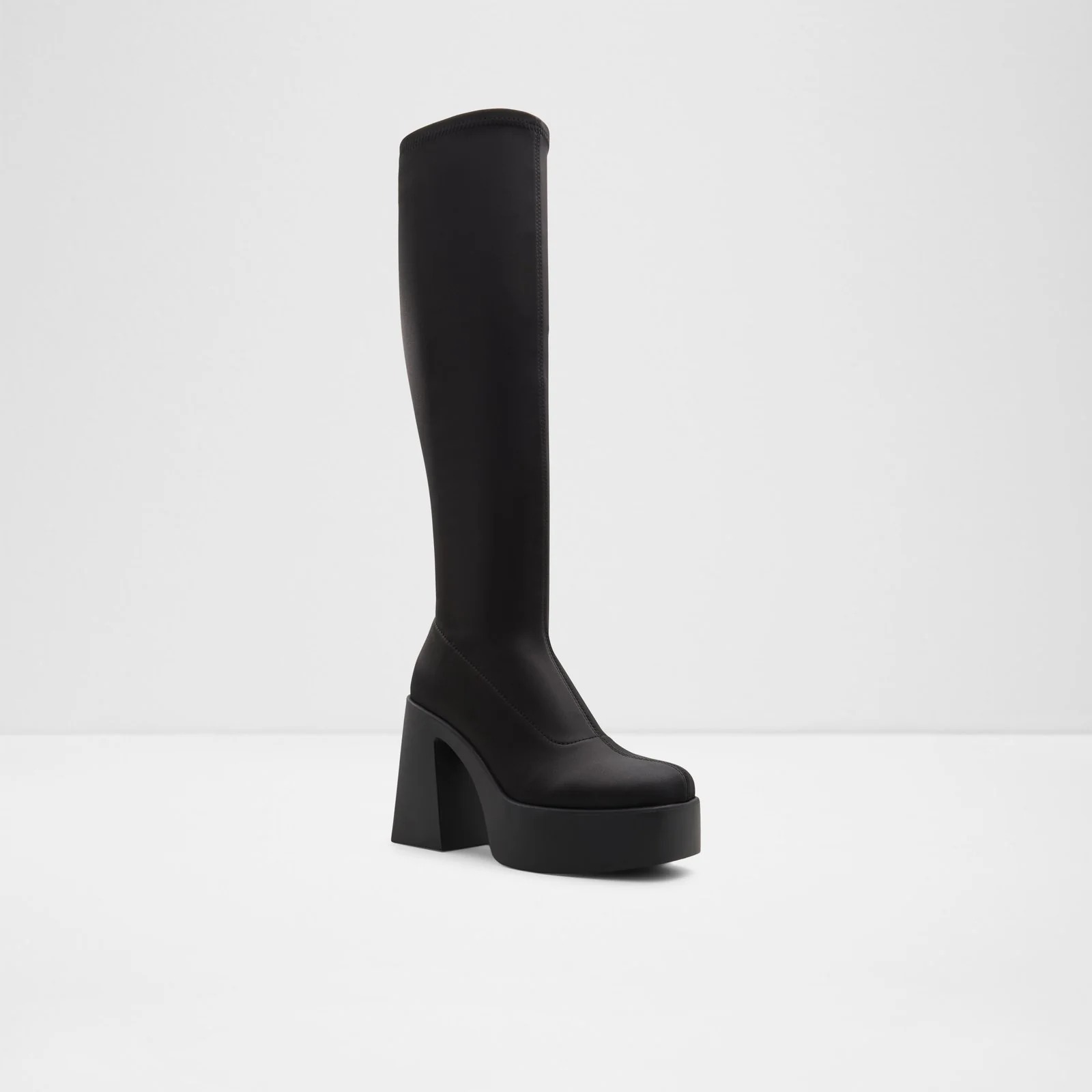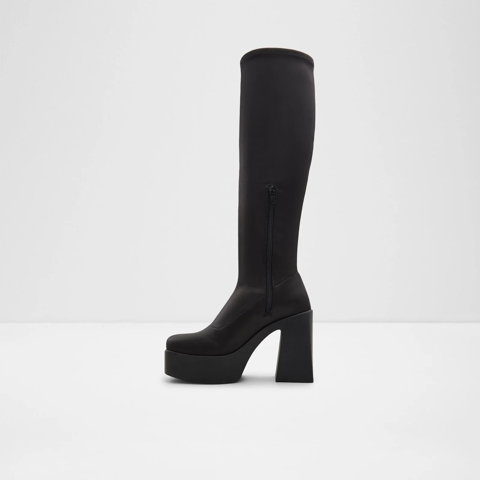 القصة: بوت طويل حتى الركبة – كعب بارتفاع 4.5 سم + منصة 1.5 سم – إغلاق بسحّاب جانبي – تصميم أنيق مستوحى من الطابع الرياضي الكلاسيكي