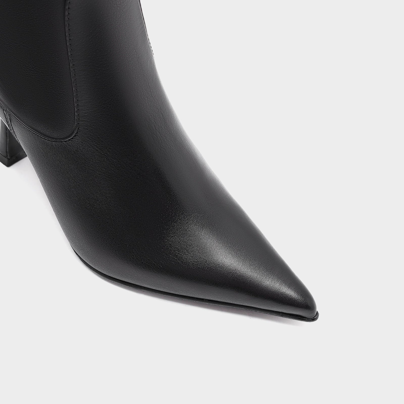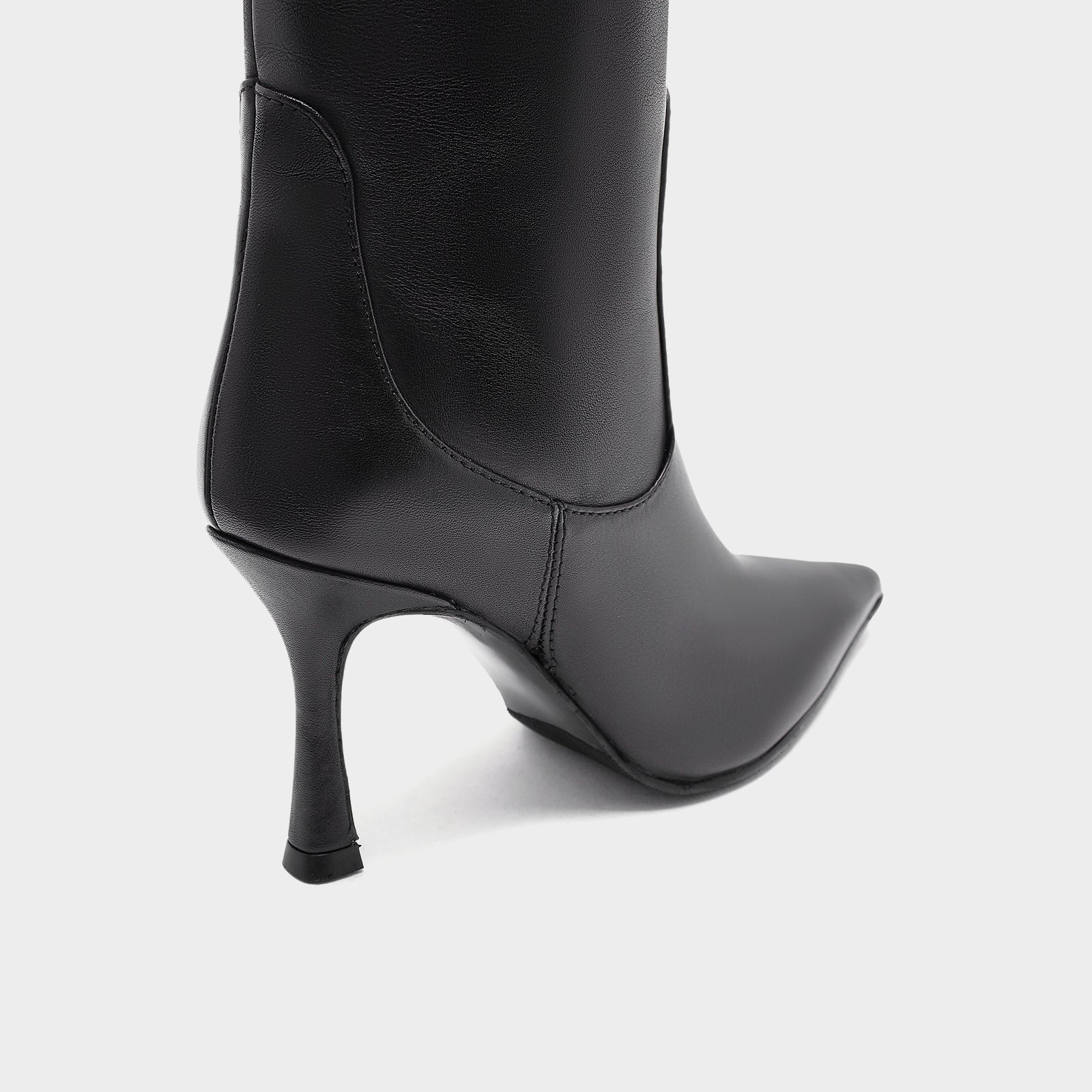 بوت MONTVALE-TR الأسود يعبّر عن الأناقة الرفيعة بروح فاخرة وعملية عالية. يجمع بين تصميم طويل يصل إلى الركبة، ومظهر جلدي كلاسيكي بجلد طبيعي فاخر يعكس جودة تدوم طويلاً. يتميز بكعب ستيلتو رفيع بارتفاع 8.5 سم، ما يمنحك إطلالة أنثوية متحدثة دون المبالغة. تم تصميمه بدون سحّاب ليمنحك مظهرًا أنيقًا وسهولة في الارتداء. بطانة داخلية داعمة تزيد من الراحة أثناء المشي اليومي.