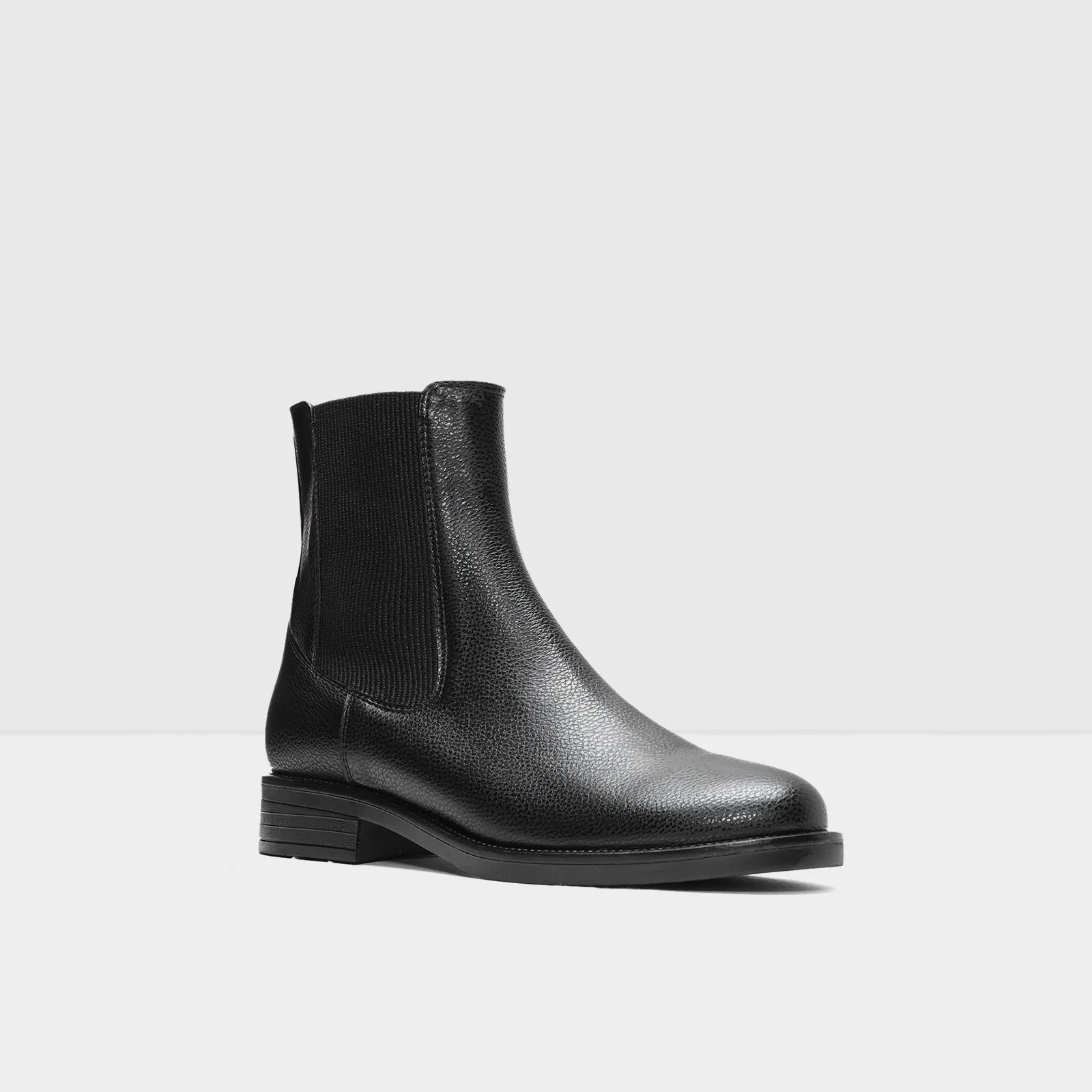 القصة: بوت يصل إلى الكاحل – كعب مسطح منخفض (~3.5 سم) – تصميم كلاسيكي عملي يناسب الاستخدام اليومي