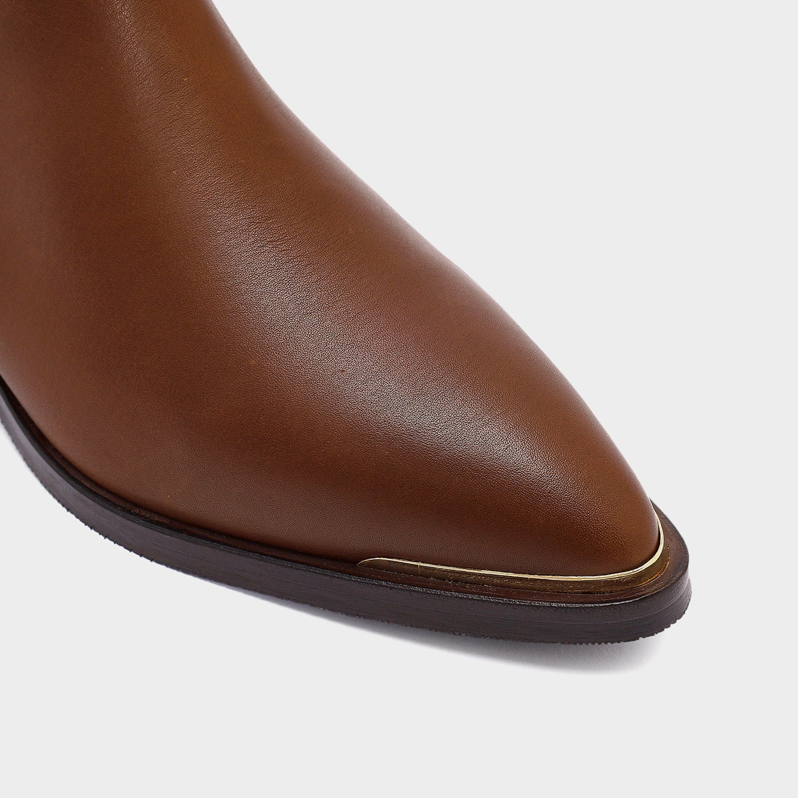 بوت PETERSBURG-TR بلون التابا الدافئ هو تعبير أنيق عن الأناقة العملية المليئة باللمسات الغربية الأنيقة. يتميز بتفاصيل مستوحاة من الغرب الكلاسيكي مثل الحزام الزخرفي والتوكّة، ويُصنّع من جلد طبيعي فاخر لضمان مظهر أنيق وجودة تدوم. الكاحل مزوّد بفتحة مطاطية تُسهّل الارتداء بدون الحاجة إلى سحّاب أو أربطة، ما يجعل المظهر نظيفًا وسلسًا في كل مرة.