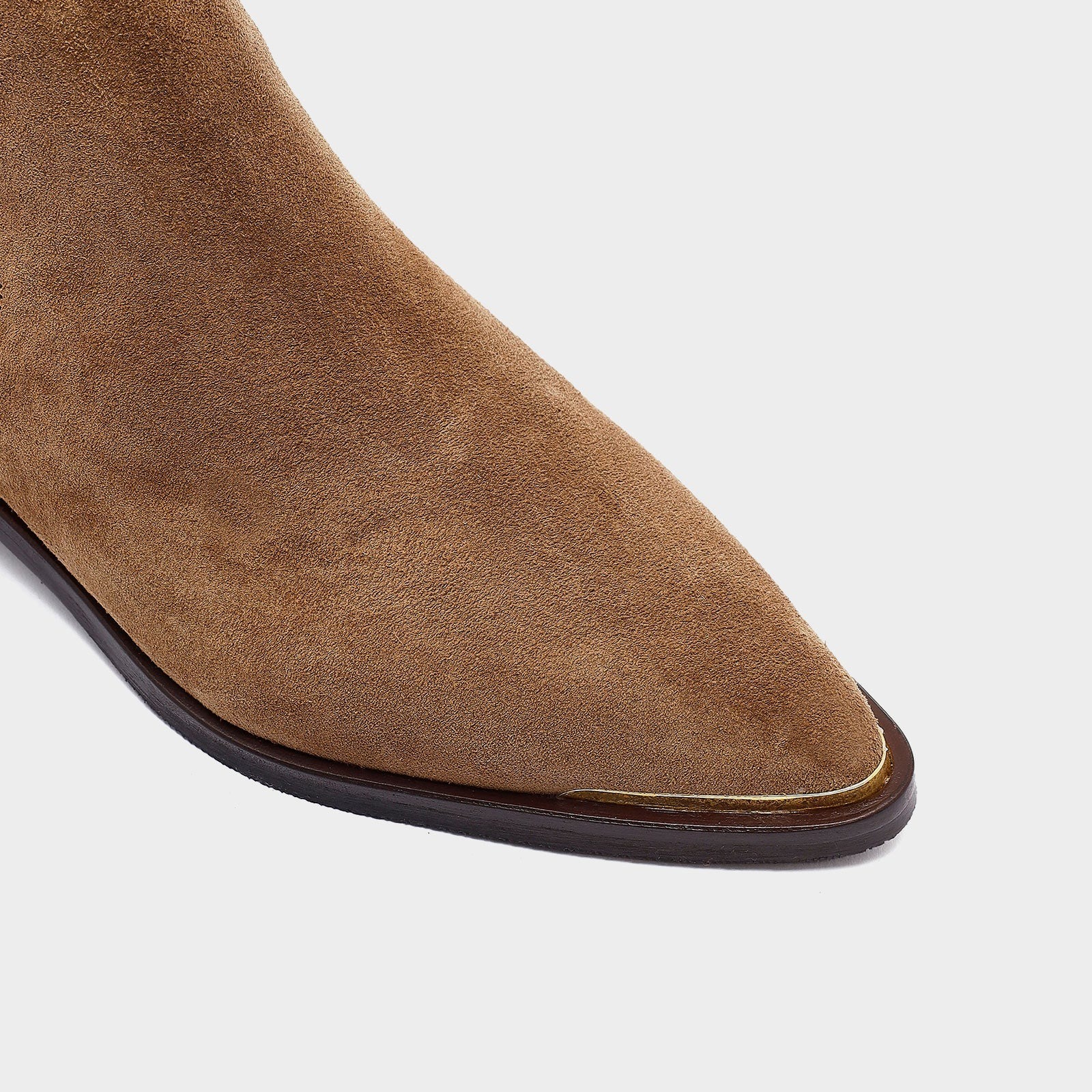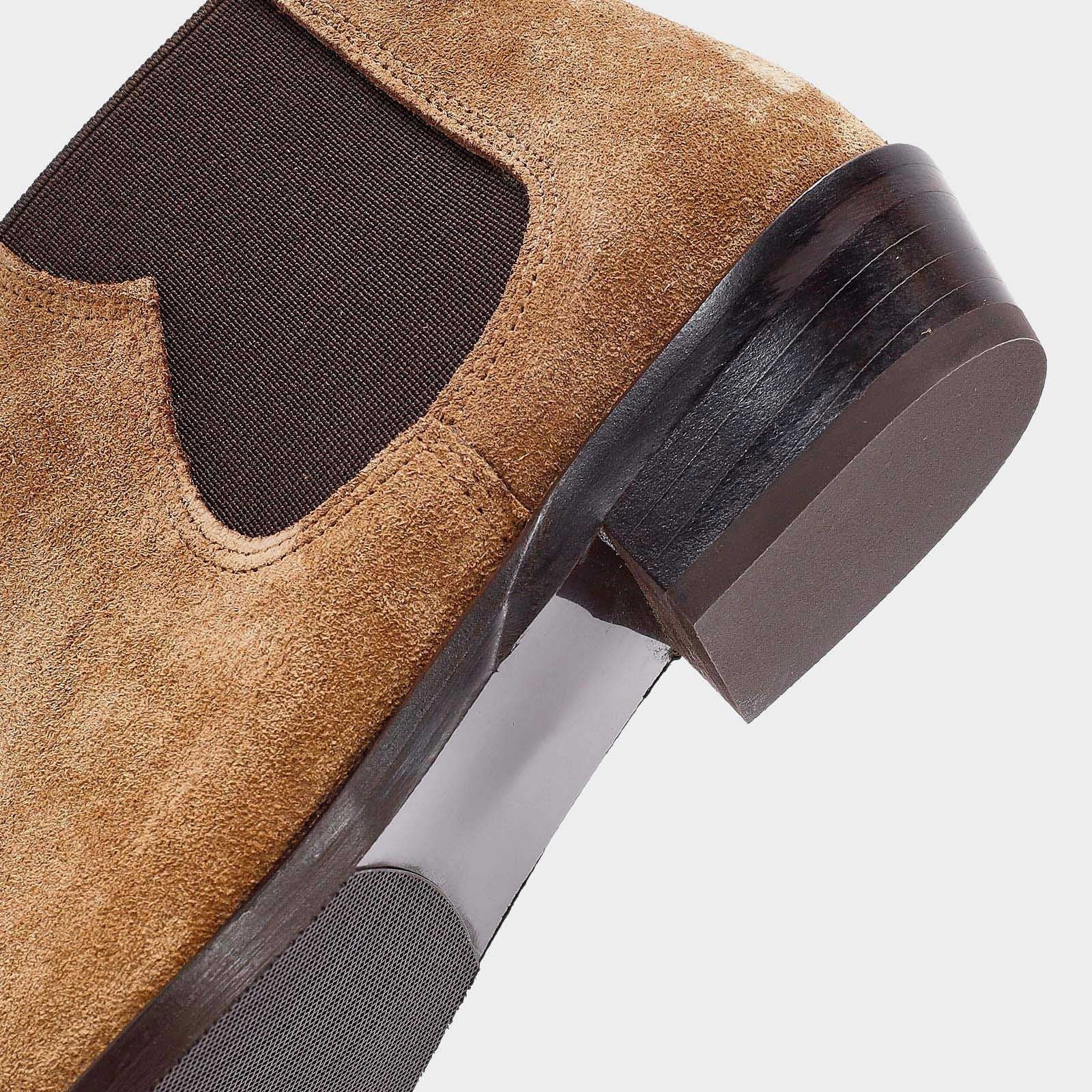 بوت PETERSBURG-TR بلون البيج الدافئ يجمع بين أناقة الإطلالة الغربية وراحة الاستخدام اليومي. مصنوع من جلد طبيعي فخم وذو جودة عالية، مع تصميم بدون سحّاب أو أربطة، ويتميز بحزام غربي أنيق يفصل التصميم الكلاسيكي عن اللمسة المعاصرة. الكاحل مزود بفتحة مطاطية لسهولة الارتداء وسلاسة الإطلالة.