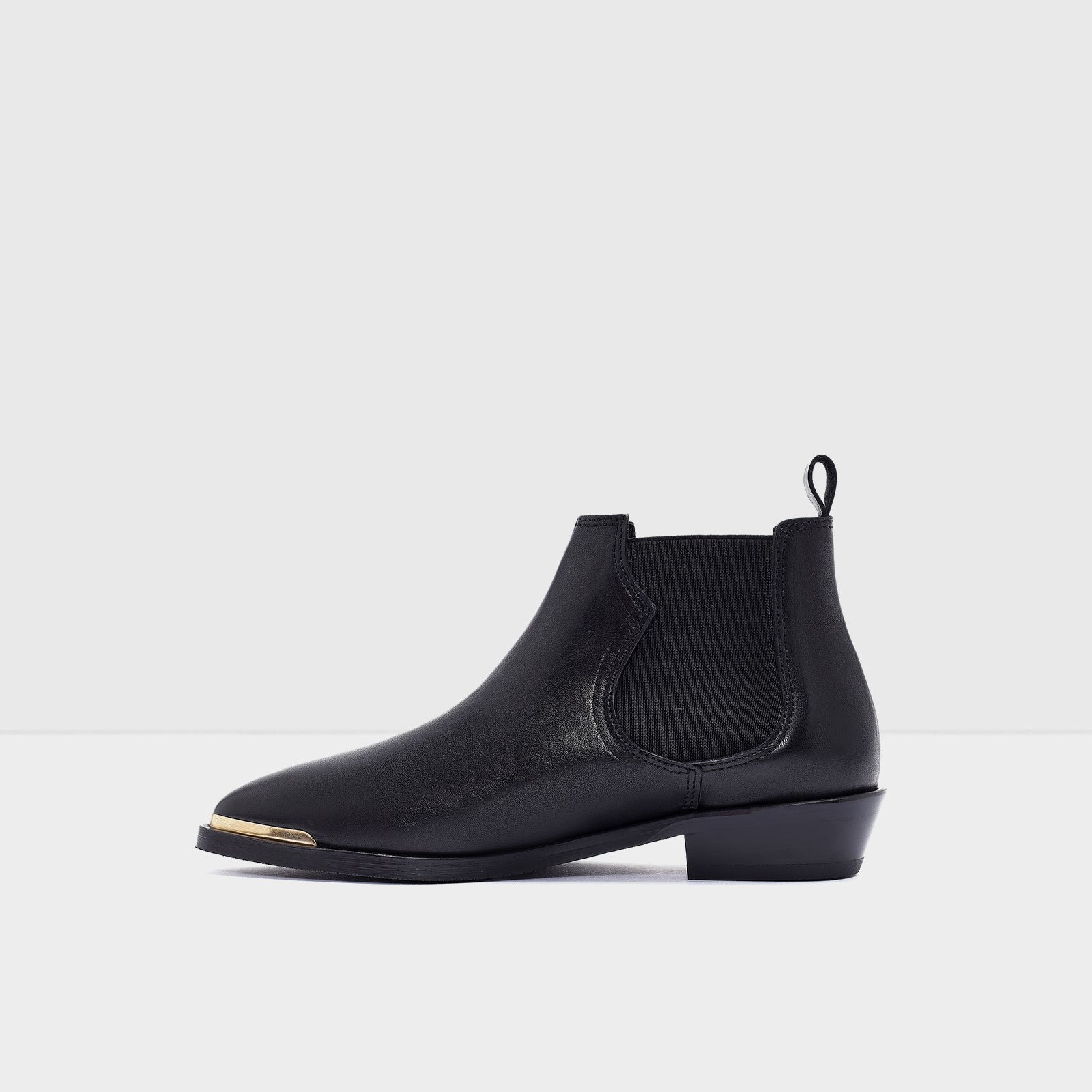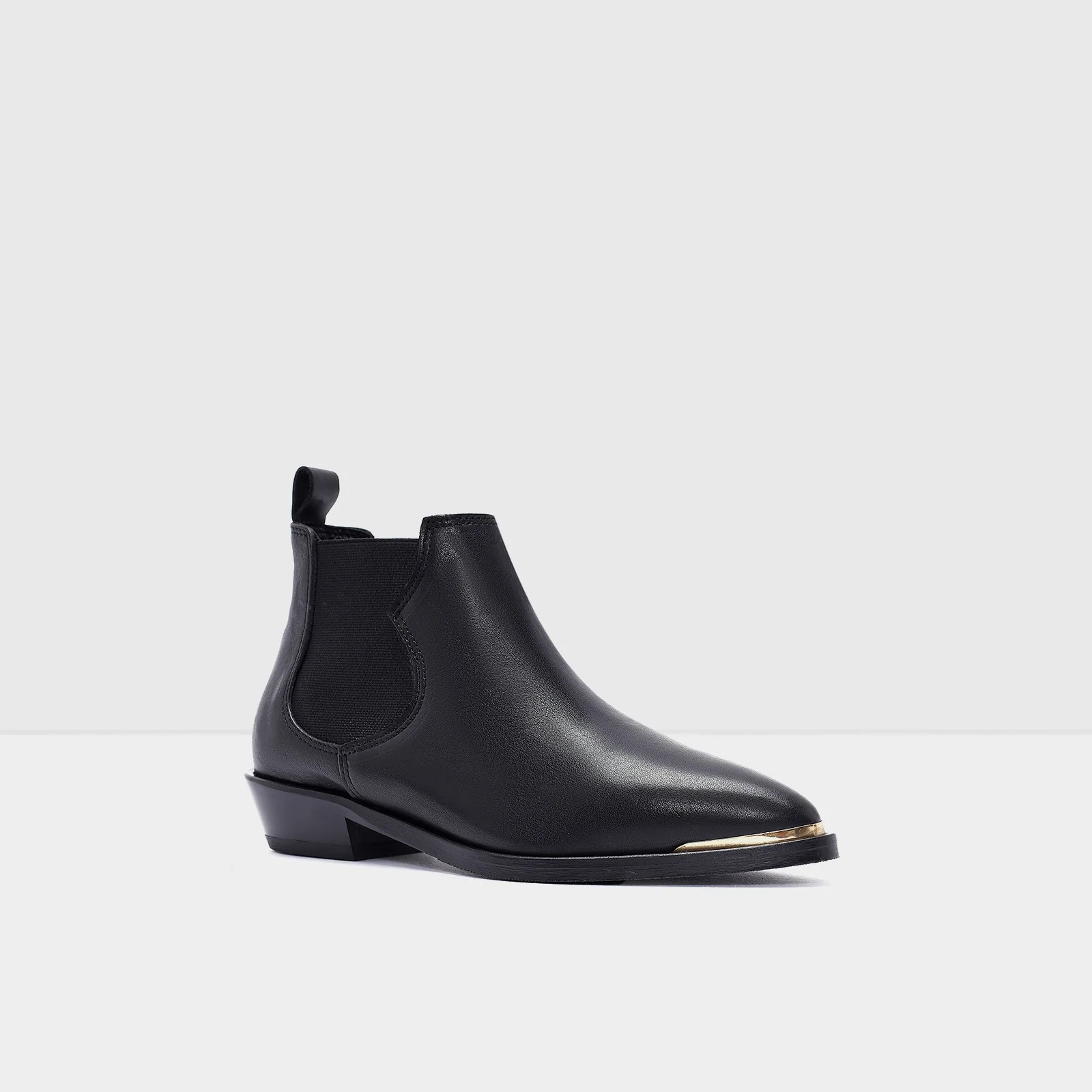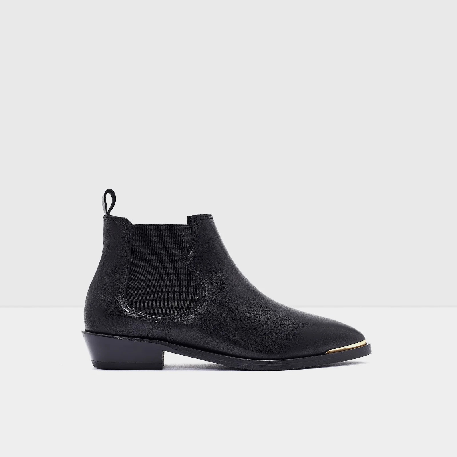 جلد طبيعي فاخر – شريط زخرفي بطابع Western – فتحة مطاطية عند الكاحل للارتداء السلس والعملي.