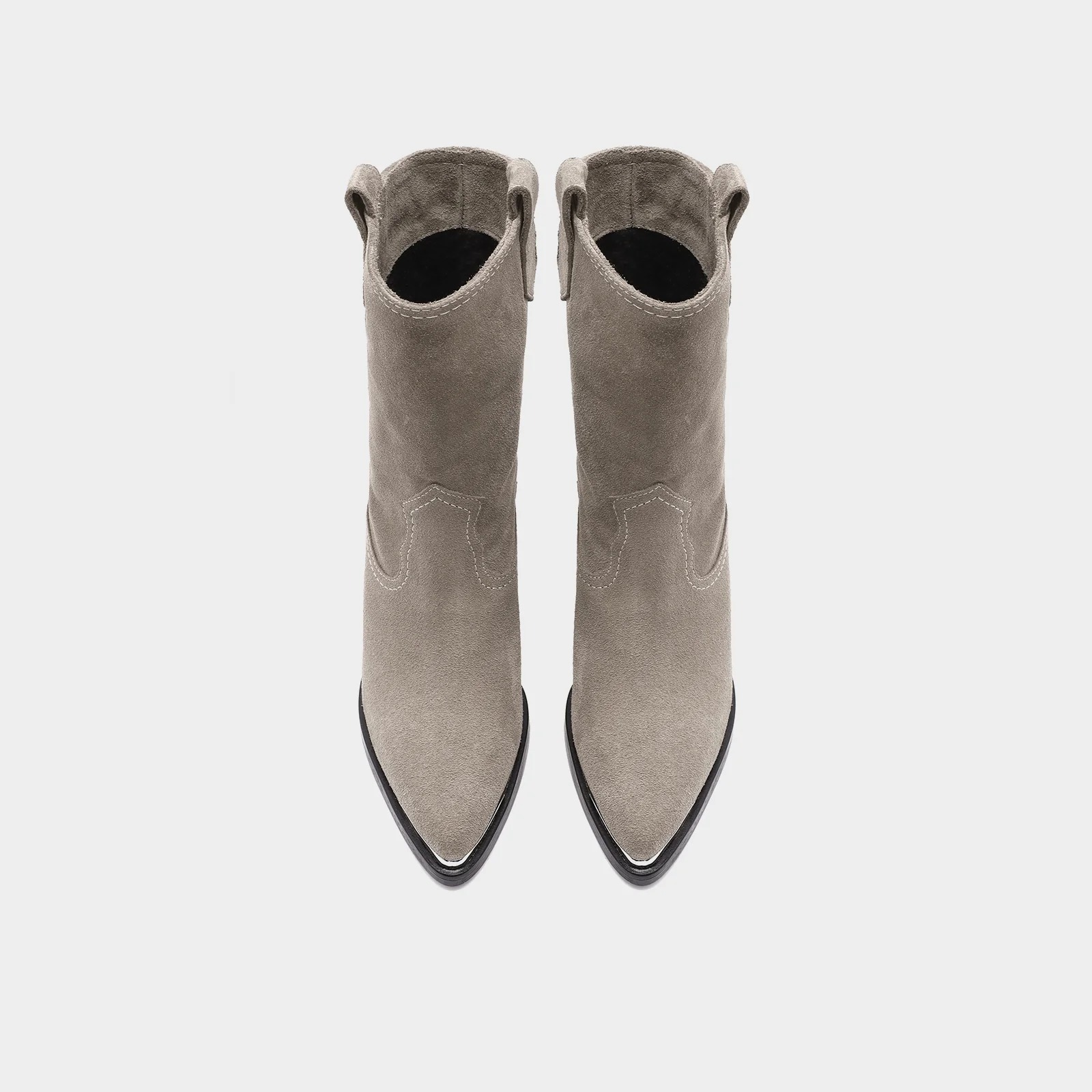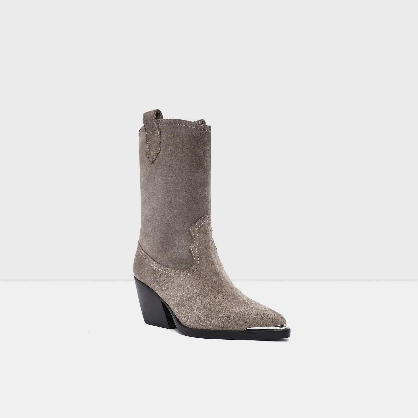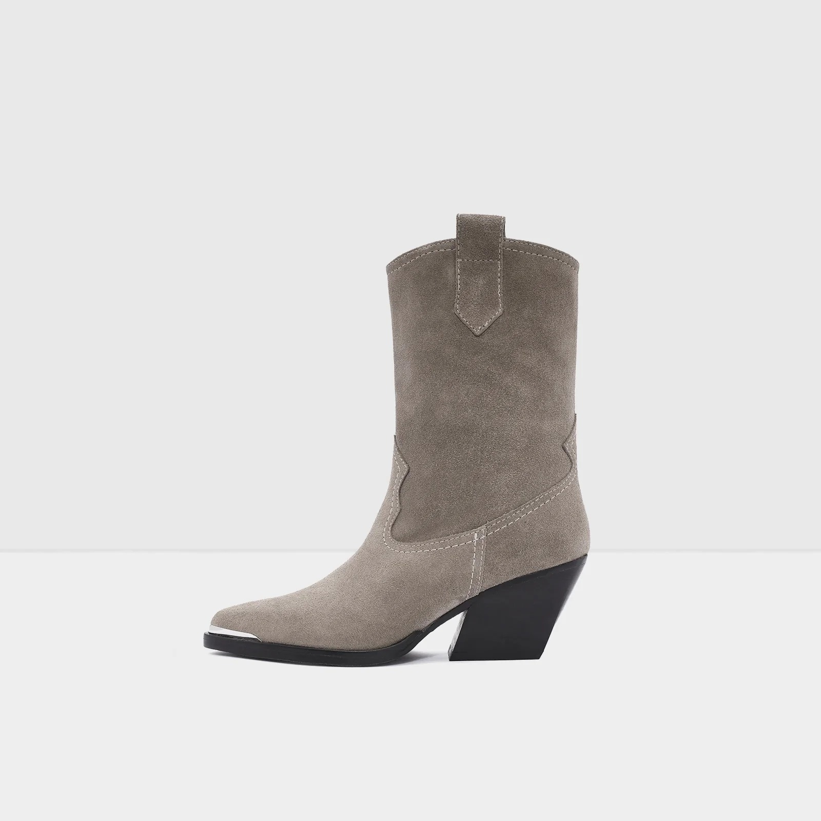بوت VADESSA-TR Beige هو الخيار الأنيق الذي يجمع بين اللمسة الغربية (Western) والجاذبية الناعمة. يتميز بتصميم كاحلي رفيع مصنوع من جلد سويدي فاخر، مع حزام زخرفي يضفي طابعًا كلاسيكيًا راقيًا. الكعب بلوك متوسط الارتفاع، حوالي 8 سم، ما يمنحك أناقة بارزة مع الثبات والراحة في كل خطوة—مثالي للإطلالات اليومية أو السهرات الراقية.