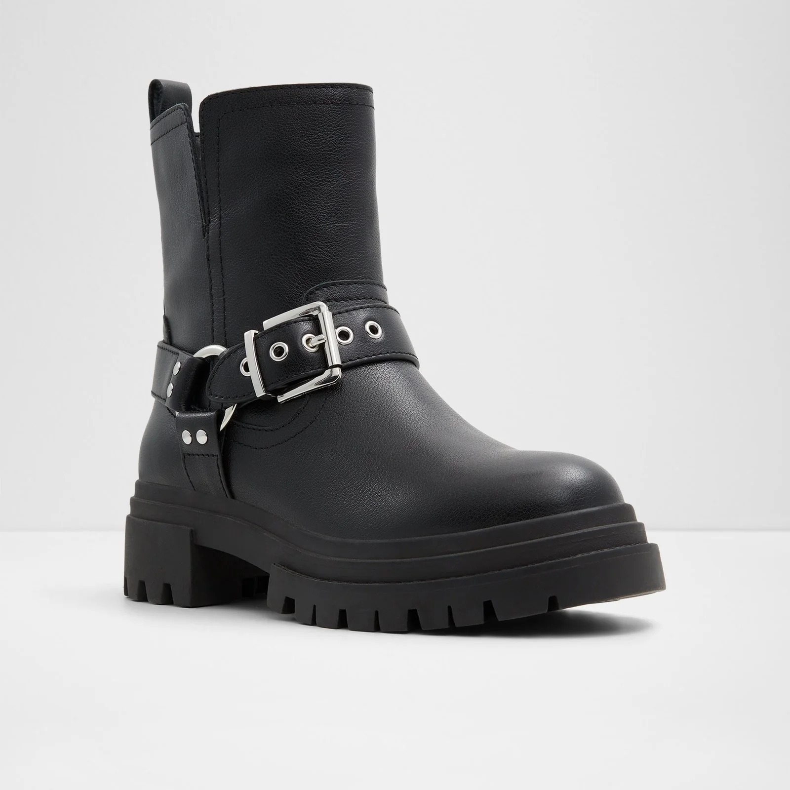 ألـيـا هو بوت عملي بتصميم عسكري عصري (combat)، يُضفي لمسة جريئة على إطلالتك اليومية. يتميز بتركيبة جلدية عالية الجودة تقاوم الزمن، مع نعل مطاطي سميك يمنح ثباتًا فوريًا، بينما تضيف التفاصيل المعدنية لمسة من التميّز والقوة إلى التصميم.