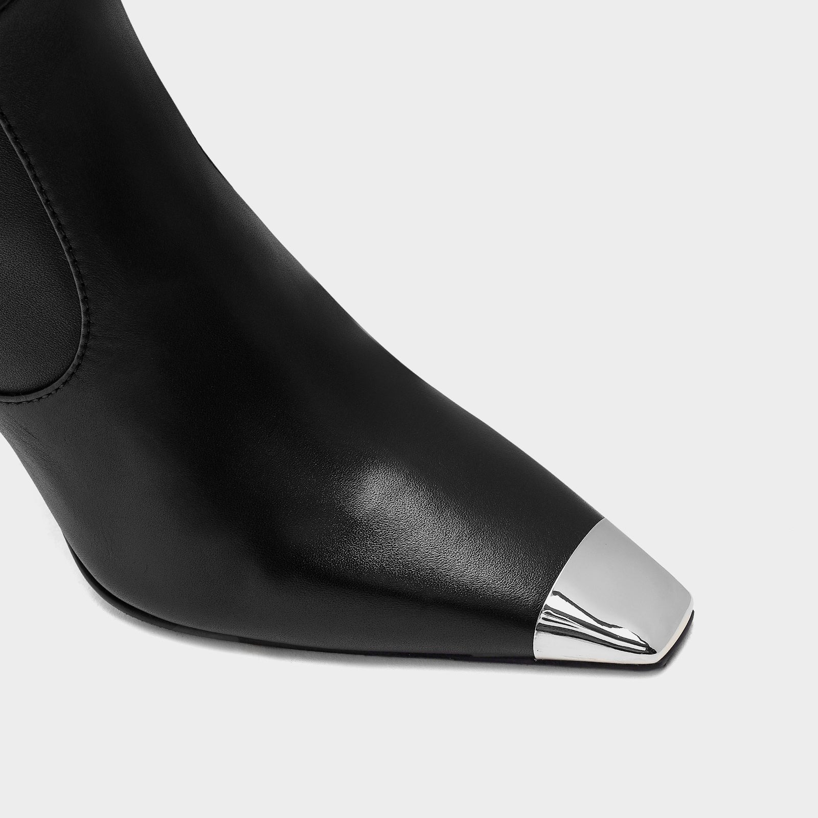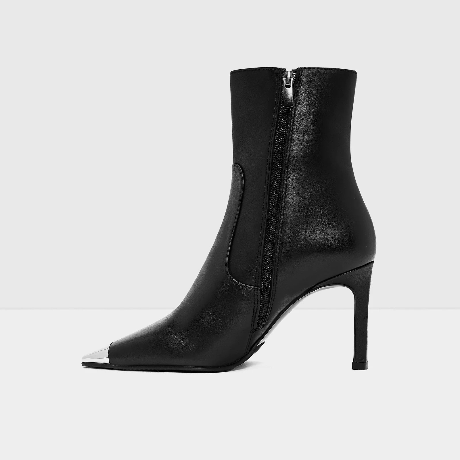 القصة: بوت يصل إلى الكاحل – كعب متوسط (~8.5 سم) – إطلالة غربيّة وعصرية بلمسات قوية