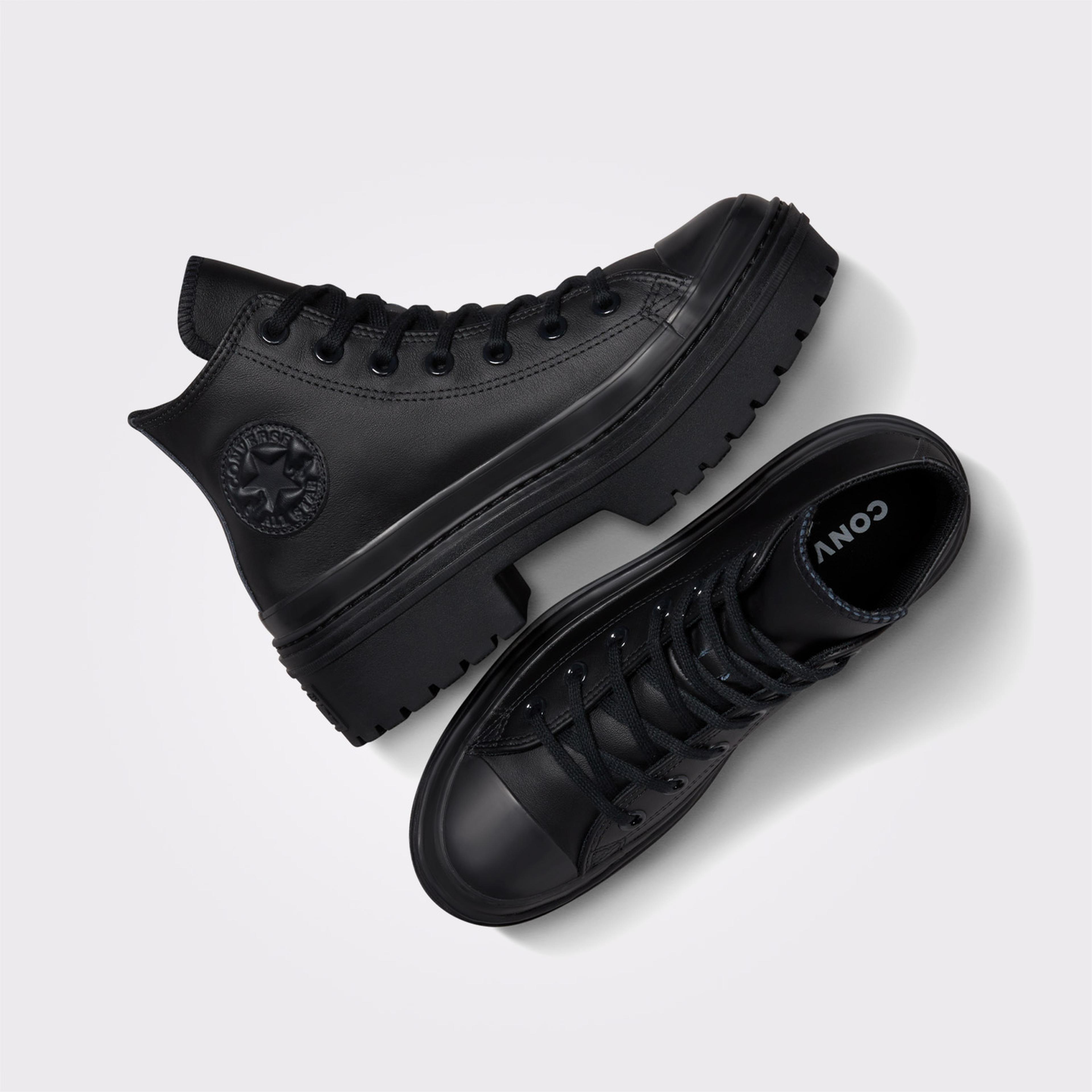 Chuck Taylor All Star Lugged Heel – سنيكر جلدي أسود بتصميم عملي وكعب مرتفع