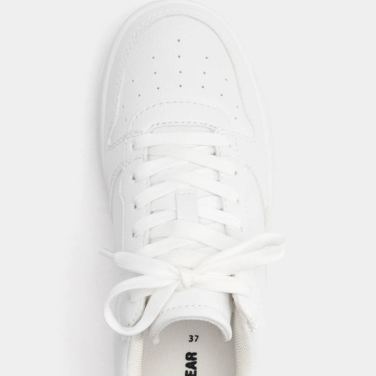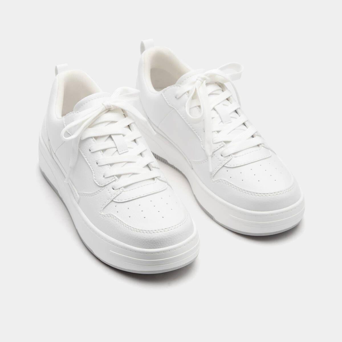 Pull & Bear Basic – سنيكر أبيض نسائي بخامة سويد ونعل سميك
