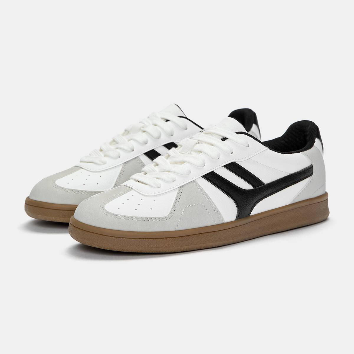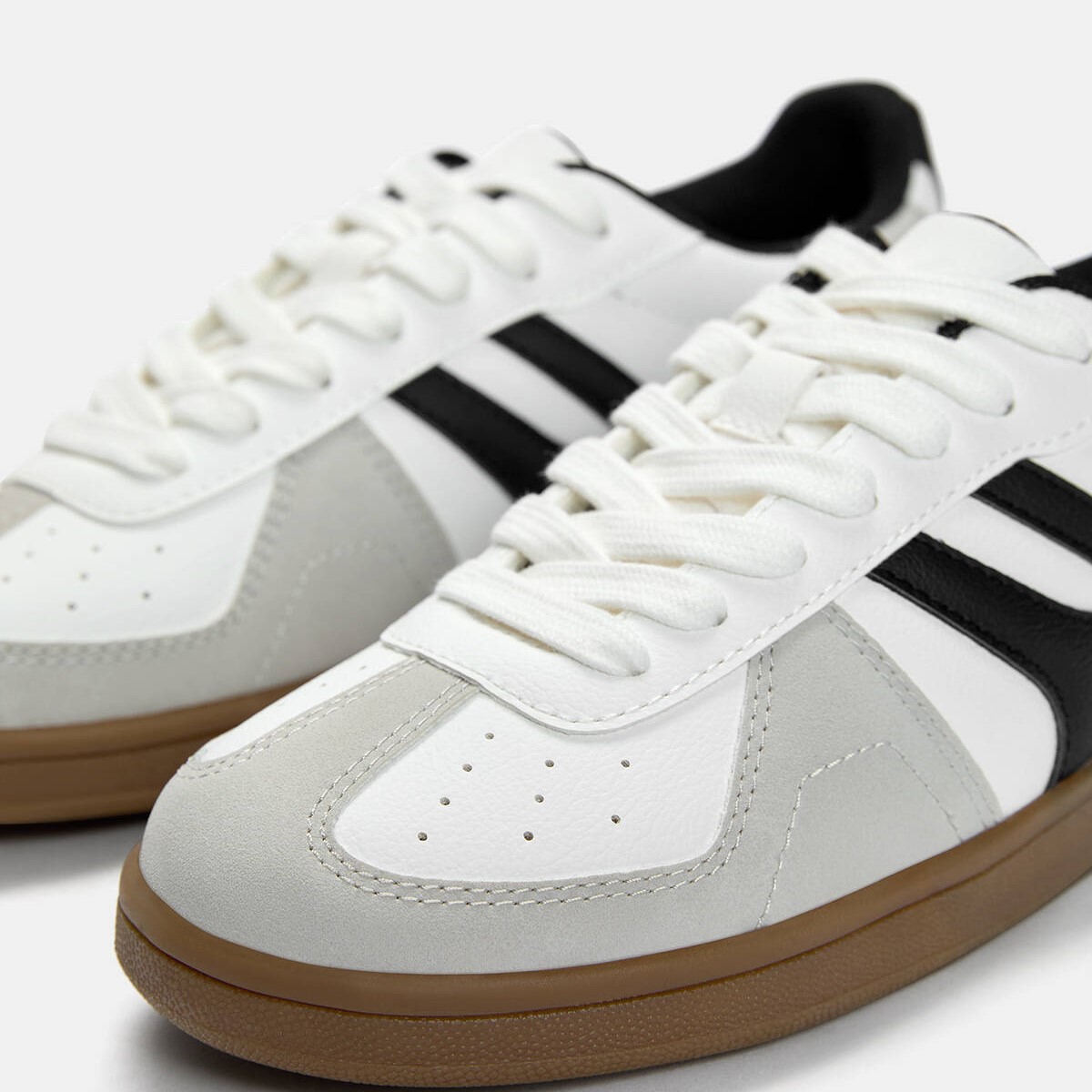 Pull & Bear Retro – سنيكر أبيض نسائي بخطوط كلاسيكية ونعل سميك