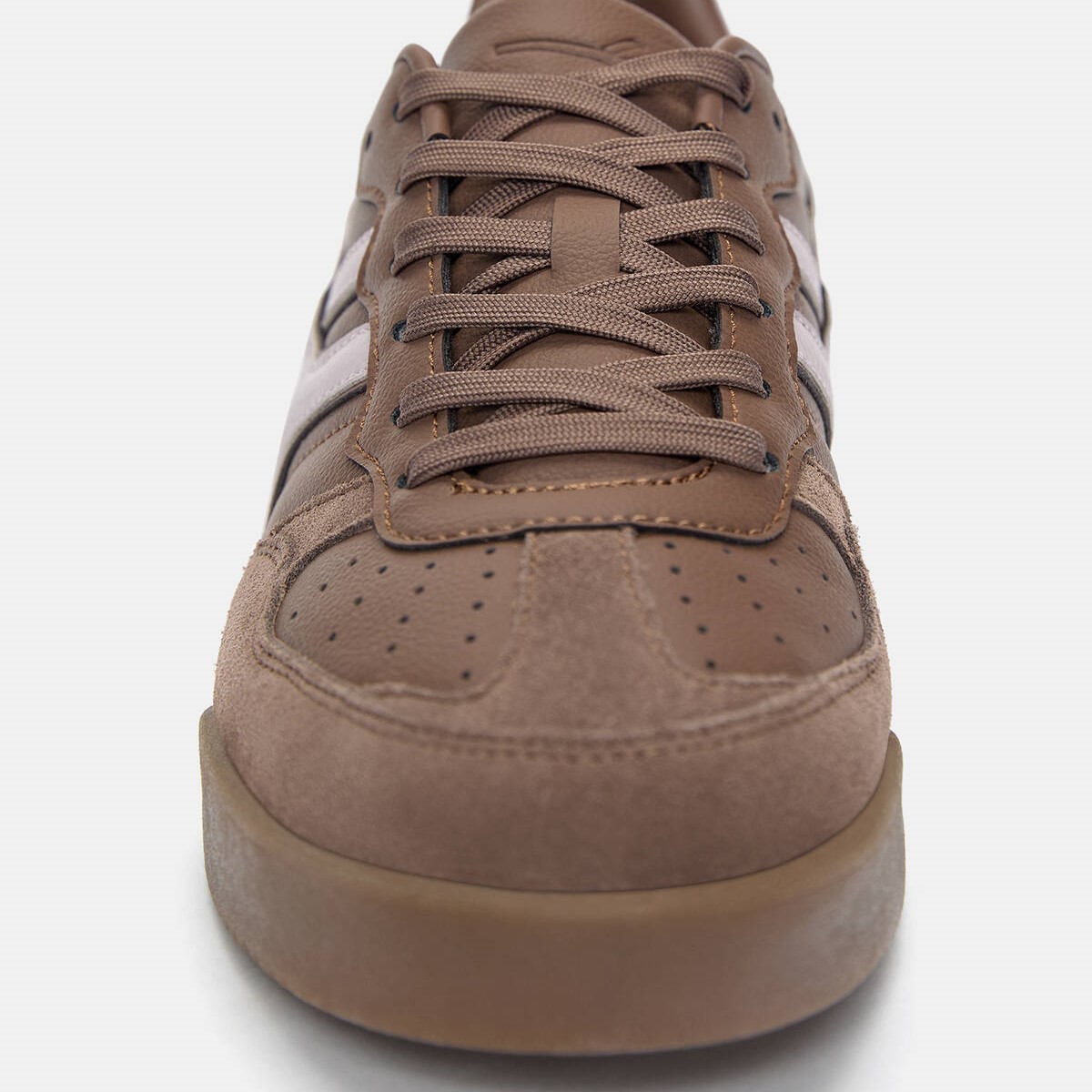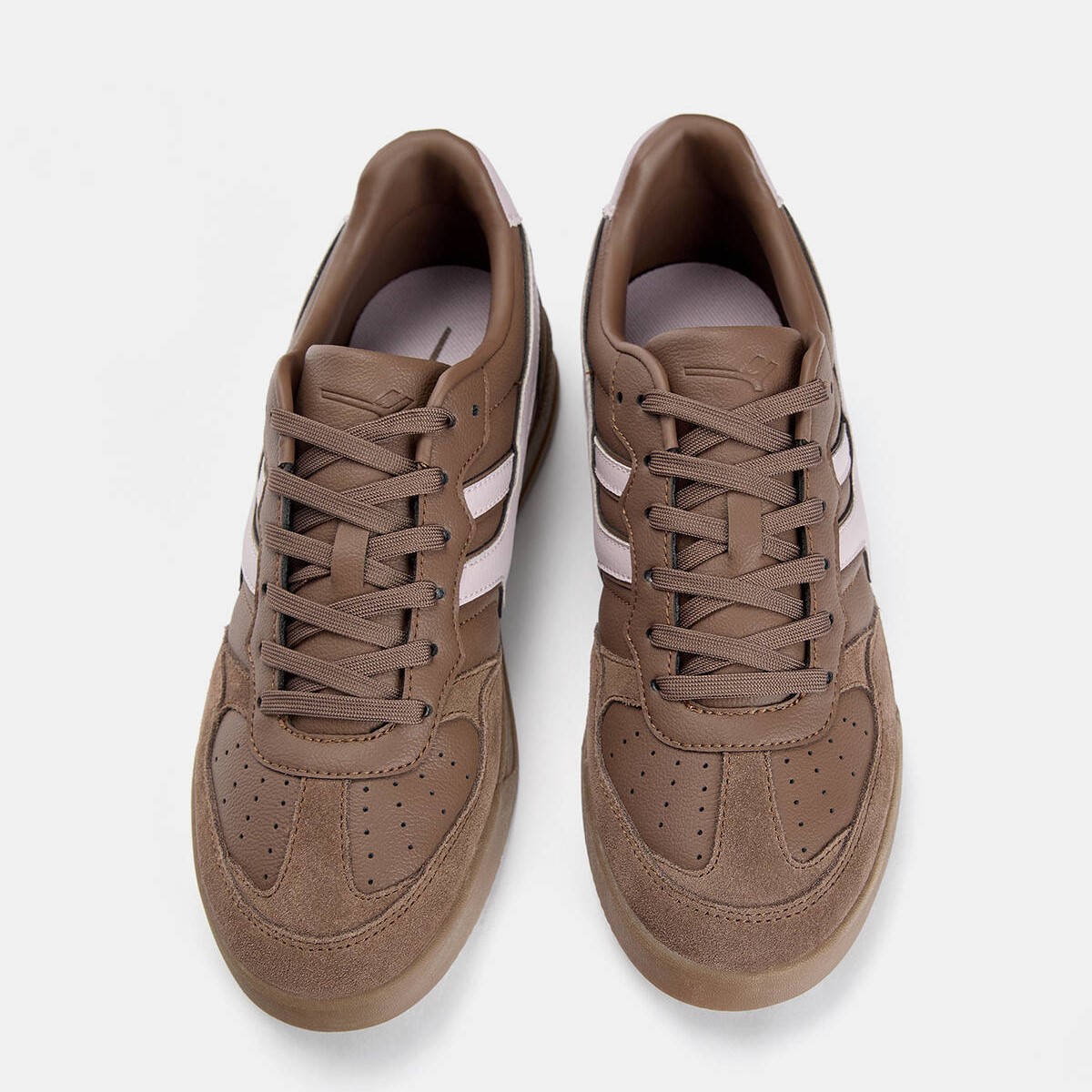 Pull & Bear Retro – سنيكر بني نسائي بخطوط كلاسيكية ونعل مرتفع