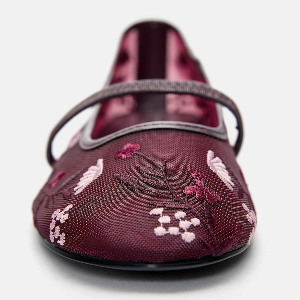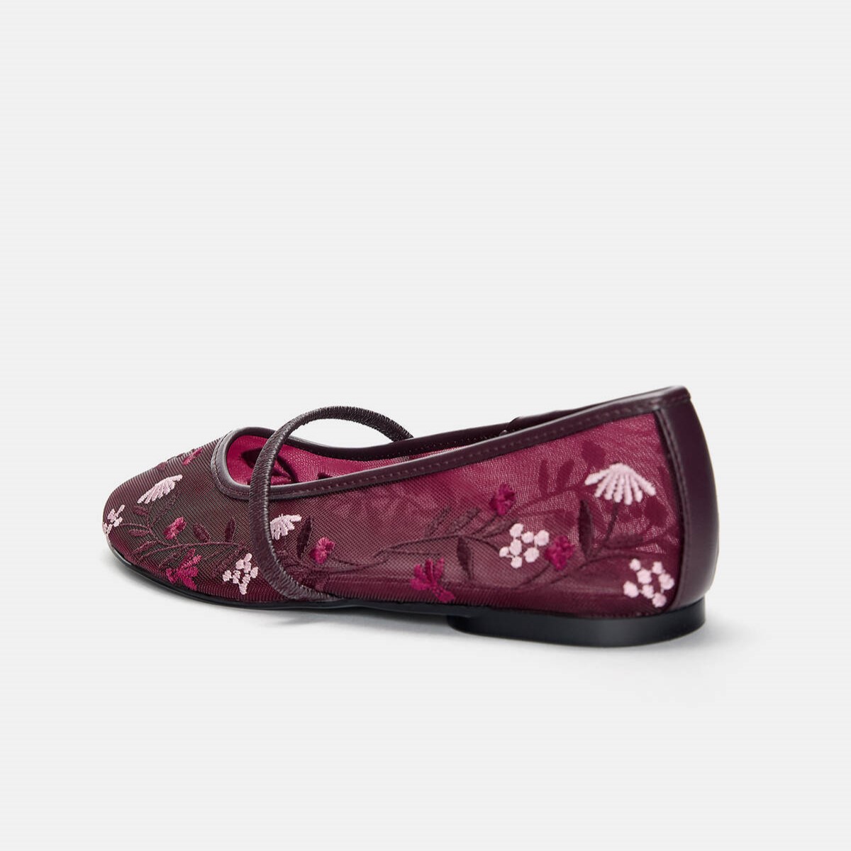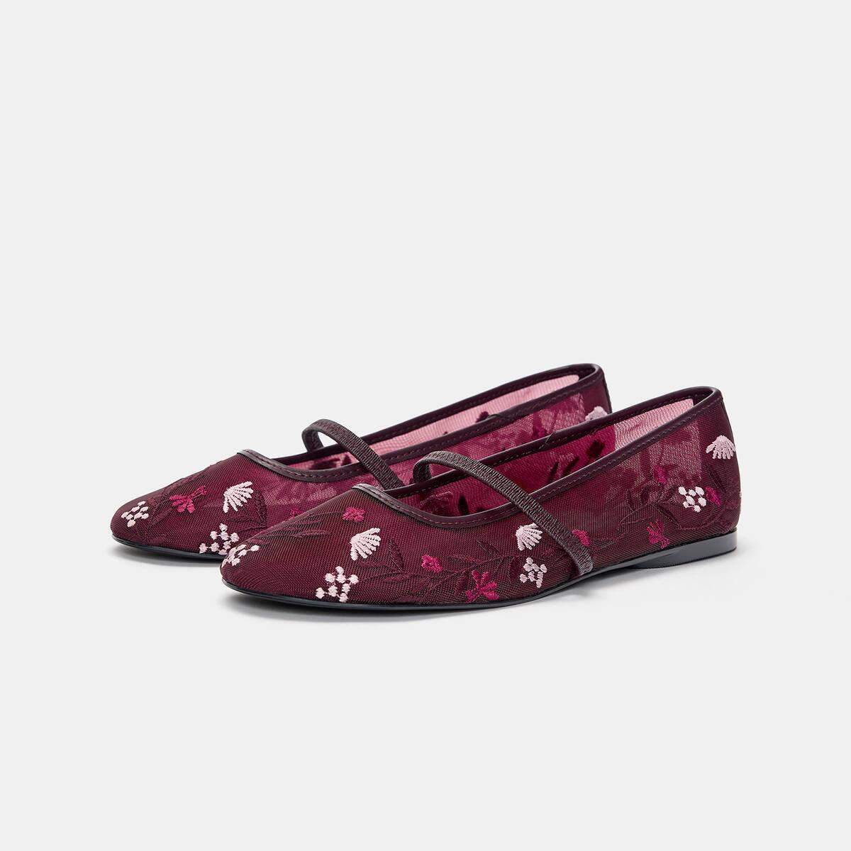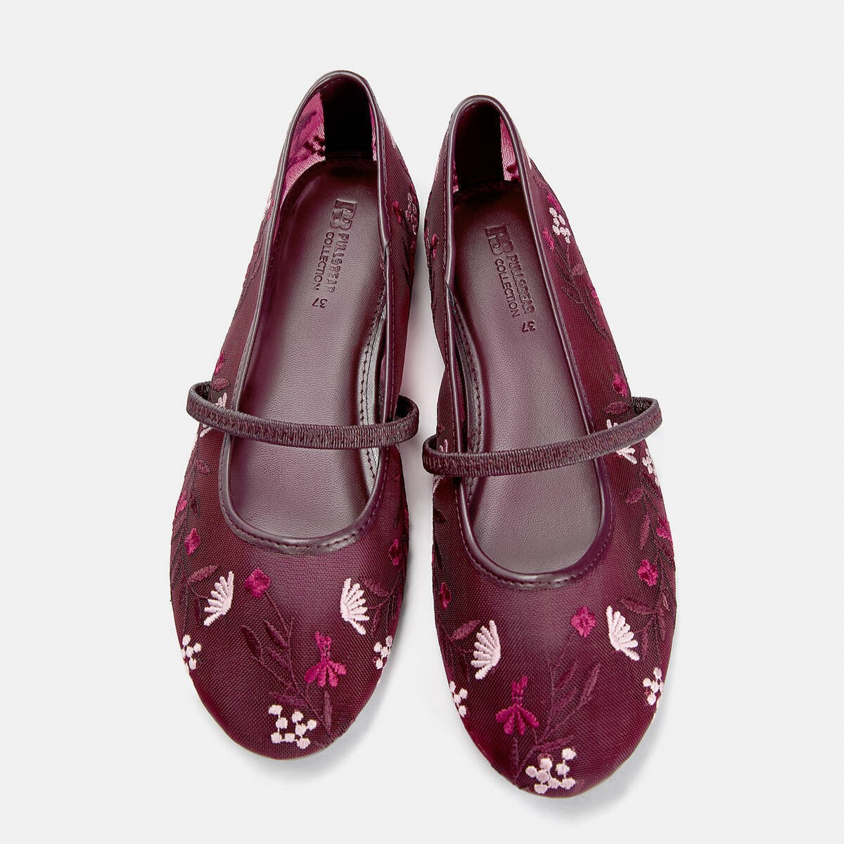 Pull & Bear – بابيت نسائي بوردو مطرّز بخامة شبكية ولمسة أنثوية ناعمة