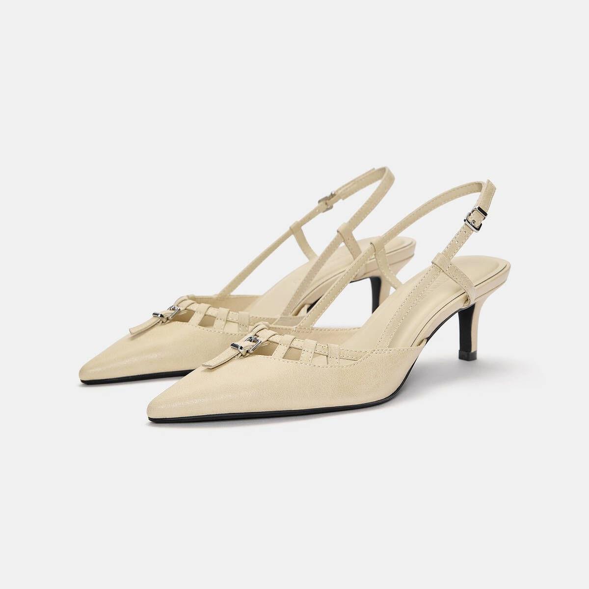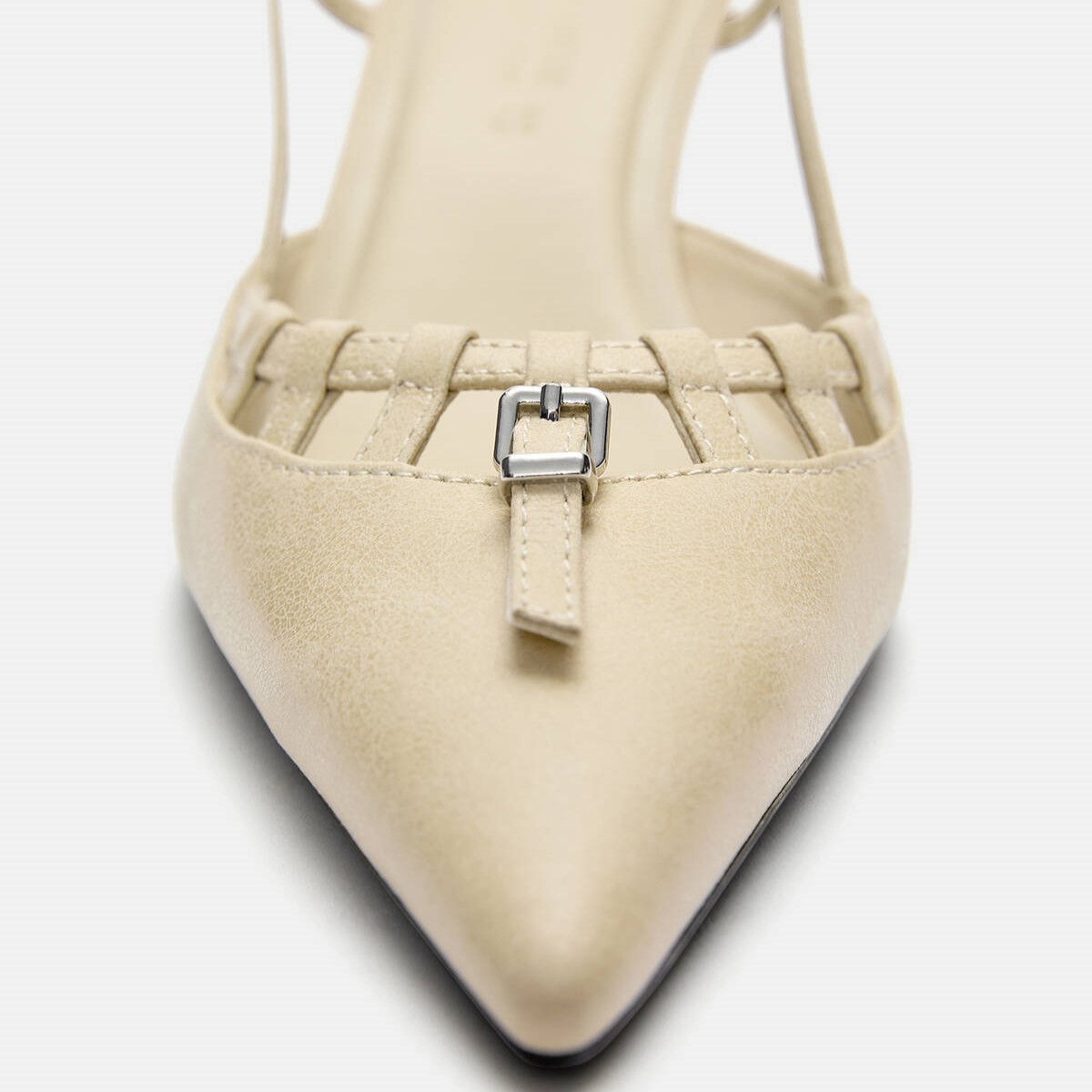 تميّزي بالأناقة العصرية مع هذا الحذاء من Pull & Bear بتفاصيل الحزام والإبزيم الأمامي. تصميمه المدبب يمنحك لمسة أنثوية راقية، بينما اللون الإكرو الحيادي يجعله خياراً مثالياً للتنسيق مع مختلف الإطلالات. الكعب المتوسط مع بطانة STARFIT® يضمنان الراحة والثبات طوال اليوم، ليجمع بين العملية والأناقة في قطعة واحدة.