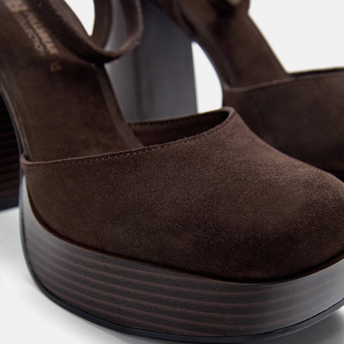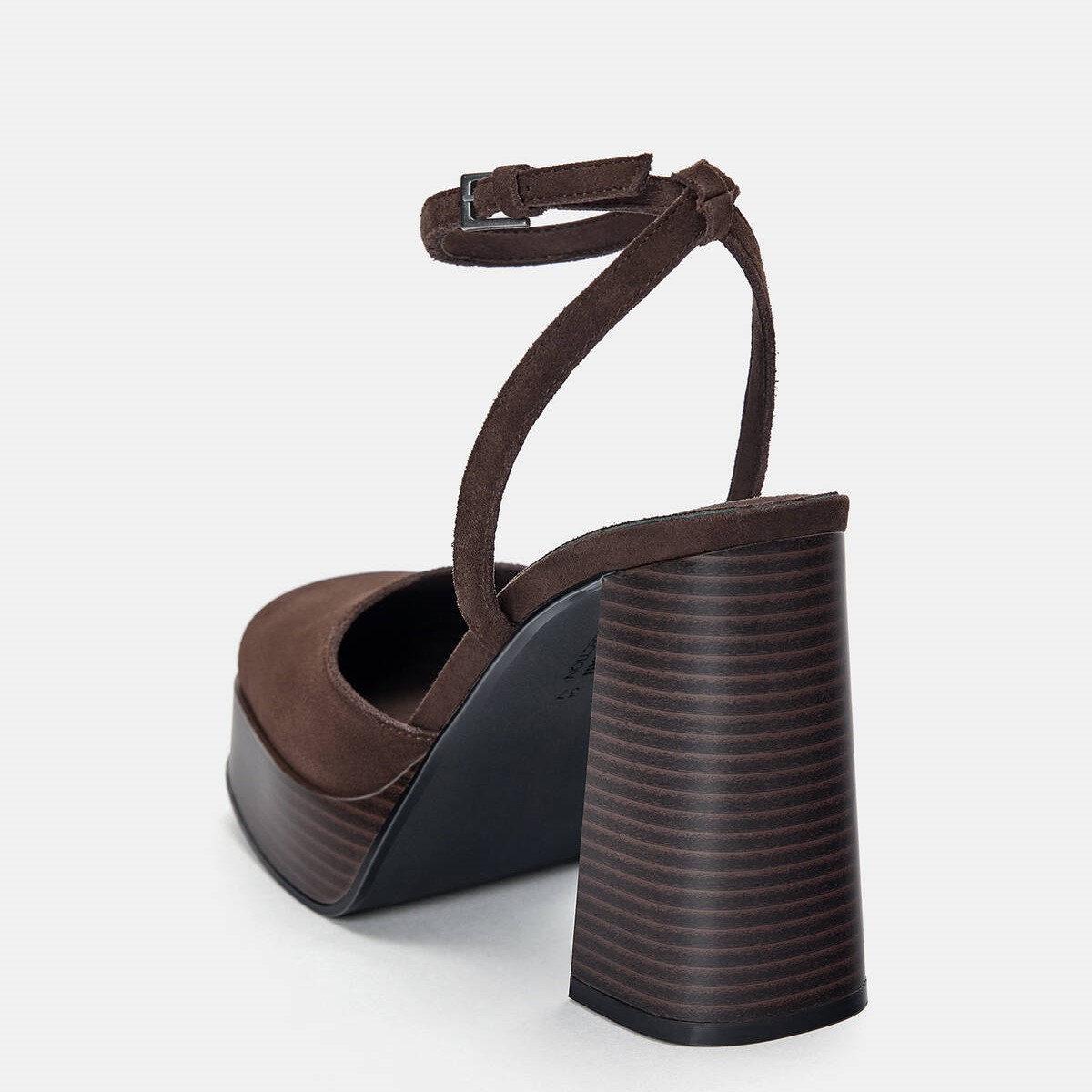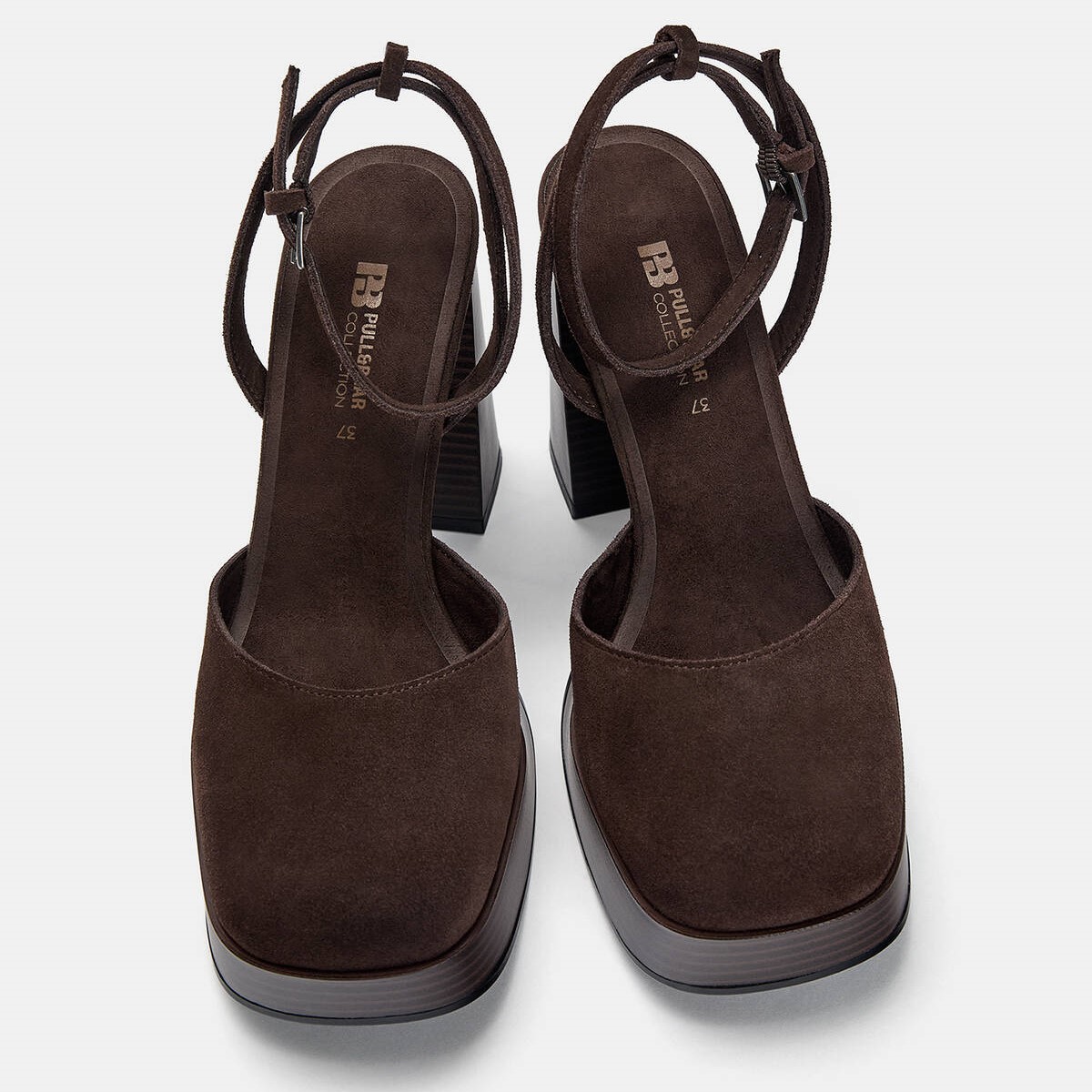 Pull & Bear – حذاء نسائي بكعب عالي ومنصة جلدية بتصميم سويد فاخر