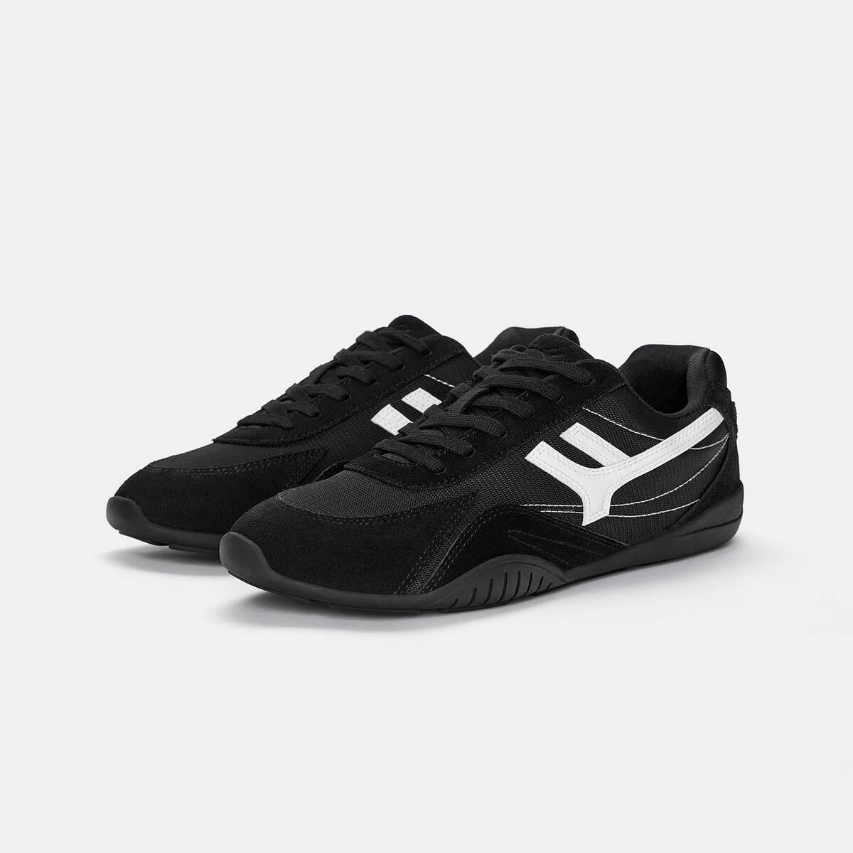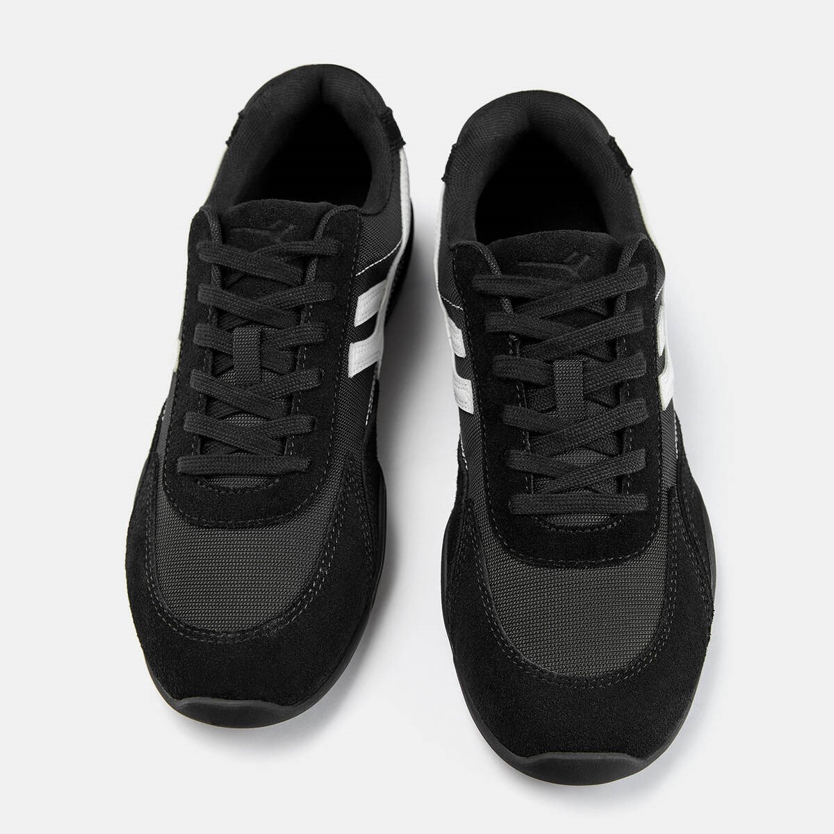 أضيفي لمسة كلاسيكية إلى إطلالتك اليومية مع سنيكر Pull & Bear المصمم بأسلوب ريترو يجمع بين الأناقة والراحة. يتميز بخامة السويد الطبيعي والقماش المنسوج، مع نعل داخلي بتقنية OrthoLite® التي تمنحك دعماً مرناً طوال اليوم. تصميمه المتعدد القطع بلونه الأسود يجعله مثالياً للتنسيقات الكاجوال والعملية.