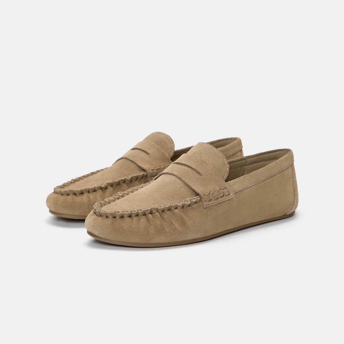 Pull & Bear – لوفر نسائي من الجلد الطبيعي بلون بني أنيق