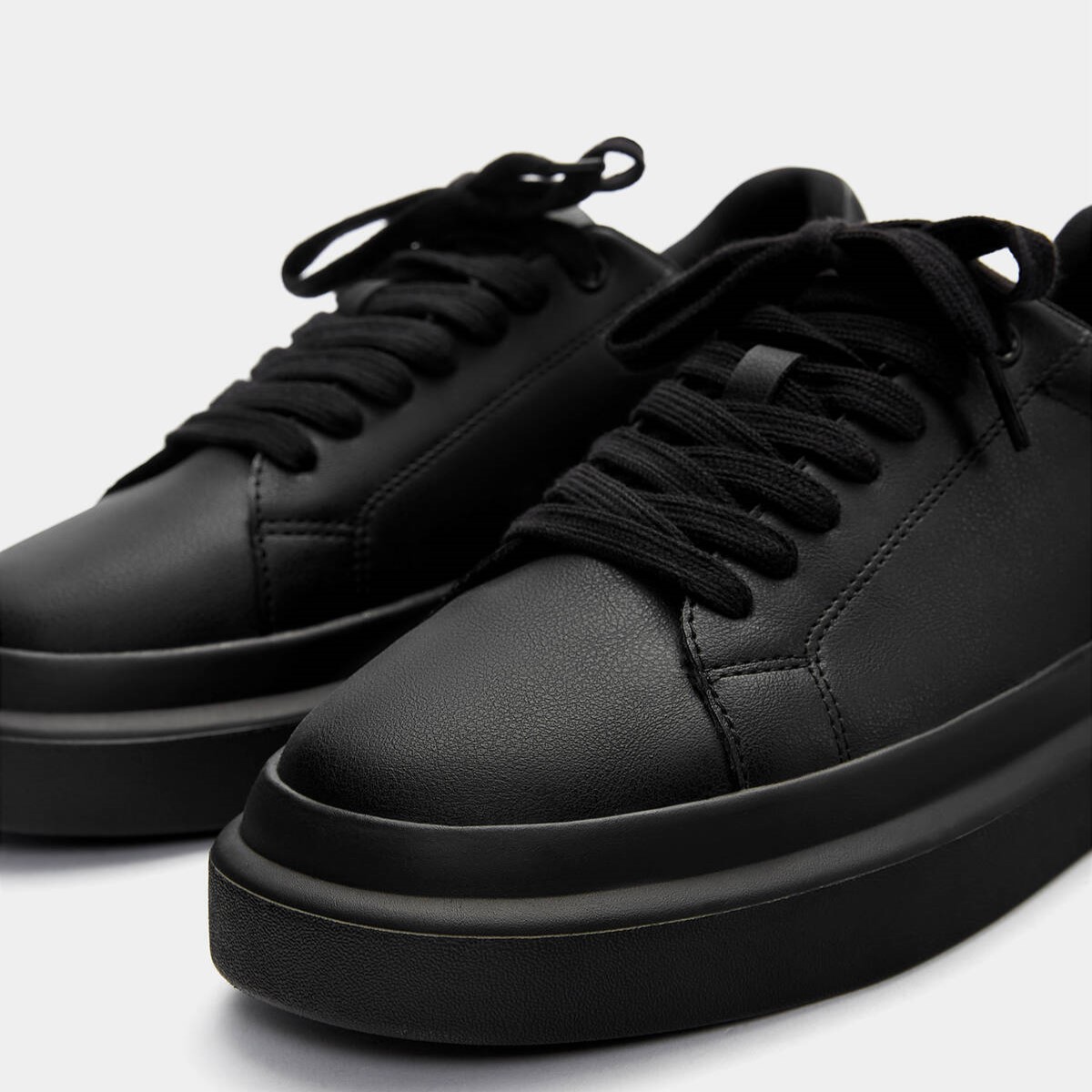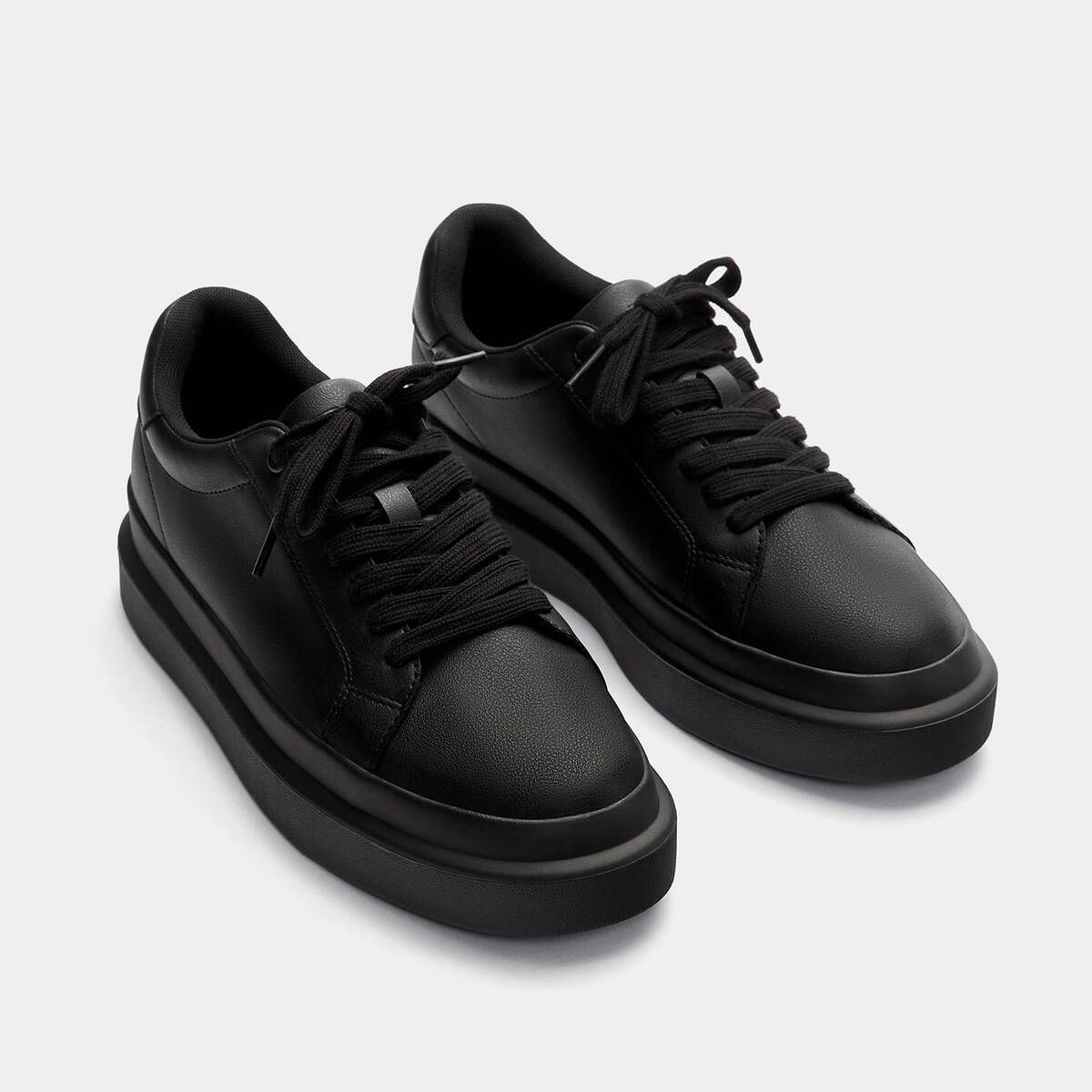Pull & Bear – حذاء رياضي رجالي بنعل سميك وخامة سويد بلون أسود