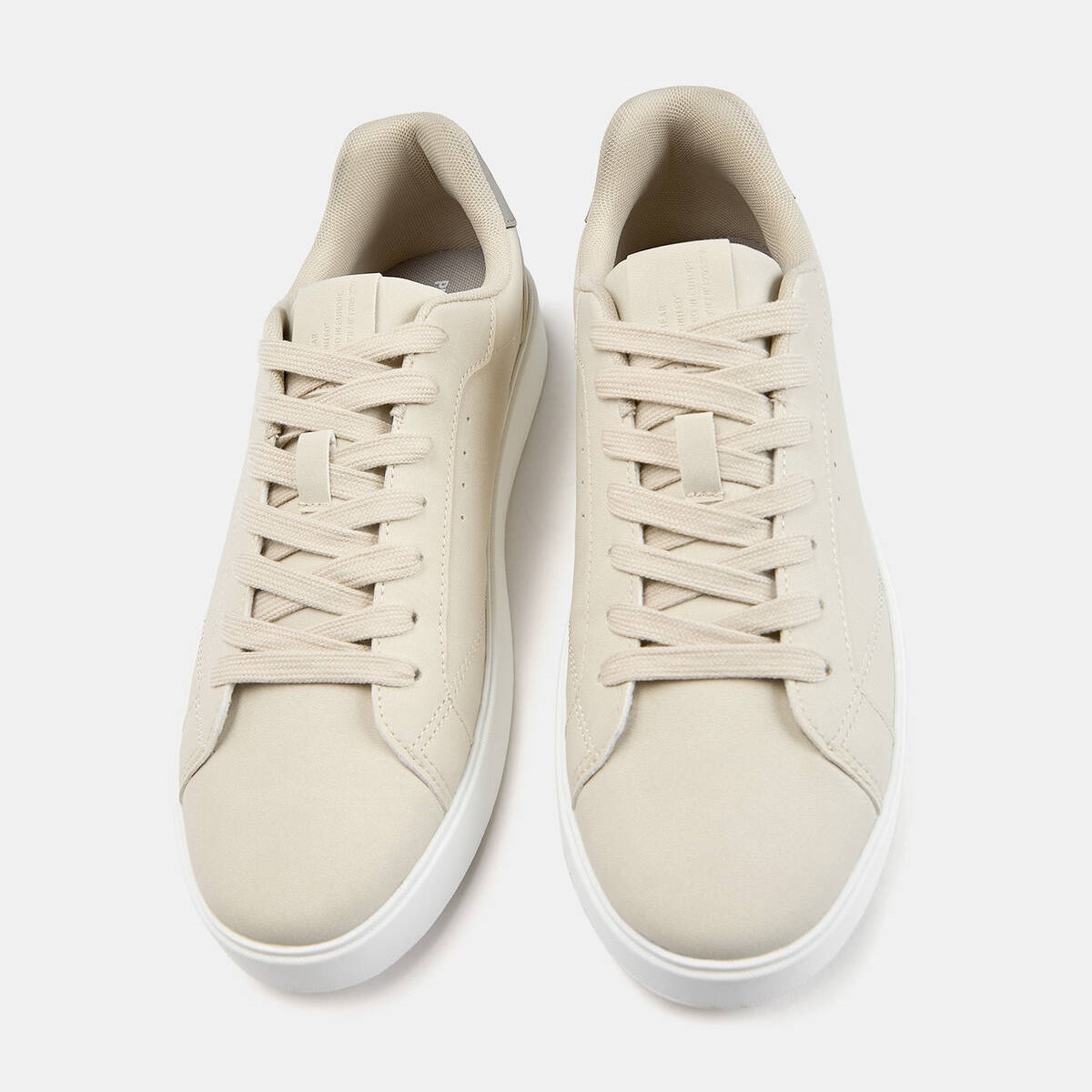 Pull & Bear – حذاء رياضي رجالي بتفاصيل كونتراست ونعل سميك بلون إكرو