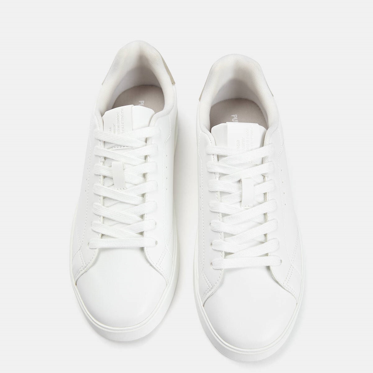 Pull & Bear – حذاء رياضي رجالي بتفاصيل بسيطة ونعل سميك بلون أبيض