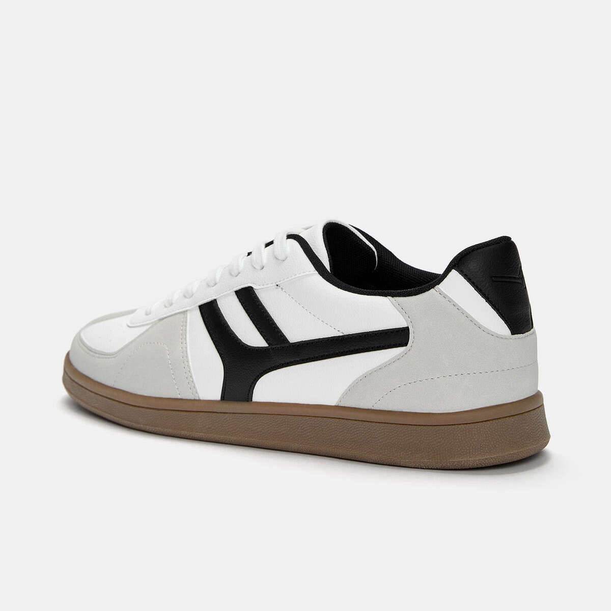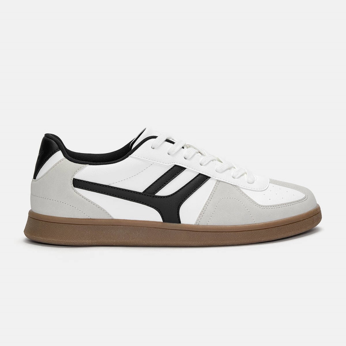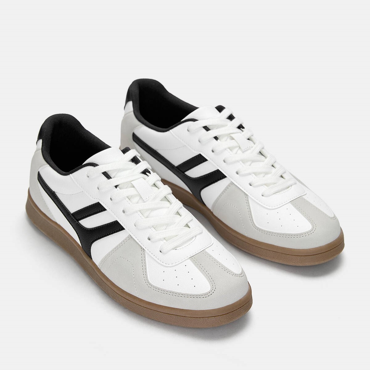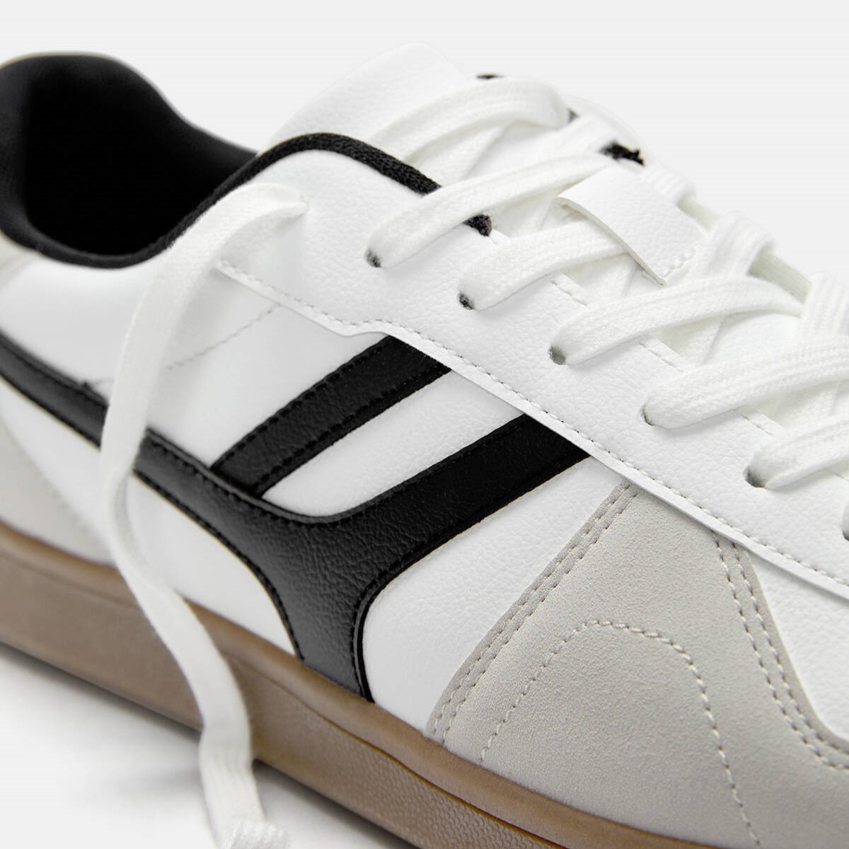 Pull & Bear – حذاء رياضي رجالي بتصميم ريترو ونعل منخفض بلون أبيض
