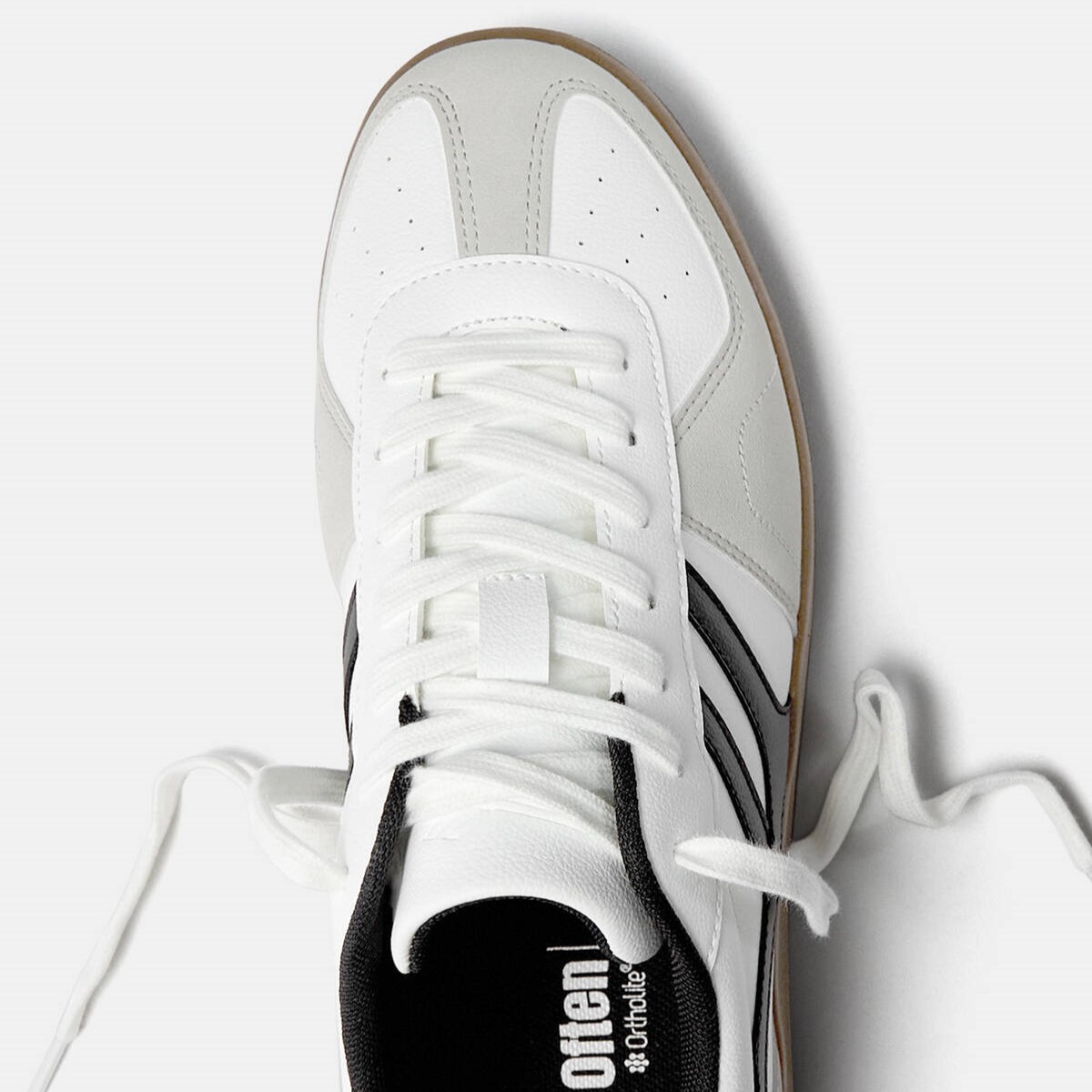 تميّز بإطلالة كلاسيكية بلمسة عصرية مع هذا الحذاء الرياضي من Pull & Bear، المصمم بأسلوب ريترو أنيق يجمع بين الجلد الطبيعي وخامة Rugan اللامعة. يأتي بلون أبيض نقي مع نعل منخفض بارتفاع 1.8 سم، ويمنحك راحة فائقة بفضل النعل الداخلي OrthoLite® المصنوع من الجلد الطبيعي.