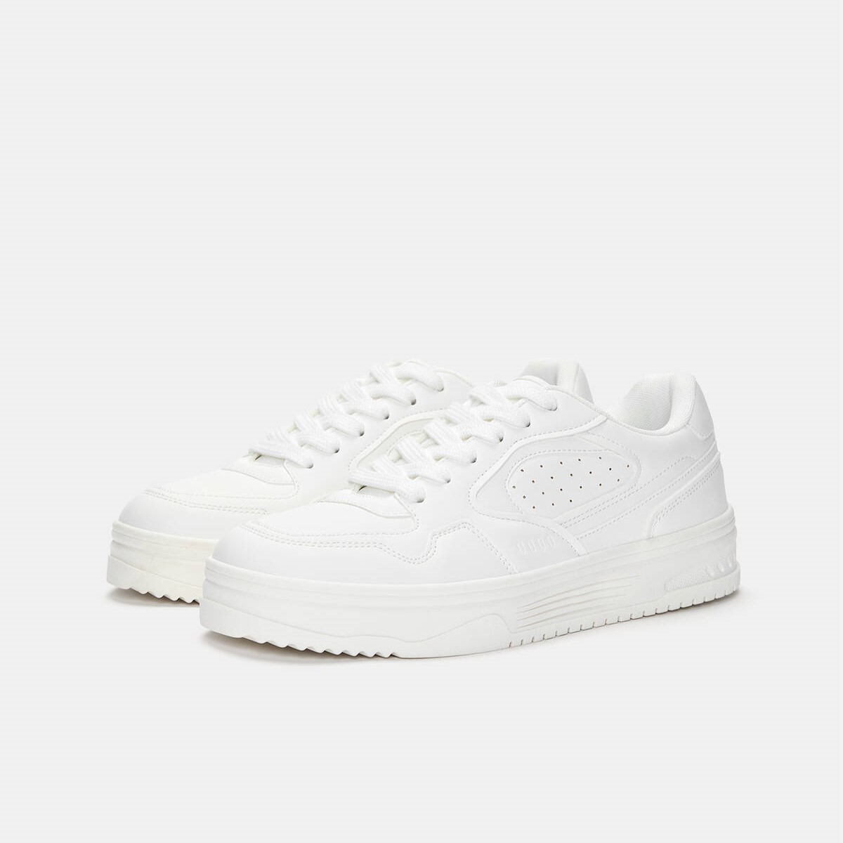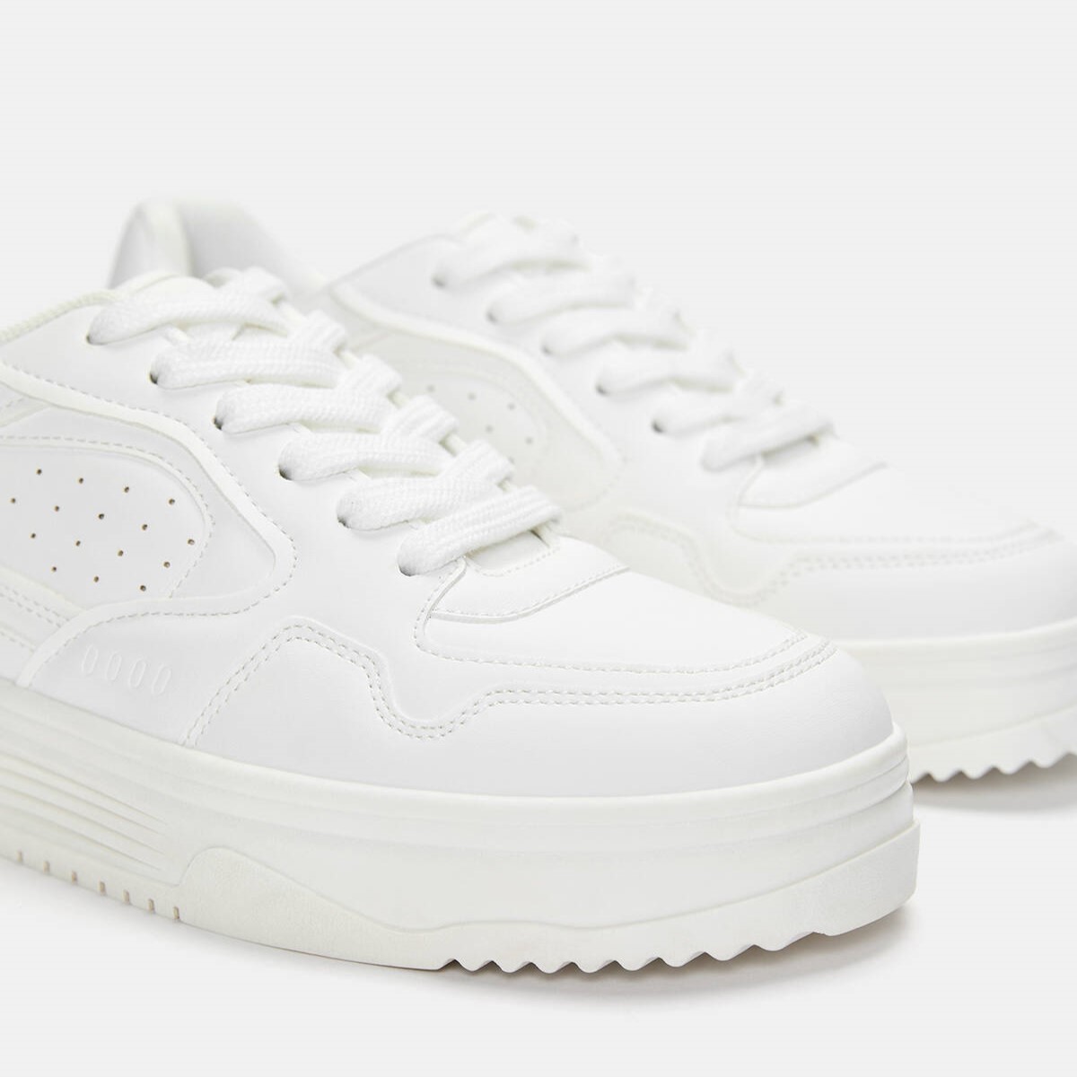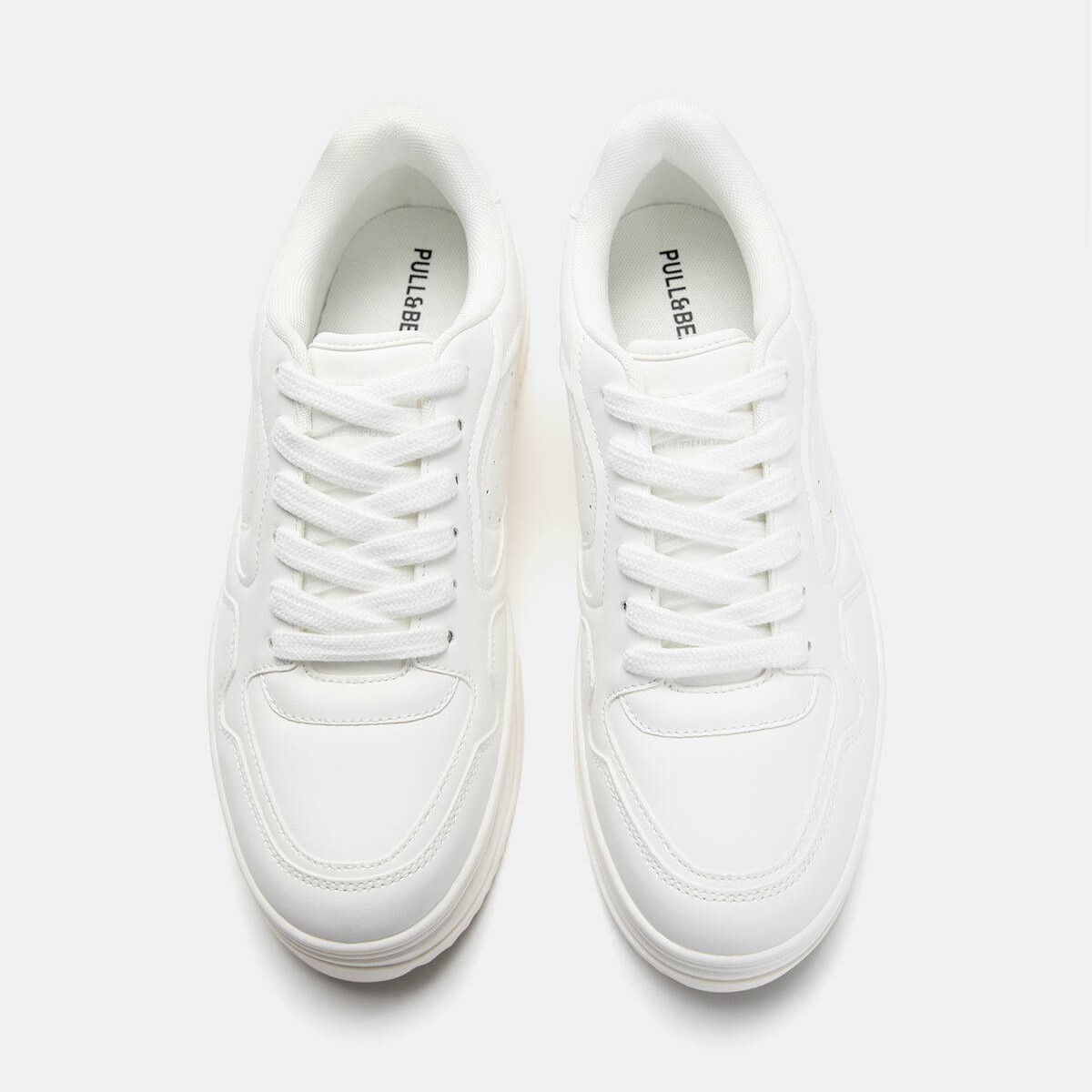 Pull & Bear – حذاء رياضي رجالي بتصميم متعدد الأجزاء ونعل سميك بلون أبيض