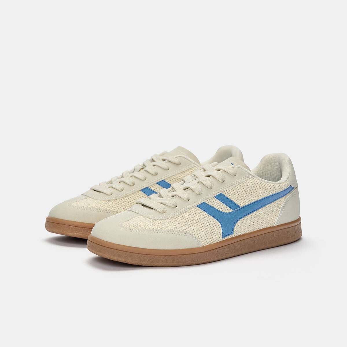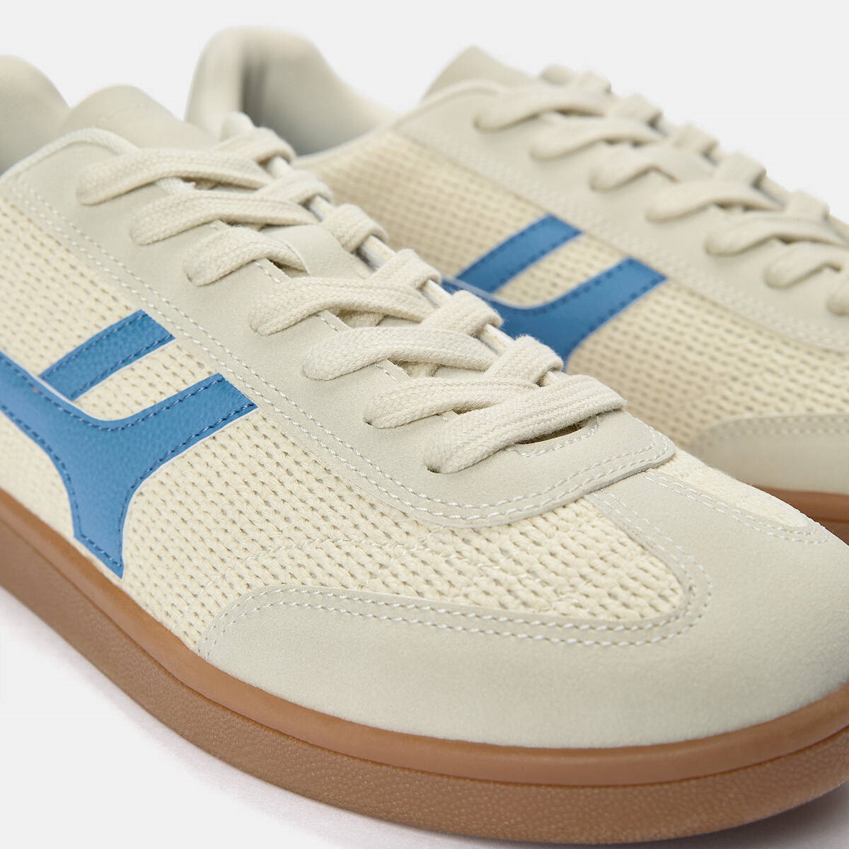 Pull & Bear – حذاء رياضي رجالي بتصميم ريترو وخامة قماشية بلون إكرو