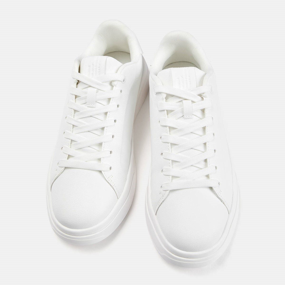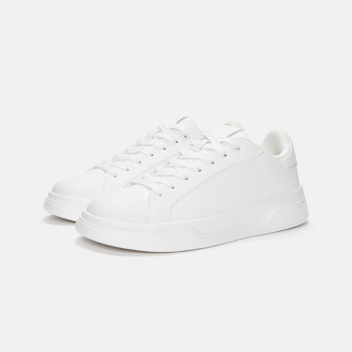 Pull & Bear – حذاء رياضي رجالي بنعل سميك وتفاصيل خلفية بلون أبيض