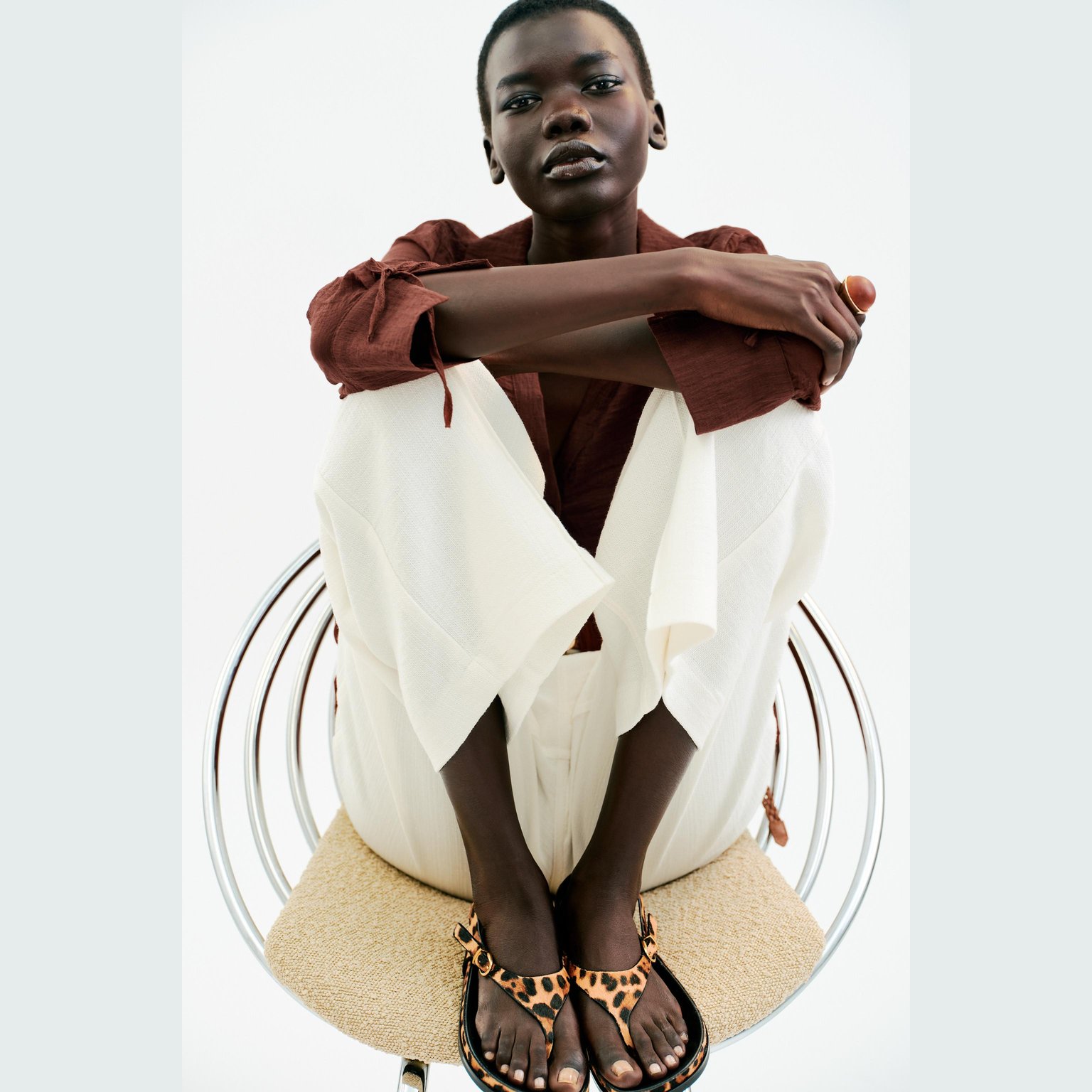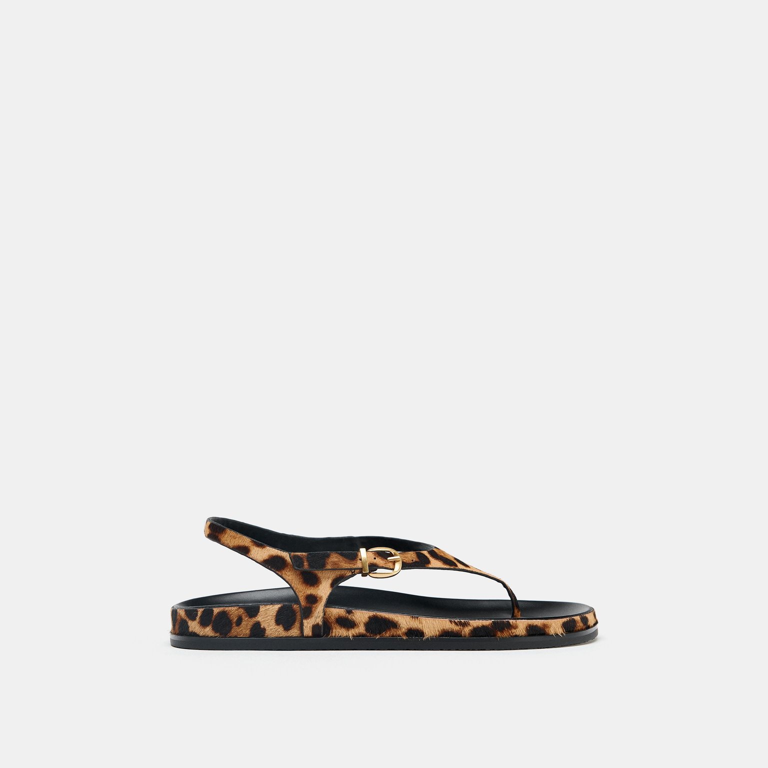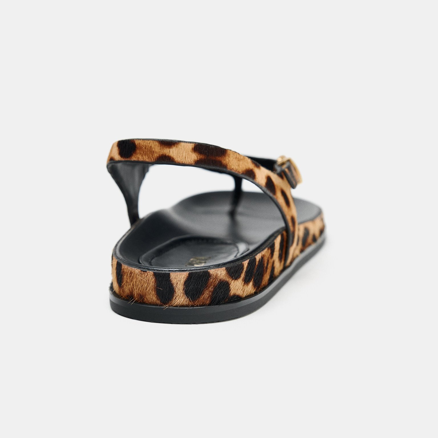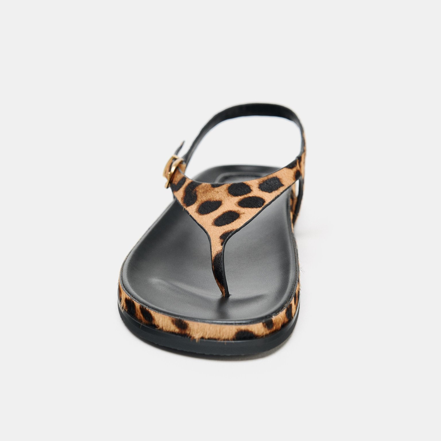 صندل جلد بنقشة حيوان – لون طبيعي (ليوبارد) – Leopard (Animal Print Leather and Sheepskin Sandals) صندل أنيق بنقشة ليوبارد، مصنوع من جلد طبيعي مع فرو خارجي يمنح ملمسًا فاخرًا ولمسة عصرية. يتميز بسير علوي مع إبزيم معدني للتعديل، ونعل منخفض مريح مناسب للاستخدام اليومي أو الإطلالات الكاجوال الأنيقة.