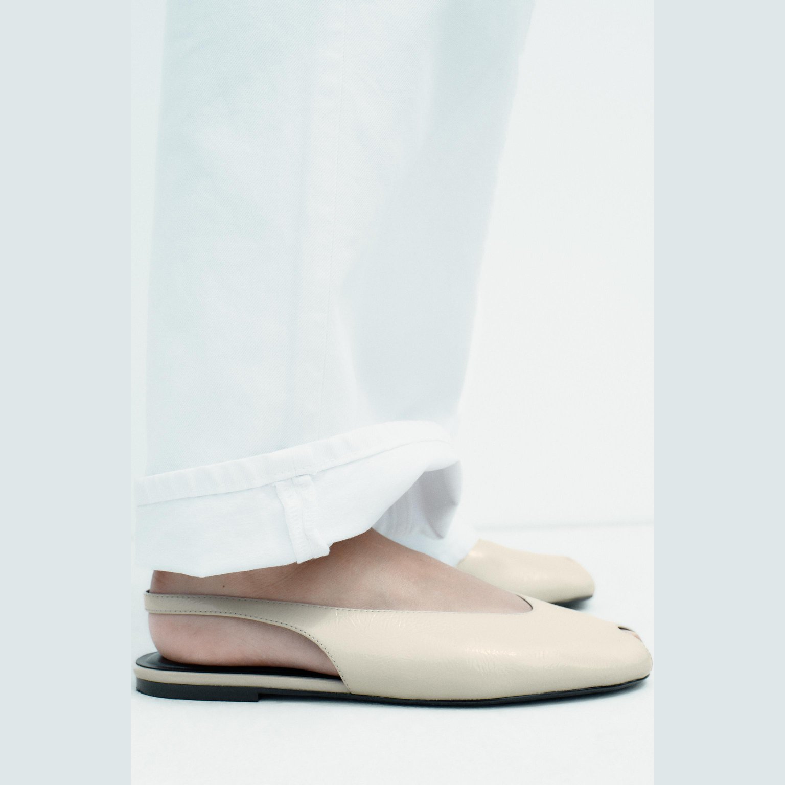 صندل مسطّح مفتوح من الأمام مع سير خلفي – لون طبيعي (أبيض) – White (Open‑Toe Slingback Shoes) صندل مسطّح أنيق بتصميم مفتوح من الأمام، مع سير خلفي مرن يمنح ثباتًا وراحة أثناء المشي. يتميز بنعل منخفض بلون متباين يضيف لمسة عصرية بسيطة، مما يجعله مناسبًا للإطلالات اليومية الصيفية.