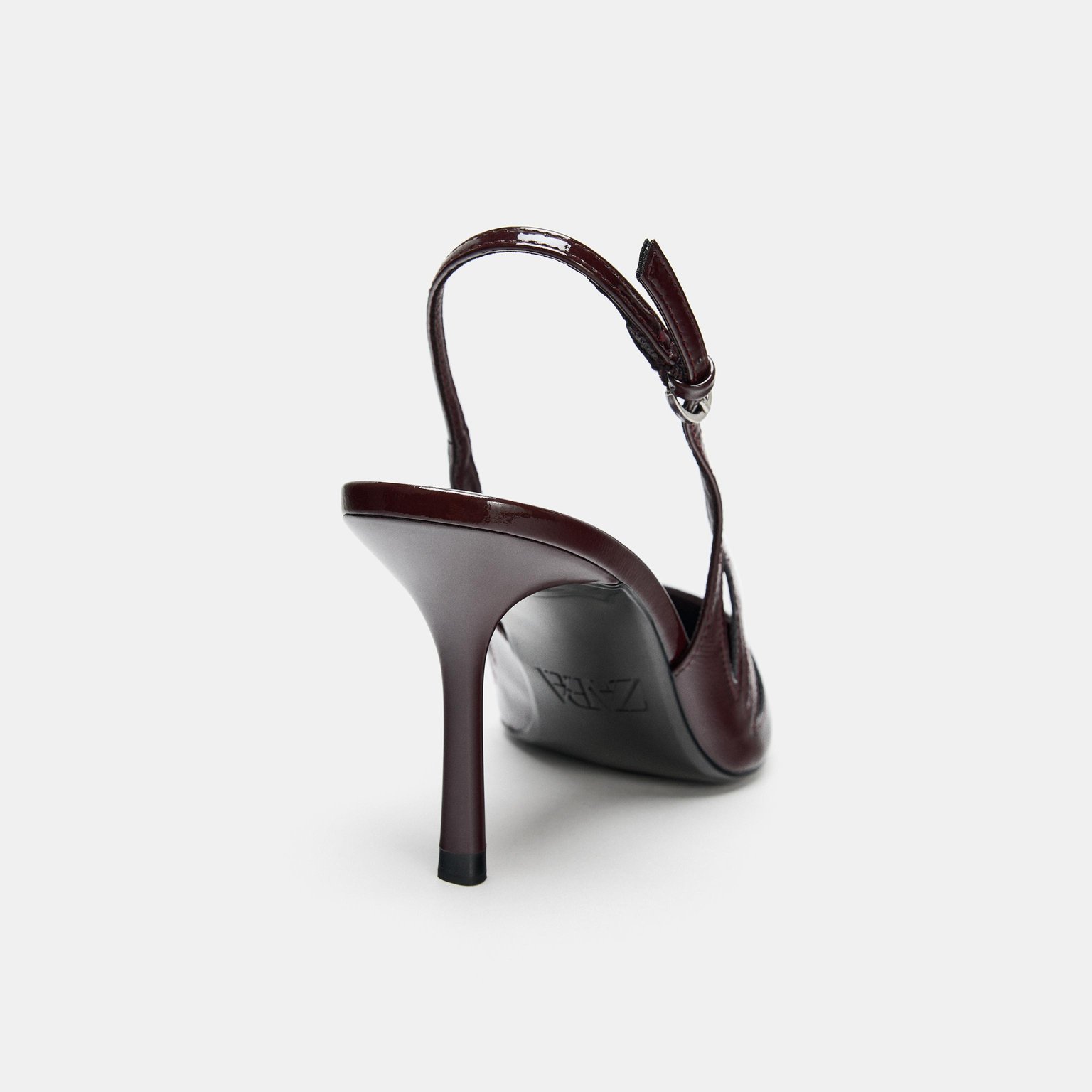حذاء كعب عالي بتأثير لامع – لون طبيعي (خمري) – Burgundy Red (Patent‑Effect High‑Heel Shoes) حذاء أنيق بتأثير لامع، يتميز بتصميم مفتوح من الأعلى مع فتحة جانبية تضيف لمسة عصرية. يأتي مع سير خلفي قابل للتعديل وكعب رفيع يمنح إطلالة أنثوية راقية، مناسب للمناسبات والإطلالات المسائية.