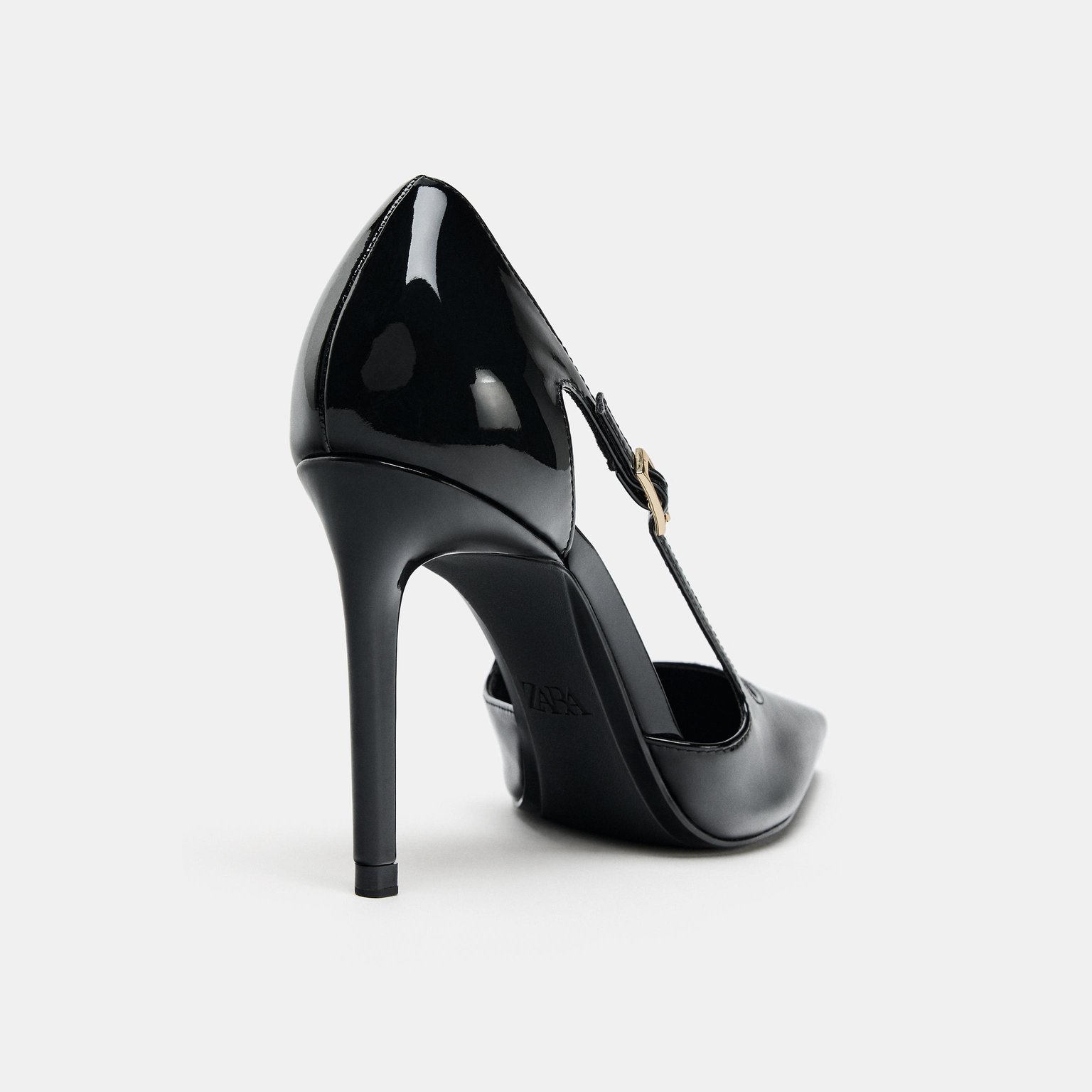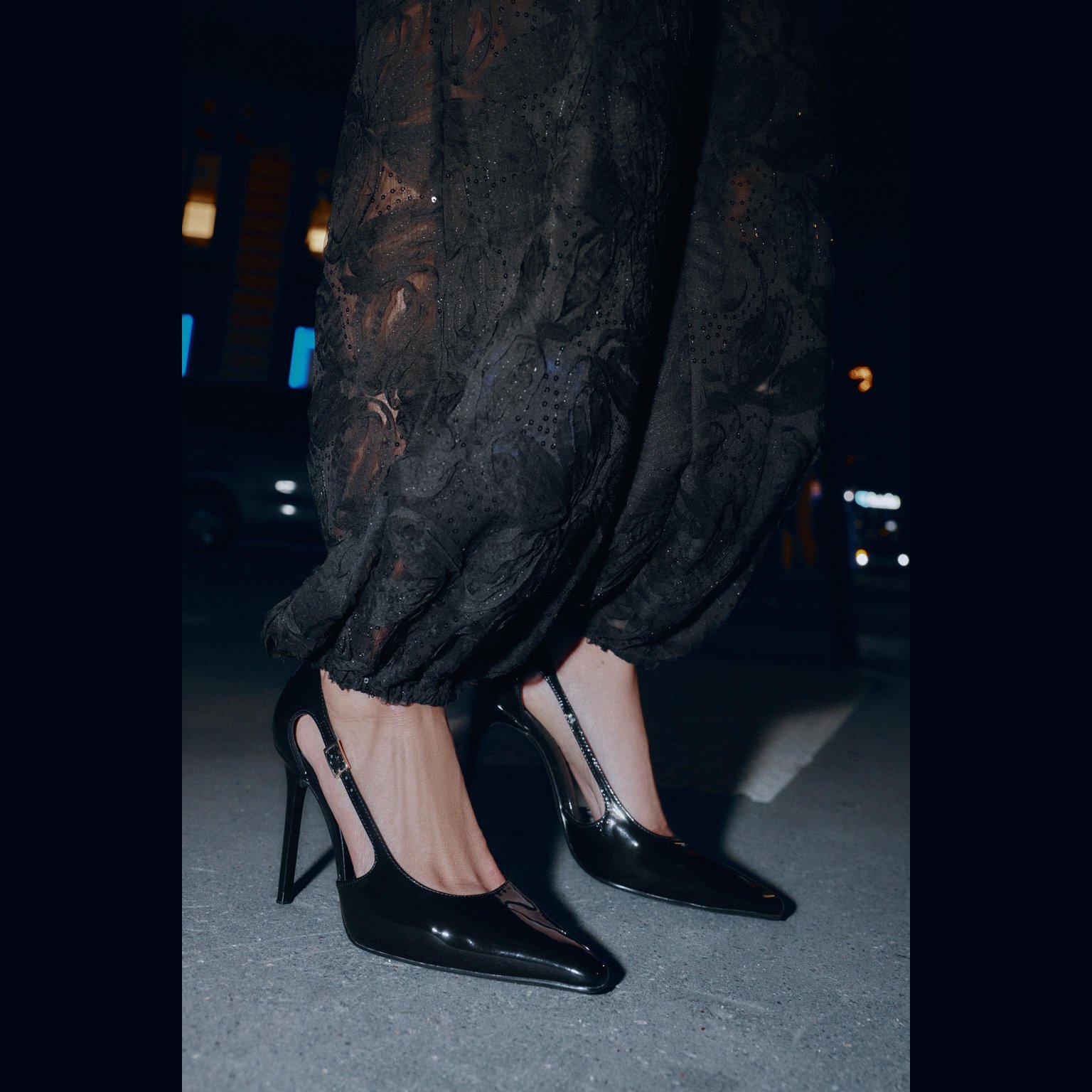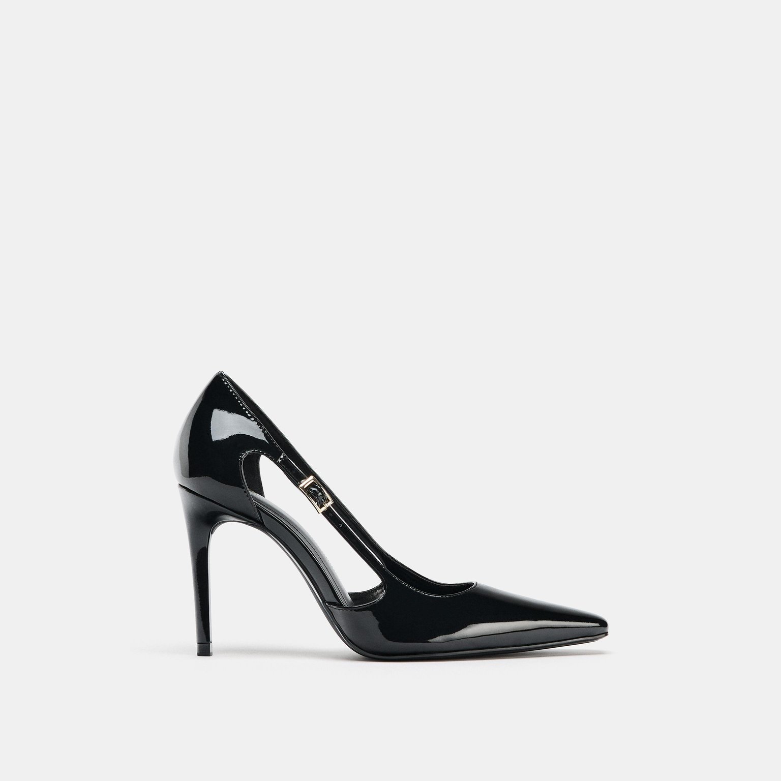 حذاء كعب عالي مع فتحات جانبية – لون أسود – Black (High‑Heel Shoes with Side Cut‑Outs) حذاء أنيق بتأثير لامع، يتميز بفتحات جانبية تضيف لمسة عصرية وجريئة. يأتي مع إبزيم معدني جانبي وكعب رفيع يمنح إطلالة أنثوية راقية، مناسب للمناسبات والإطلالات المسائية.