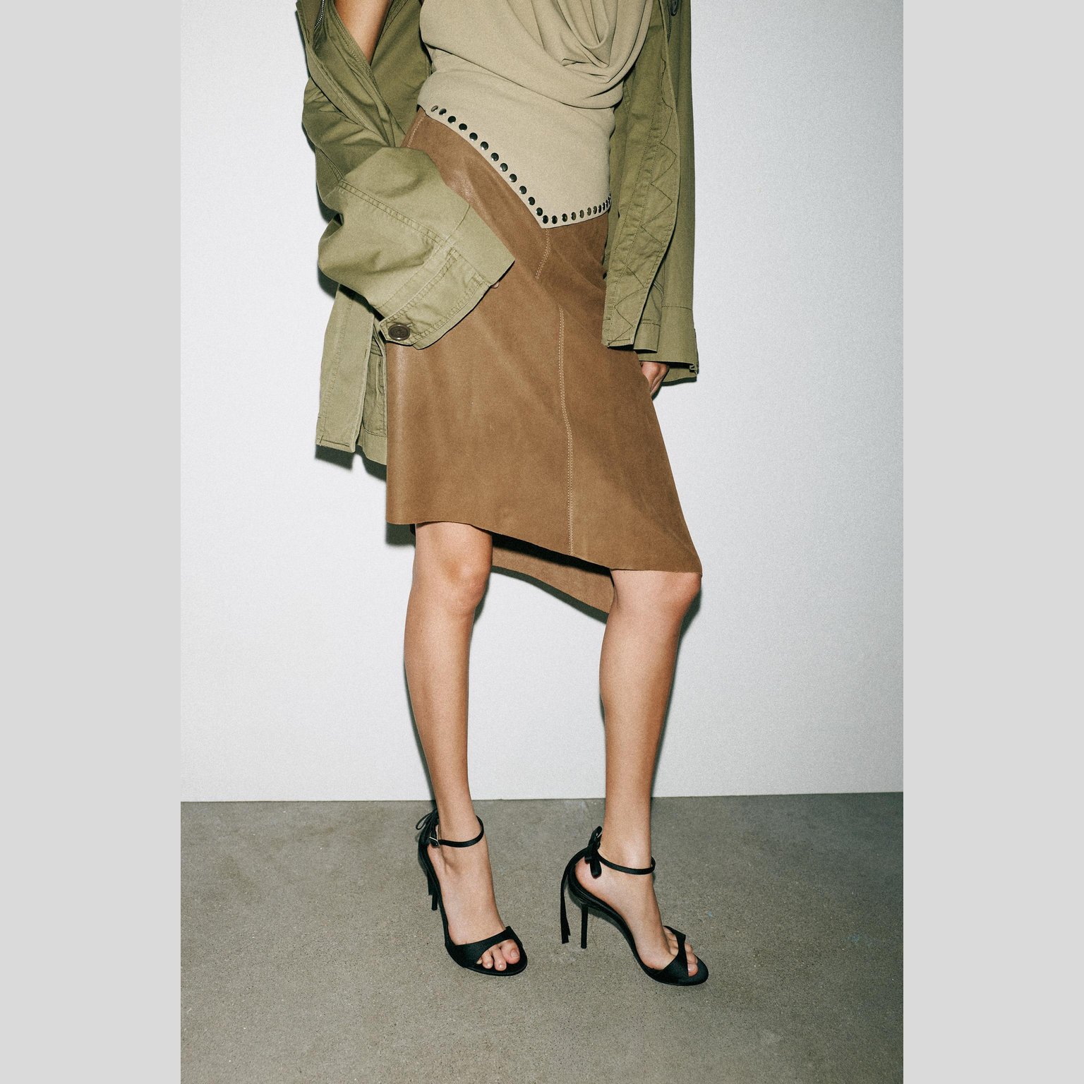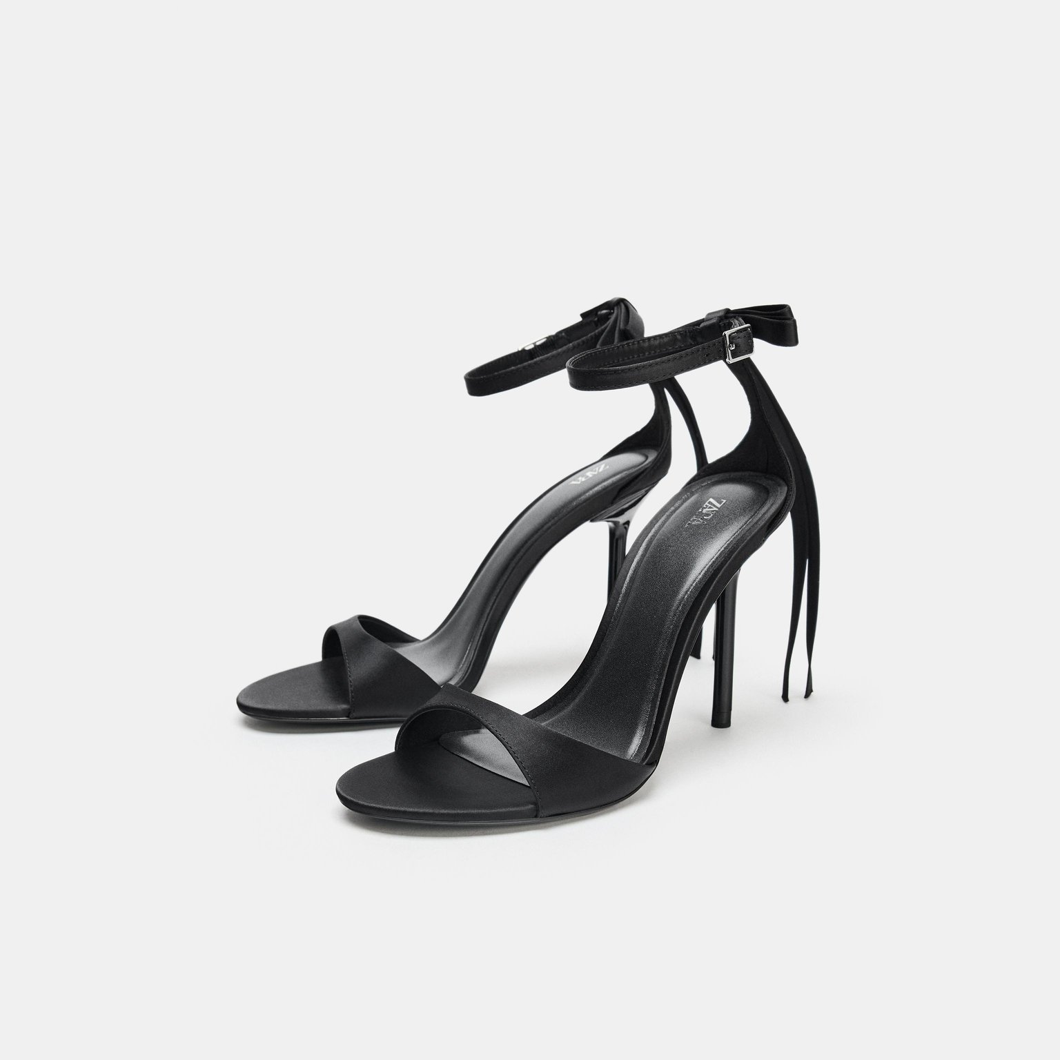 - التصميم: صندل بكعب عالي مع ربطة خلفية وسير كاحل