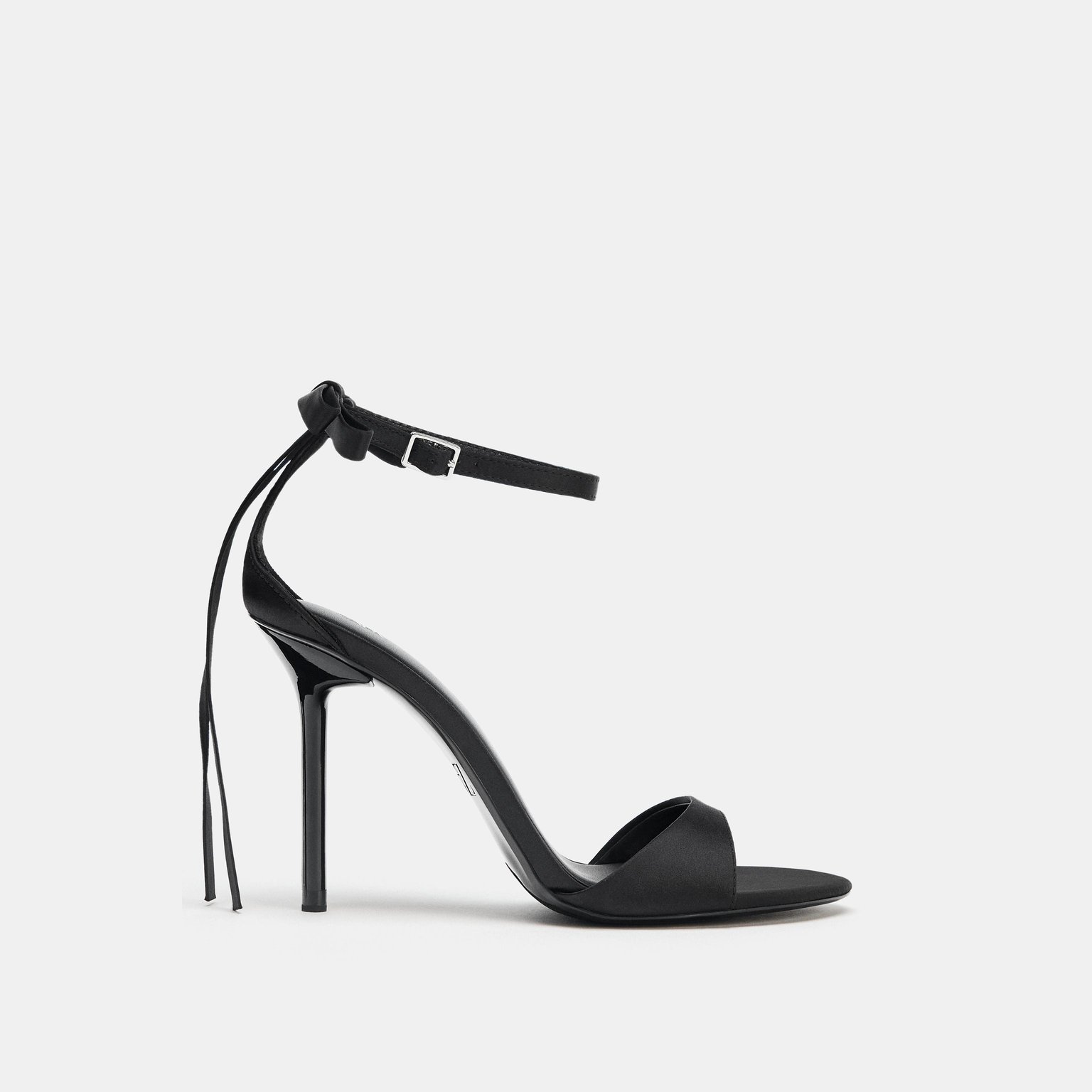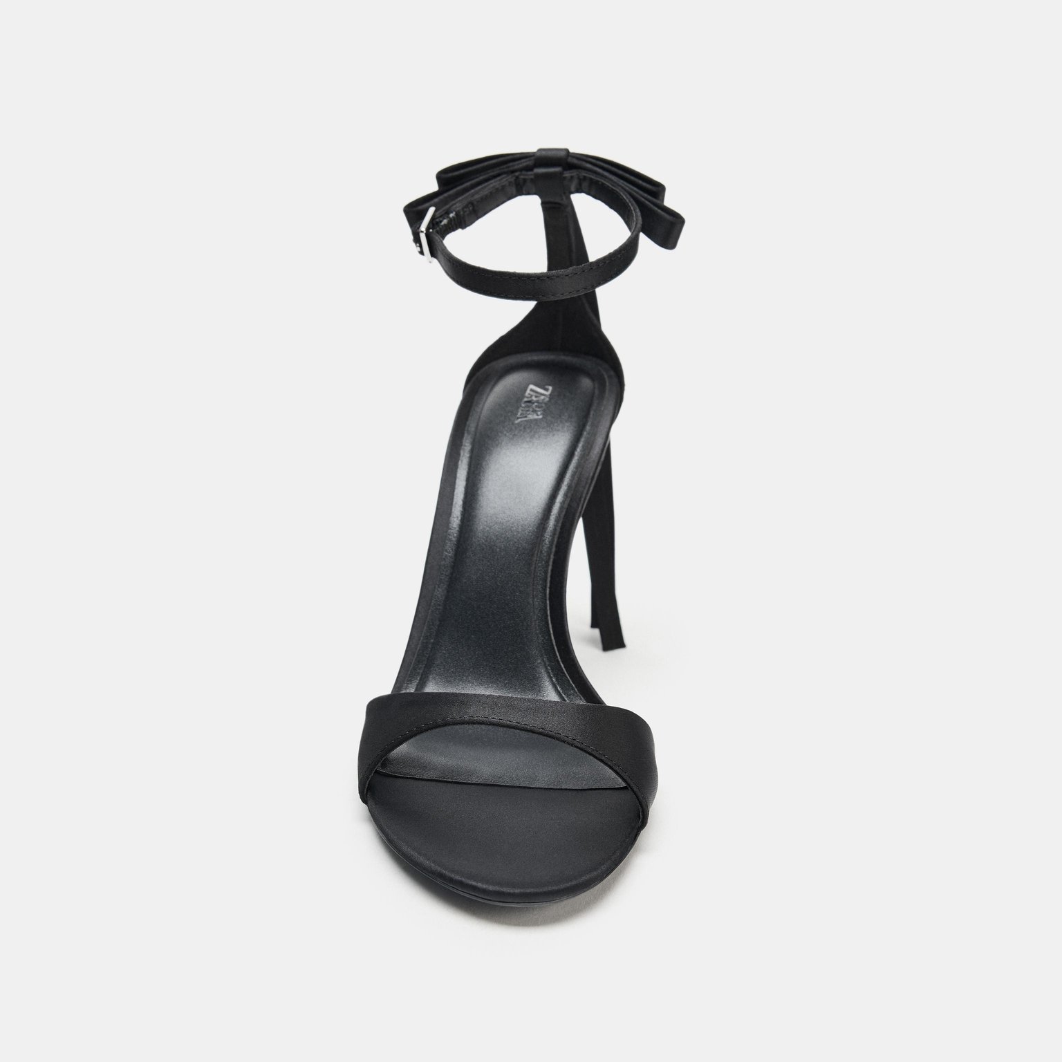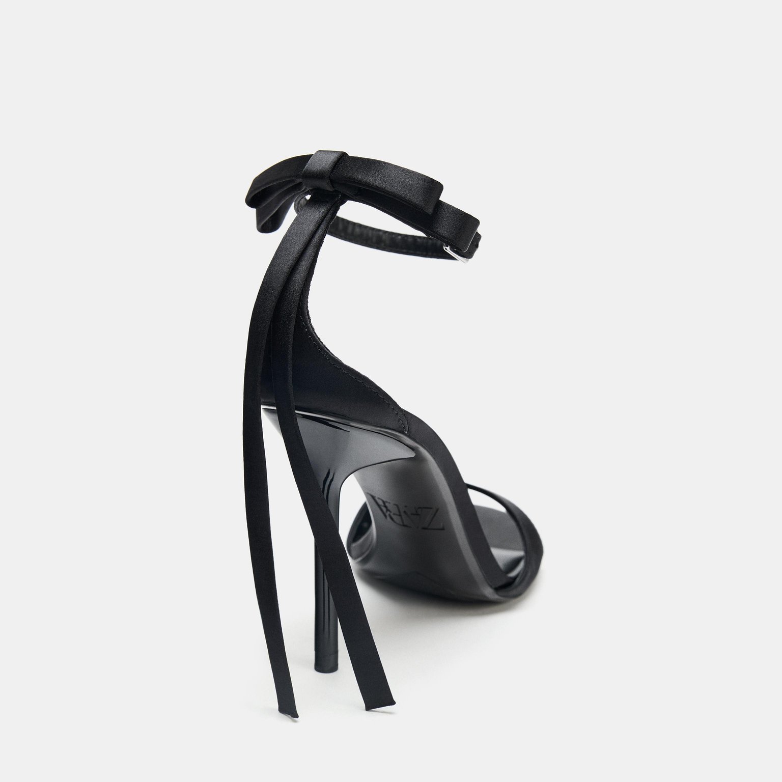 صندل بكعب عالي مع ربطة خلفية – لون أسود – Black (Bow Ankle‑Strap Sandals) صندل أنيق بتصميم عصري، يتميز بسير أمامي ناعم وربطة خلفية كبيرة تضيف لمسة أنثوية راقية. يأتي مع سير حول الكاحل مزوّد بإبزيم معدني لثبات أفضل، إضافة إلى كعب رفيع يمنح إطلالة مسائية فاخرة.
