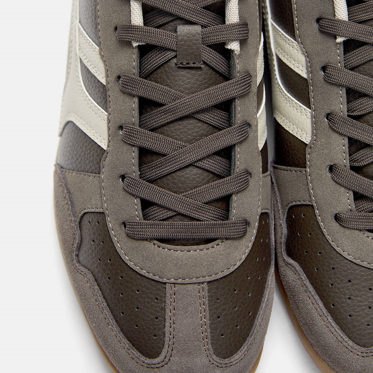 Pull & Bear – حذاء رياضي رجالي بتصميم ريترو ونعل منخفض بلون كستنائي