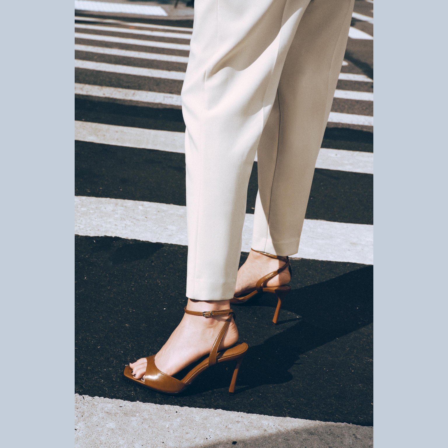 - التصميم: صندل كعب عالي بتأثير لامع