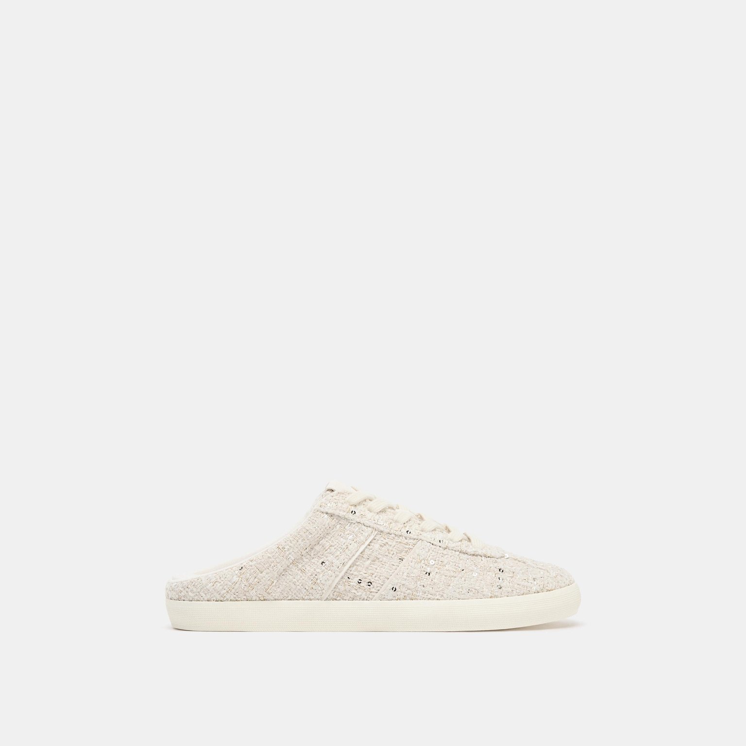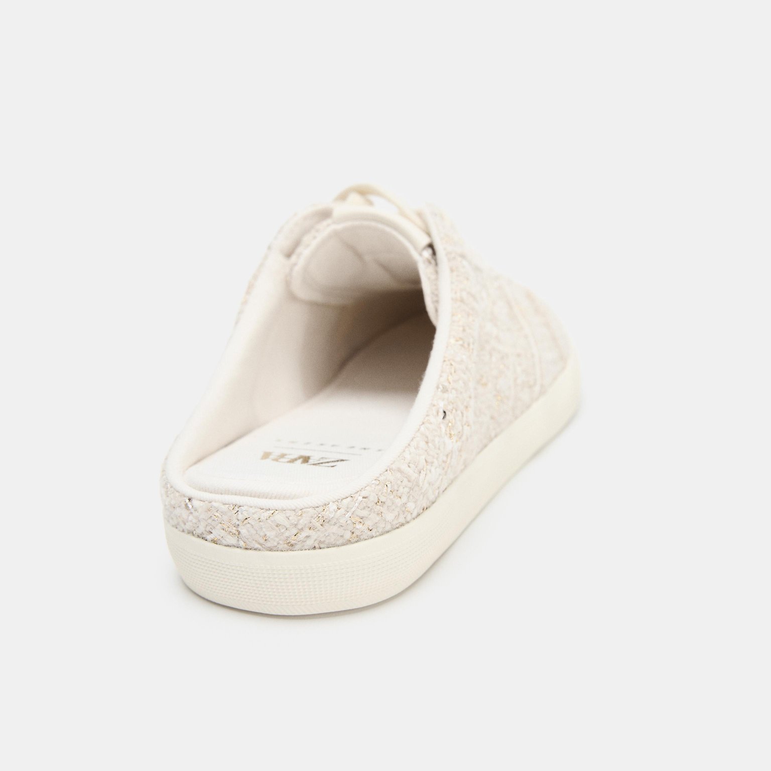 حذاء رياضي سلاباك بقماش ناعم – لون أوف وايت – Ecru White (Fabric Slingback Trainers) حذاء رياضي بتصميم سلاباك عصري يجمع بين الراحة والعملية، يتميز بسطح علوي من القماش يمنح خفة ومرونة أثناء الحركة. يأتي بنعل منخفض بارتفاع 2 cm مع رباط أمامي كلاسيكي، مما يجعله مناسبًا للاستخدام اليومي والإطلالات الكاجوال.