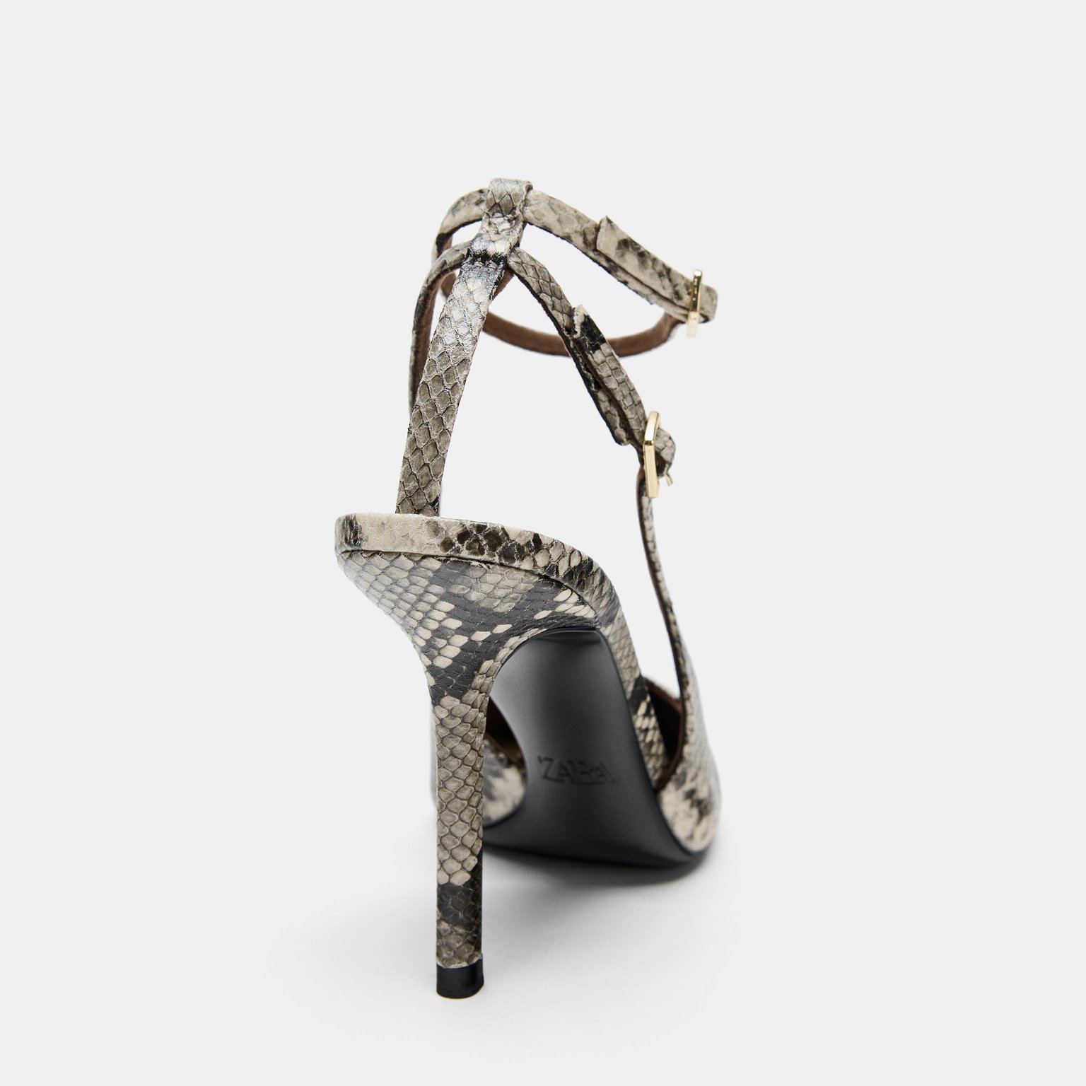 - التصميم: حذاء سلاباك بكعب رفيع بنقشة الحيوانات