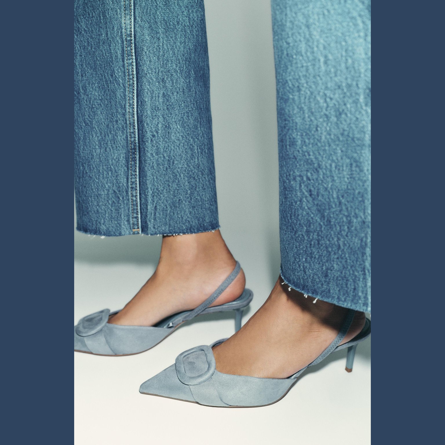 حذاء سلاباك بكعب رفيع مع قطعة أمامية – لون أزرق – Blue (Slingback Shoes with Piece Detail) حذاء أنيق بتصميم سلاباك عصري، يتميز بقطعة أمامية مبطنة تضيف لمسة فاخرة. يأتي مع سير خلفي قابل للتعديل وكعب رفيع يمنح إطلالة أنثوية راقية، مناسب للمناسبات والإطلالات المسائية.