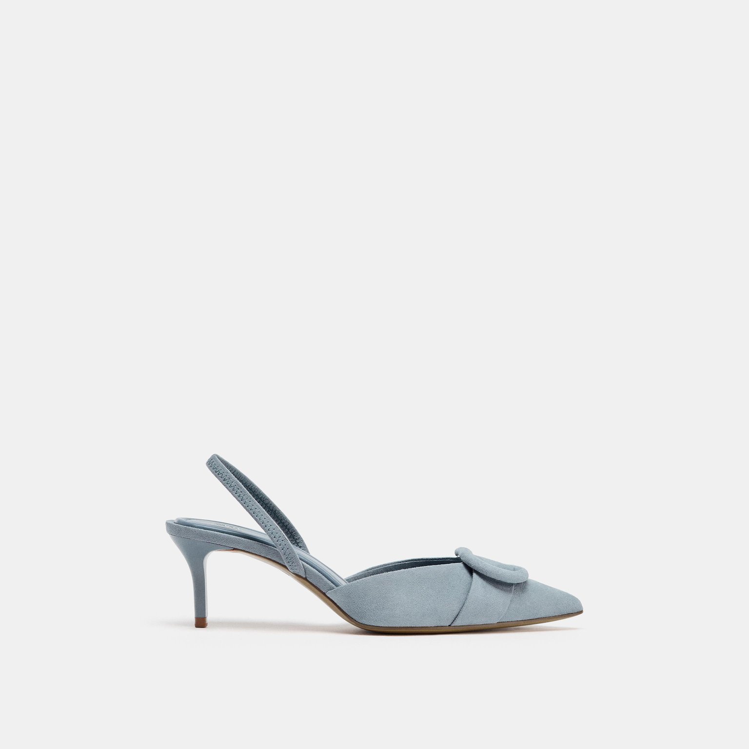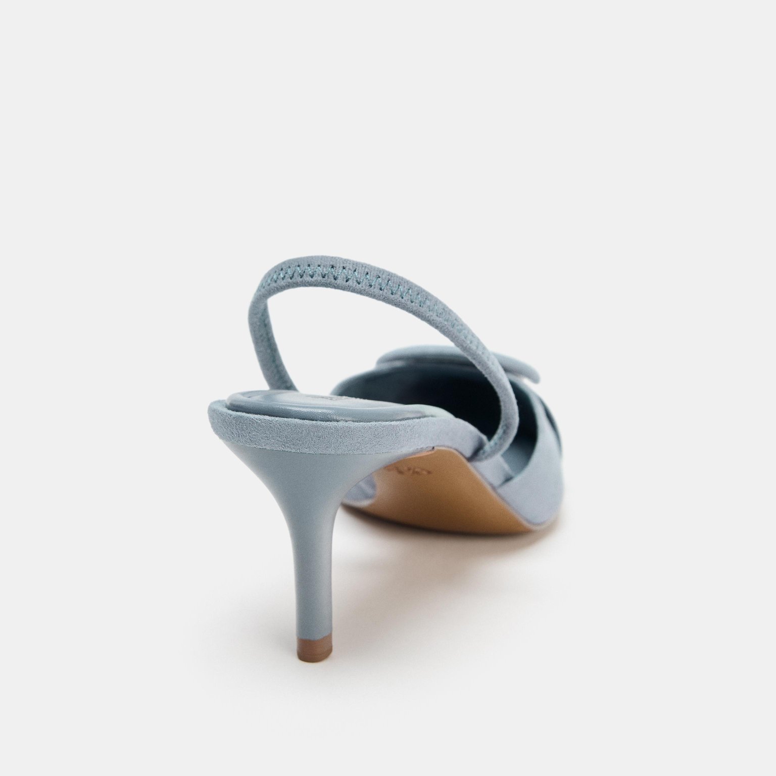 - التصميم: حذاء سلاباك بكعب رفيع مع قطعة أمامية مبطنة