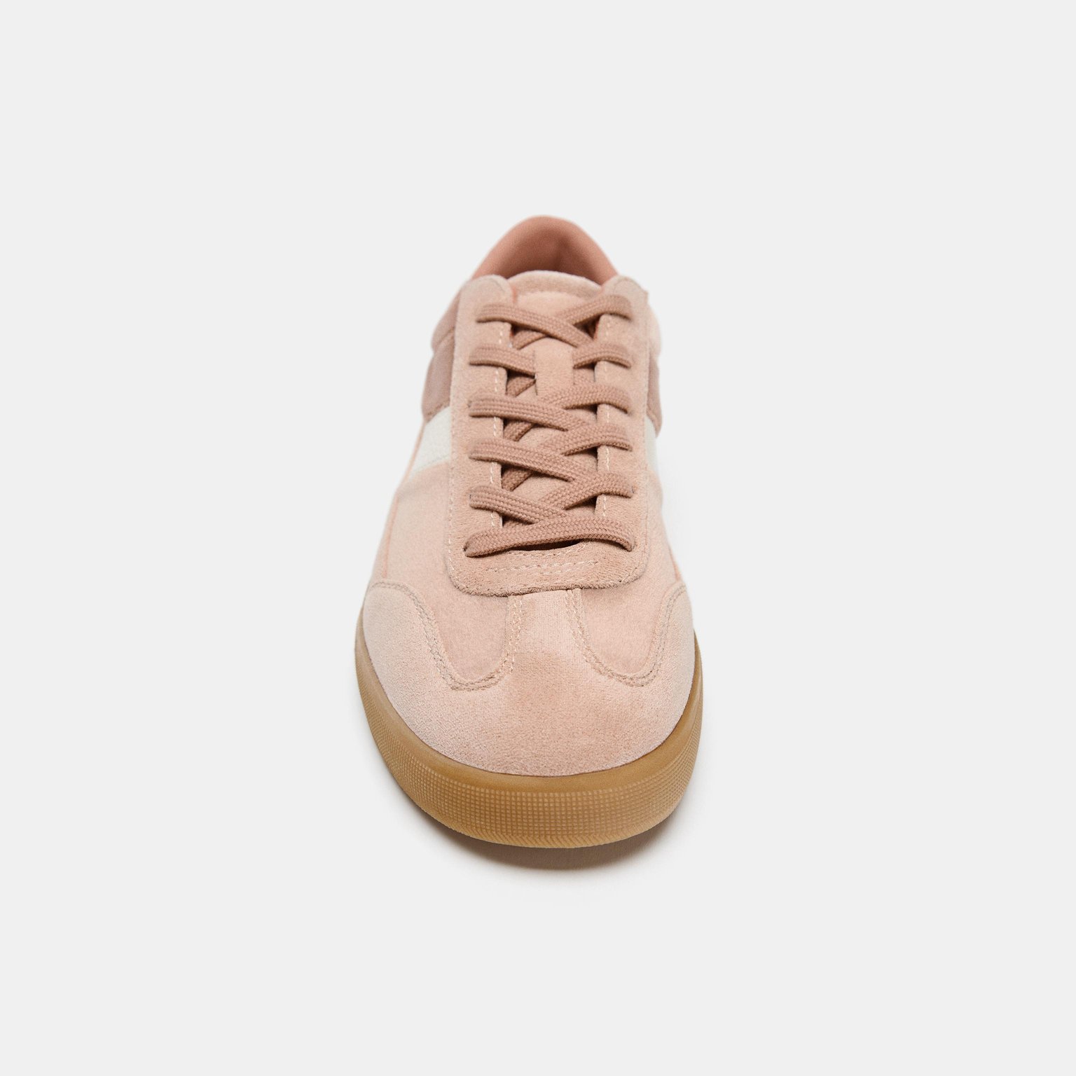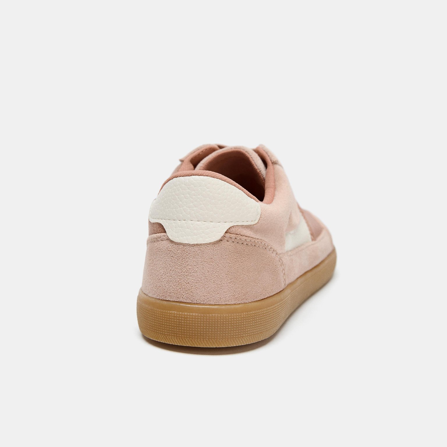 حذاء رياضي بتفاصيل متباينة – لون وردي – Pink (Contrast Trainers) حذاء رياضي عصري بتصميم متعدد الخامات، يتميز بتفاصيل لونية متباينة تمنح مظهرًا ديناميكيًا وجريئًا. يأتي بنعل مريح بارتفاع 2.5 cm مع رباط أمامي كلاسيكي، مما يجعله مناسبًا للاستخدام اليومي والإطلالات الكاجوال.