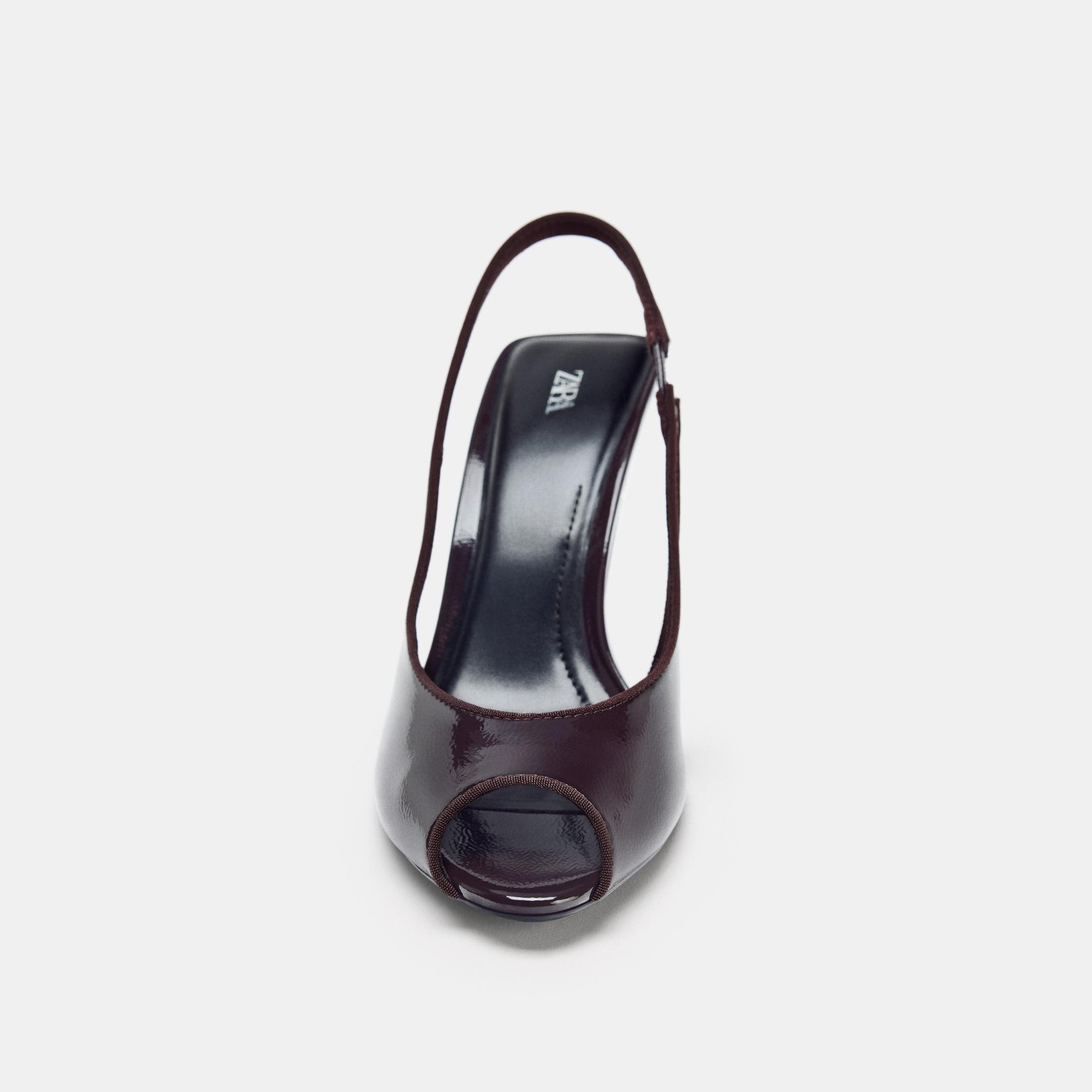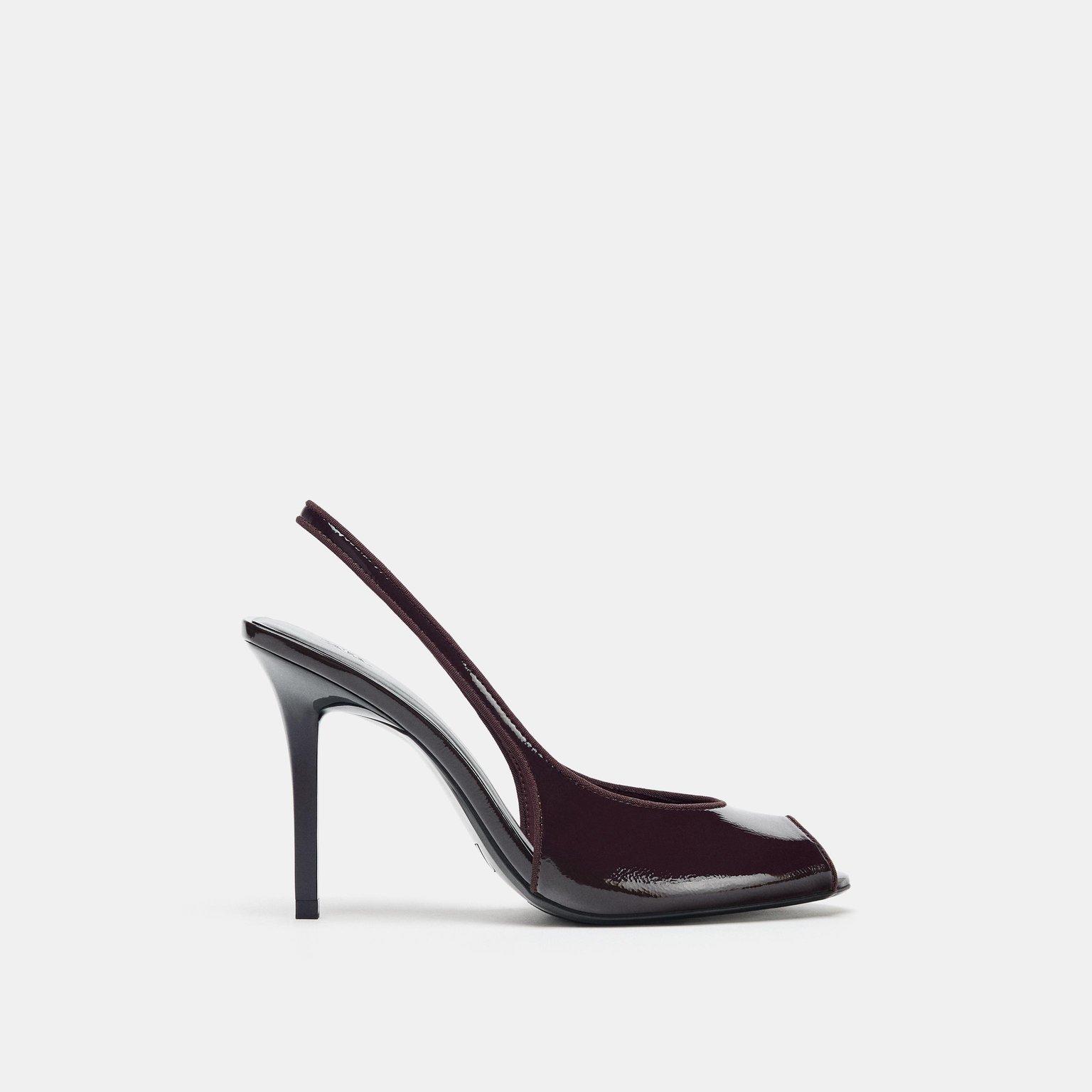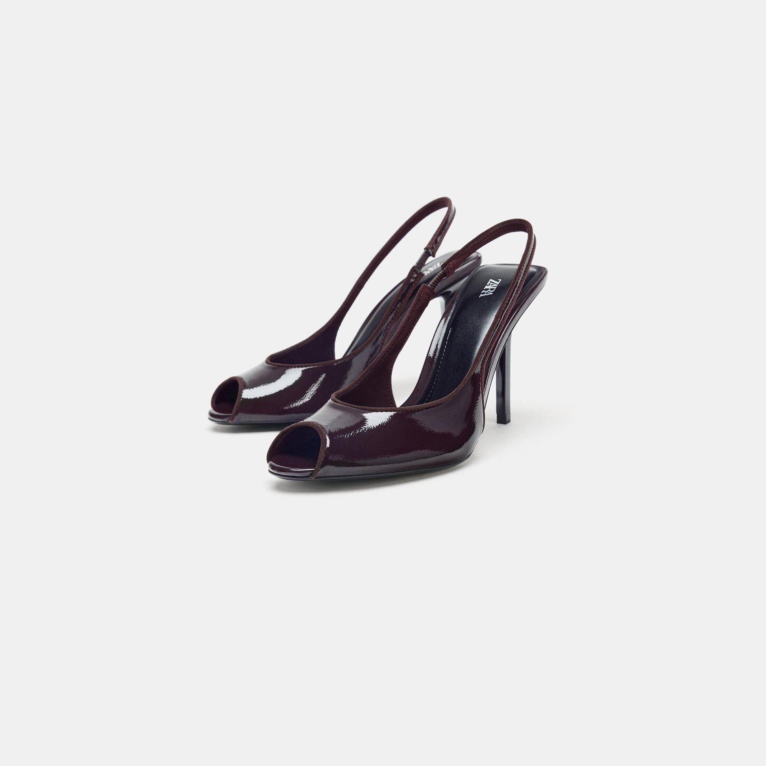 صندل بكعب رفيع بتأثير لامع – لون بني – Brown (Faux‑Patent Heeled Sandals) صندل أنيق بتأثير لامع يمنح مظهرًا فاخرًا، يتميز بتصميم عصري مع سير خلفي مرن وكعب رفيع يضيف لمسة أنثوية راقية. مناسب للمناسبات والإطلالات المسائية.